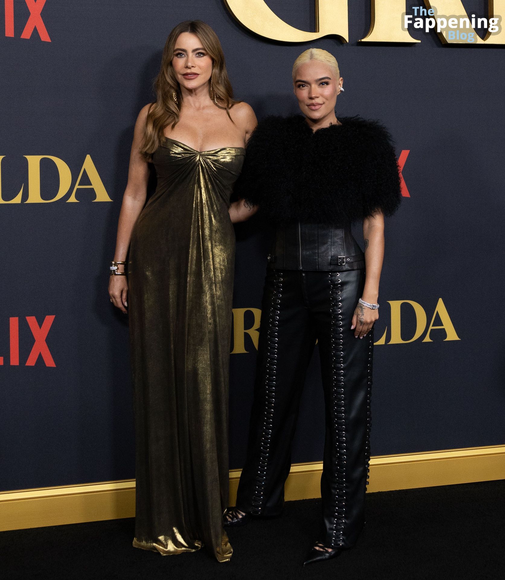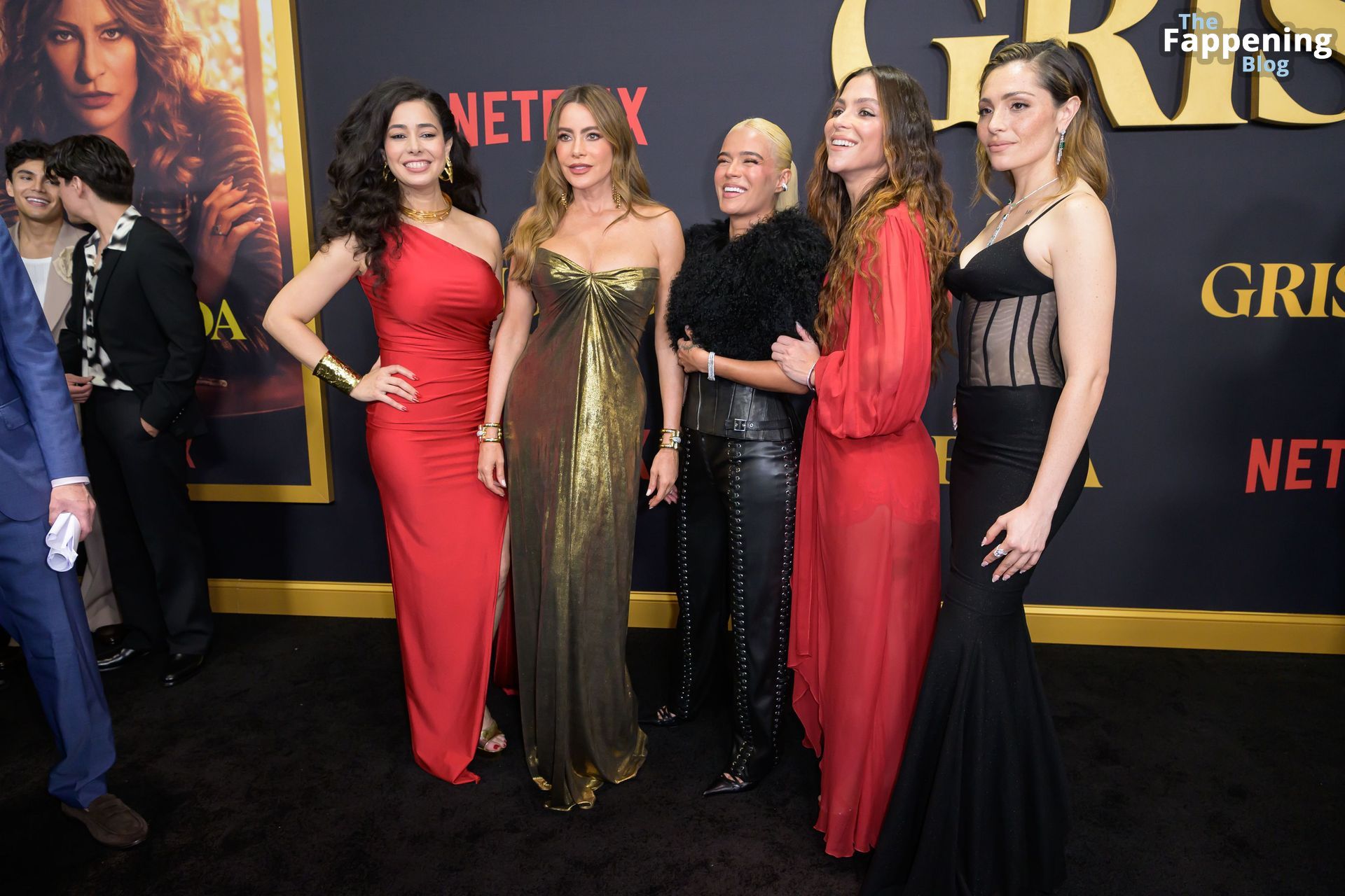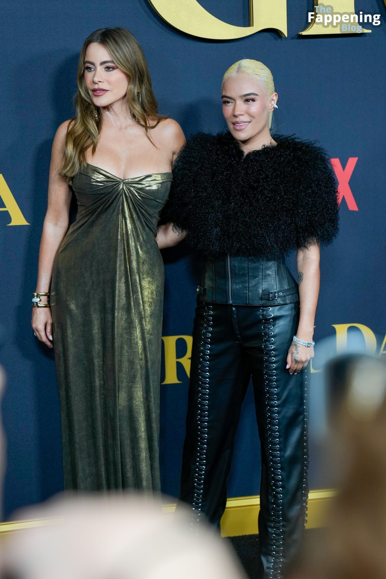 София, 51 год, блистает в этом наряде на премьере шоу Netflix. София появилась вместе с Karol G. Также на красной дорожке были замечены Лили Эстефан и её дочь Лина Луасес.
