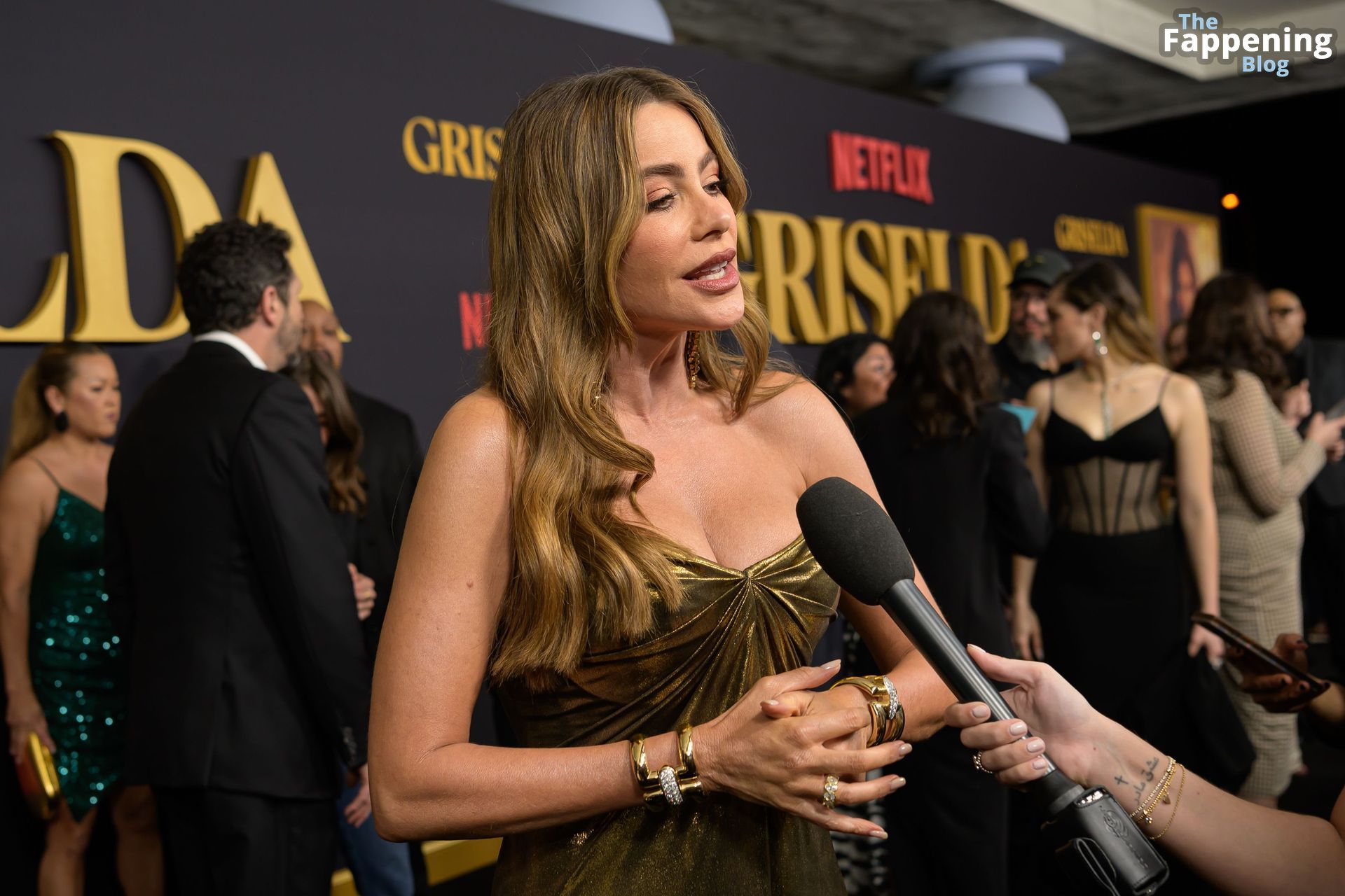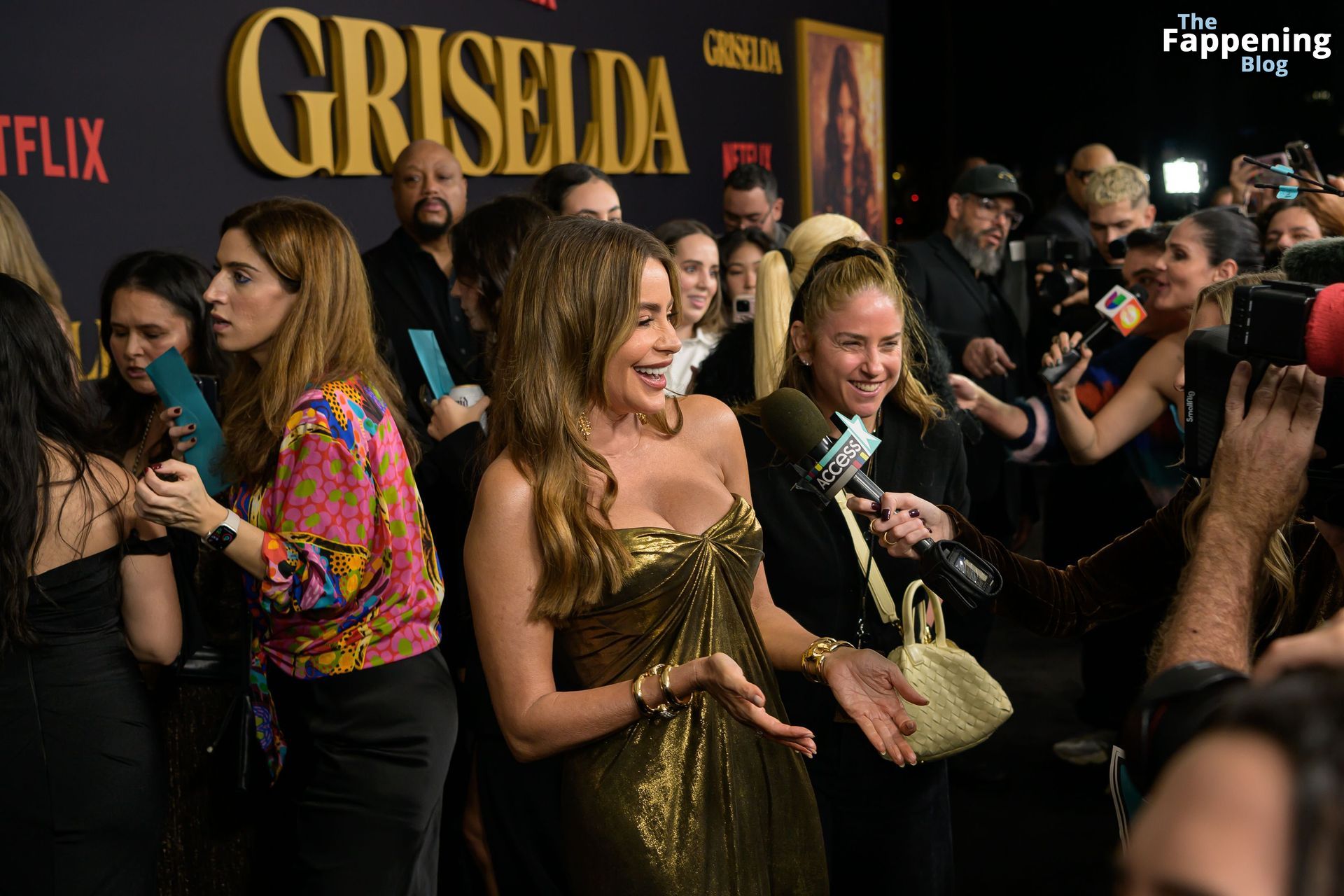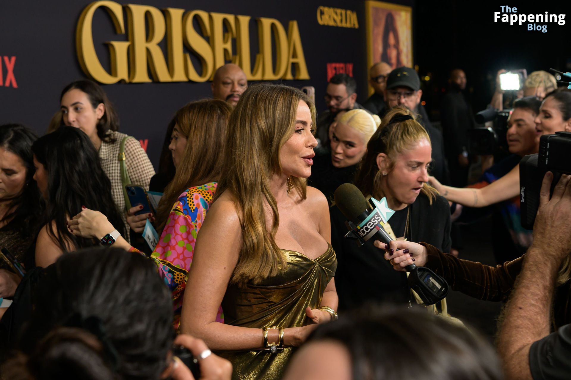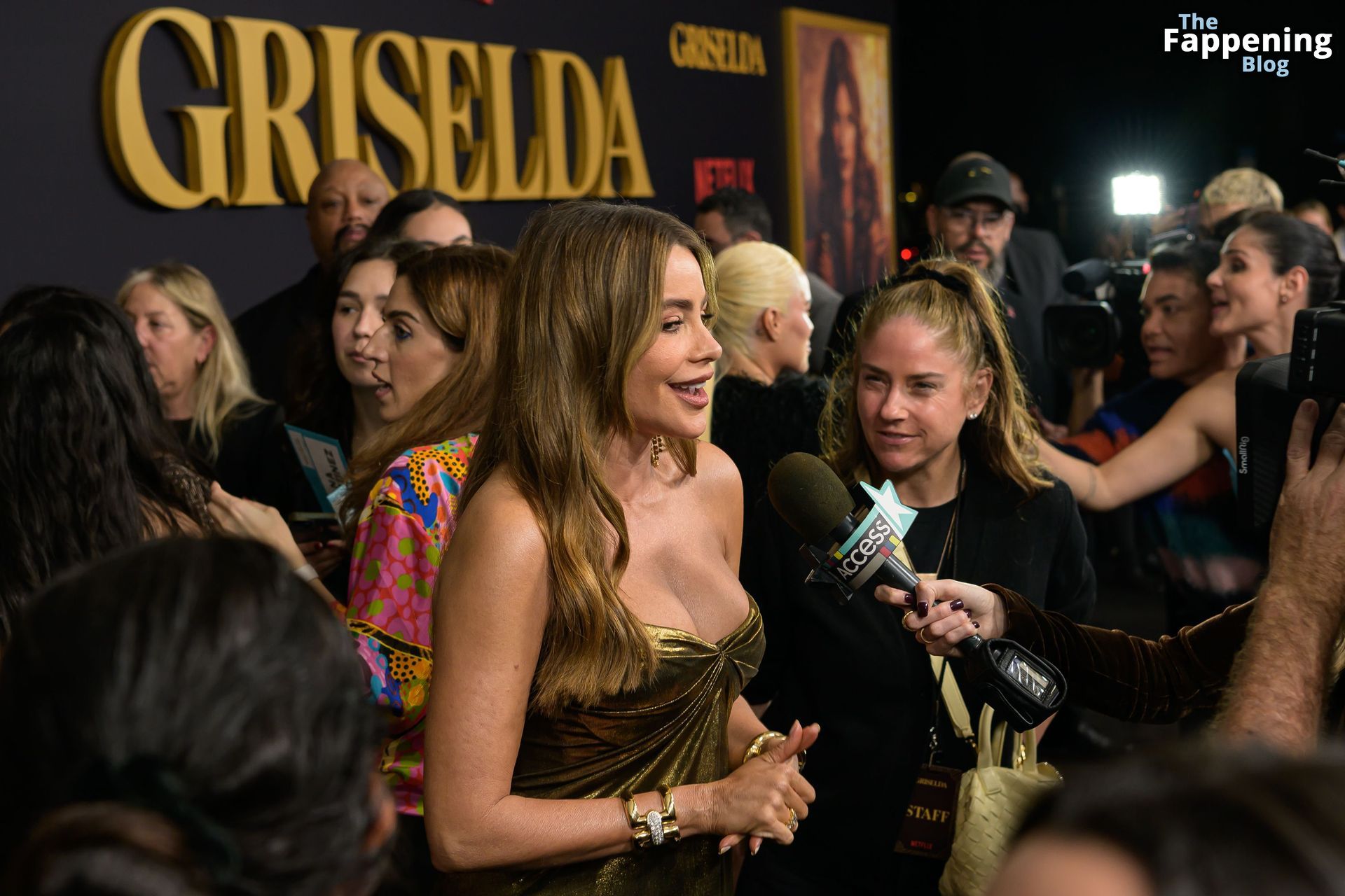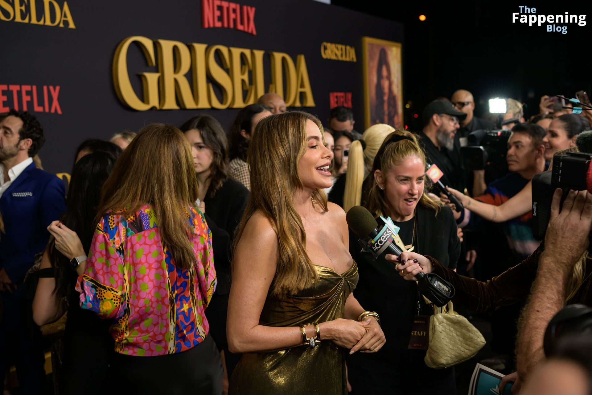 Оцените магнетизм Софии Вергара в золотом платье на премьере «Гризельда» в Майами, где её декольте и потрясающие формы привлекли всё внимание.