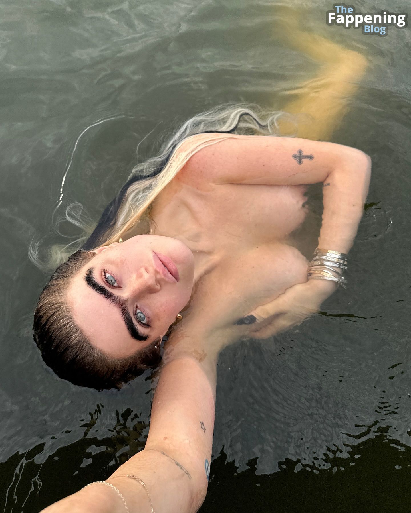 Её полуобнажённое тело погружено в воду, а чёрные крестики прикрывают соски. Но будем честны — эти крестики только добавляют интриги, разжигая фантазии.