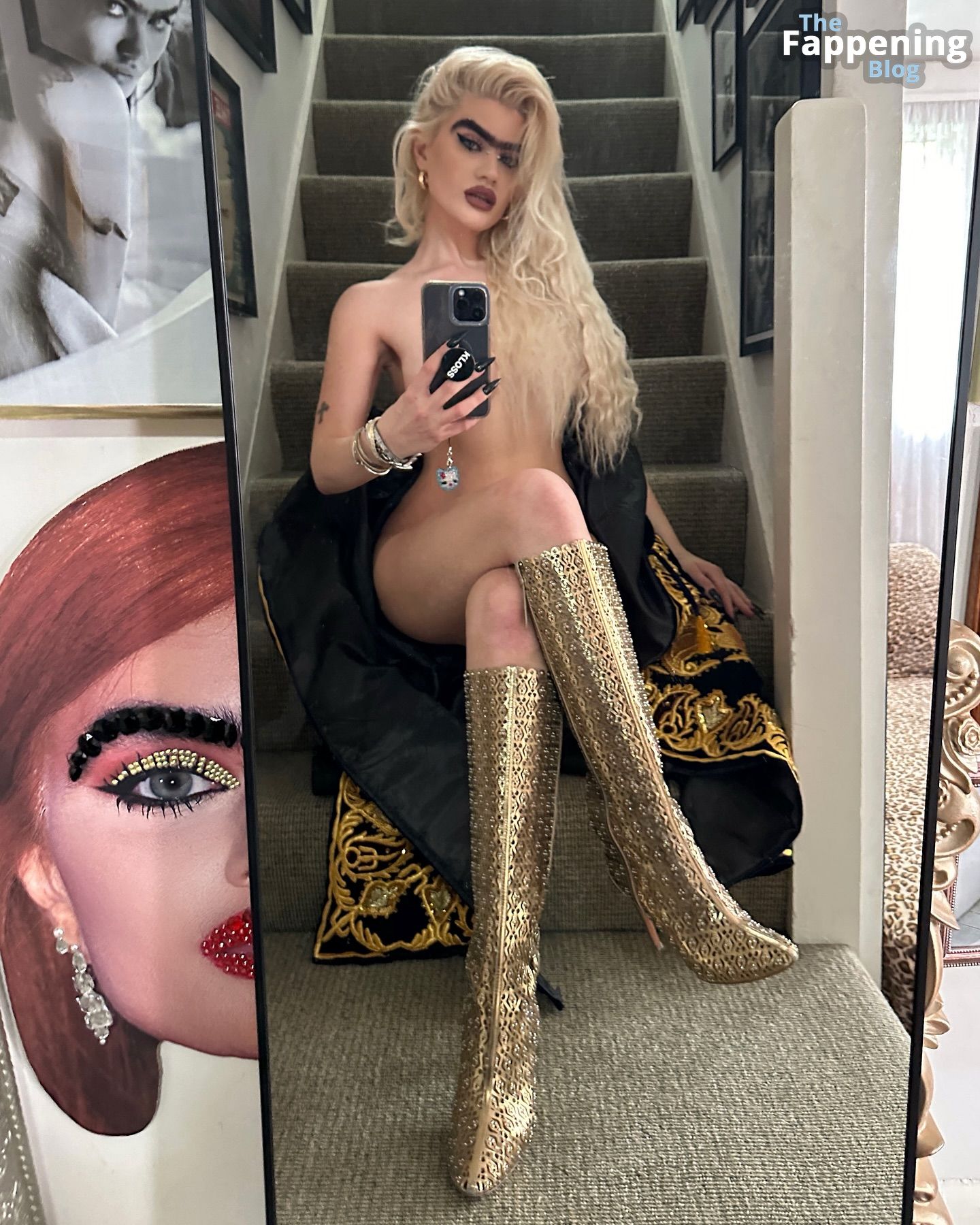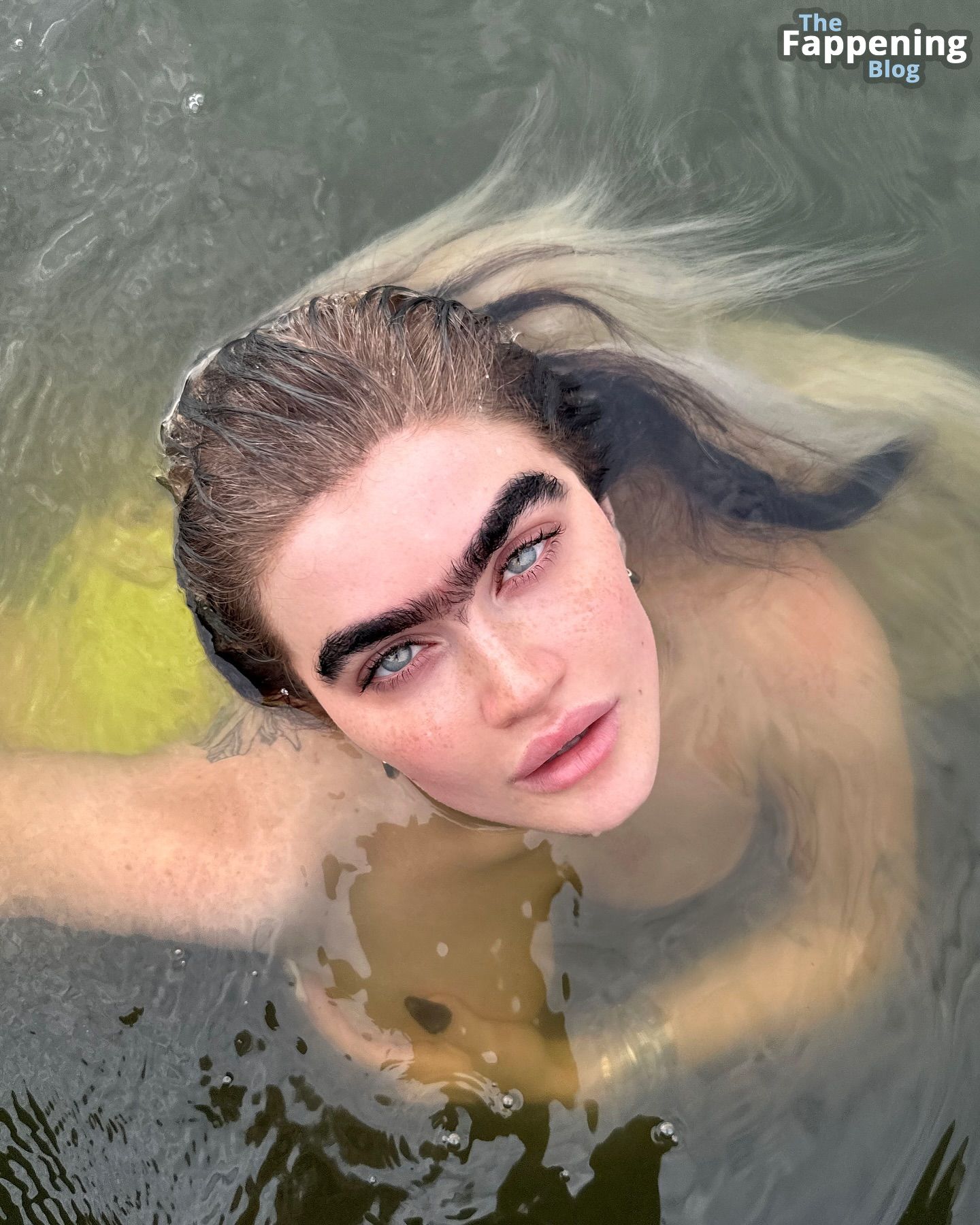 Татуировки на теле Софии придают ей дерзости, особенно огромная змея, обвивающая её спину так же, как она обвивает своих поклонников вокруг пальца. Её бездонные глаза, обрамлённые фирменной густой монобровью, словно приглашают в загадочный, глубокий мир. А длинные волосы, раскинувшиеся по поверхности воды, придают всей сцене потустороннее очарование.