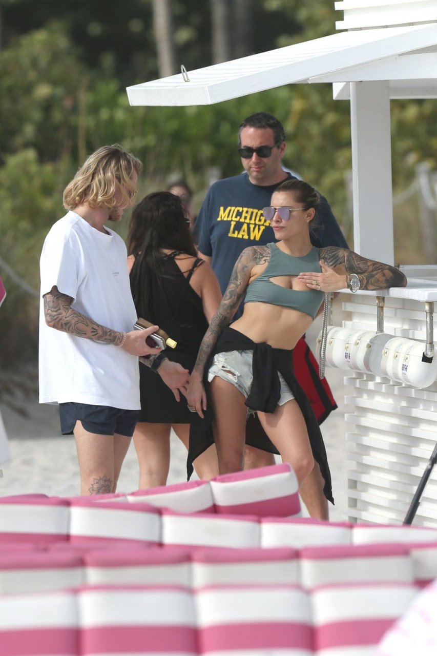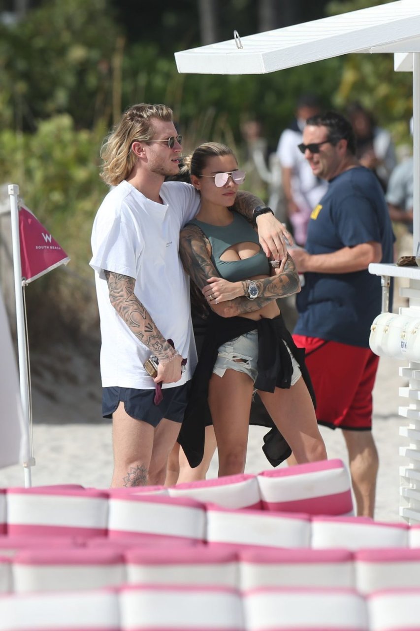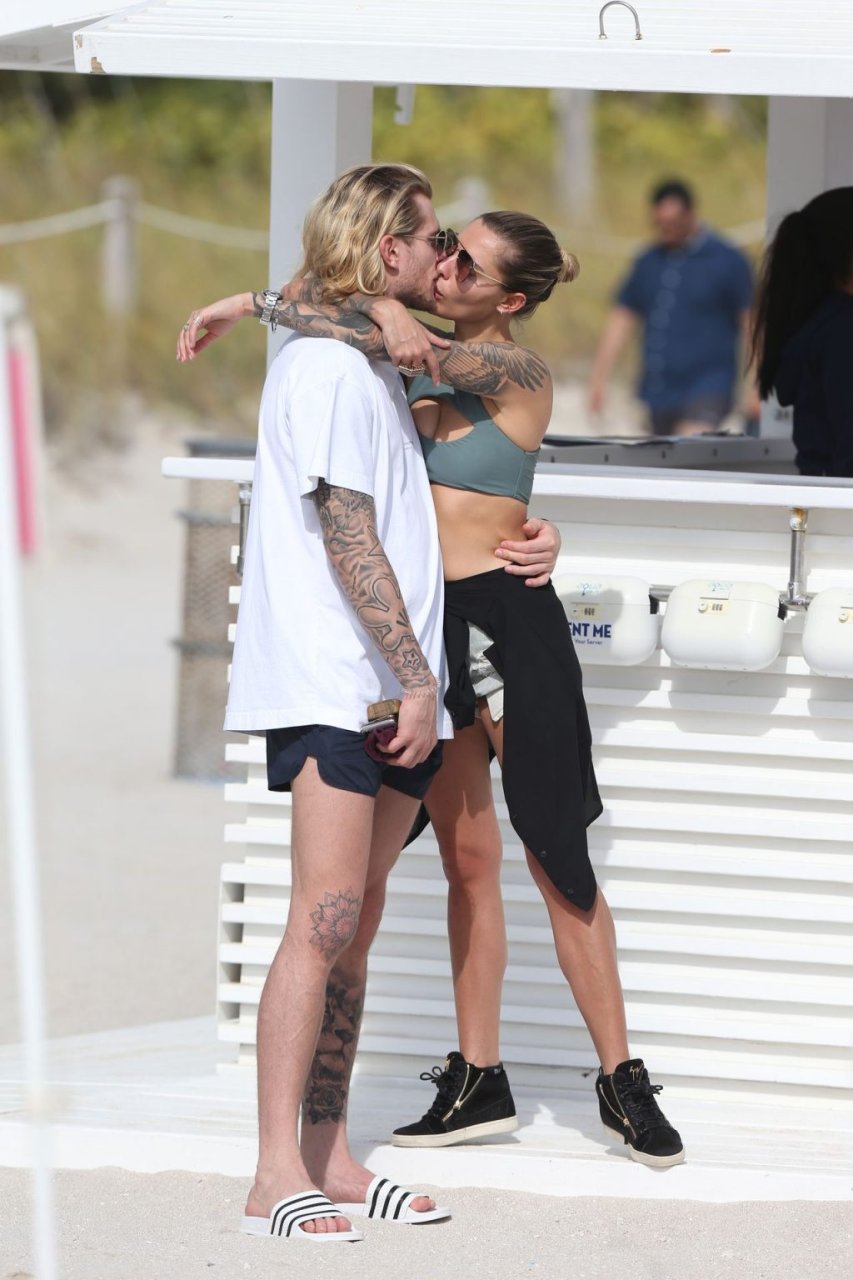 Немецкий футболист Лорис Кариус и его новая девушка, бывшая жена Гэвина Россдейла София Томалла, не скрывают своих чувств, проводя день на пляже Майами, 28.12.2018.