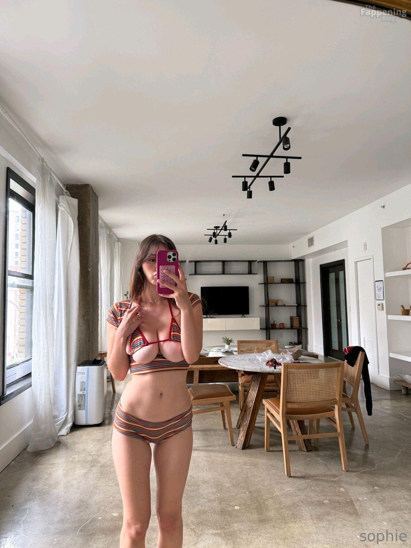 Грудь Софи Мадд выглядит очень эффектно и едва удерживается в крошечном полосатом бюстгальтере на этой фотосессии для OF.