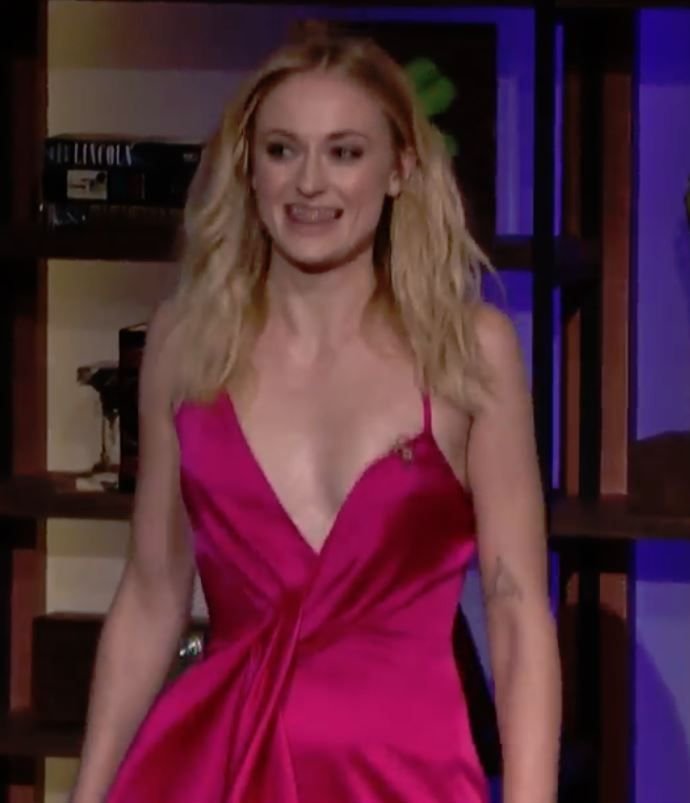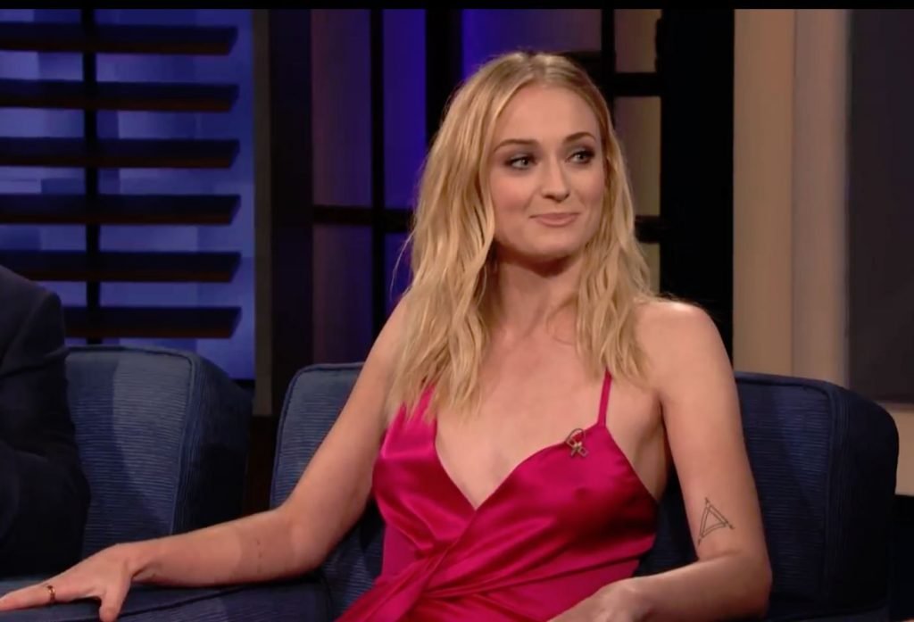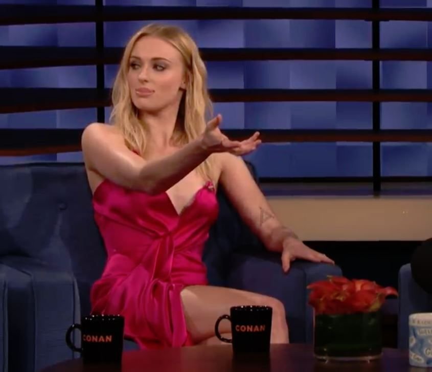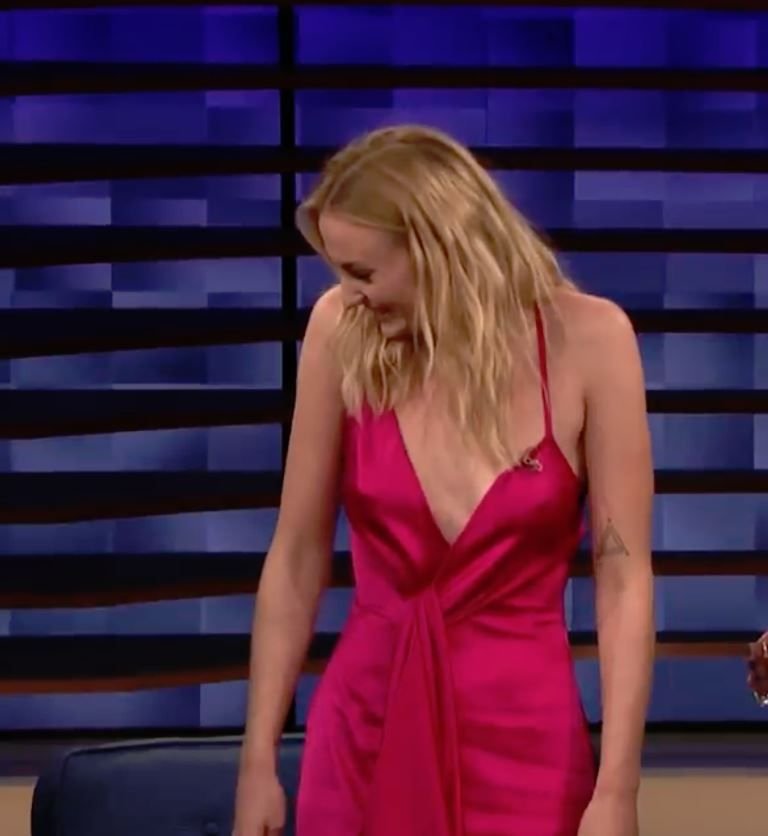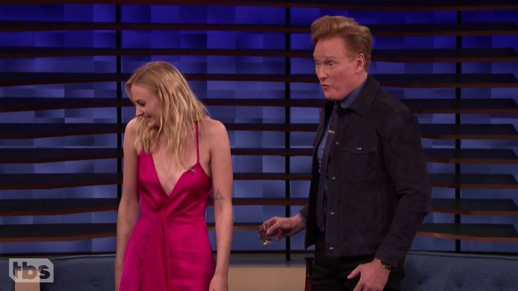 Актриса София Тернер показала свои твердые соски, надев красное платье на шоу Конана, 06/05/2019. Она рассказала Конану О’Брайену о стакане Starbucks в “Игре престолов” 8 сезона, 4 серии.