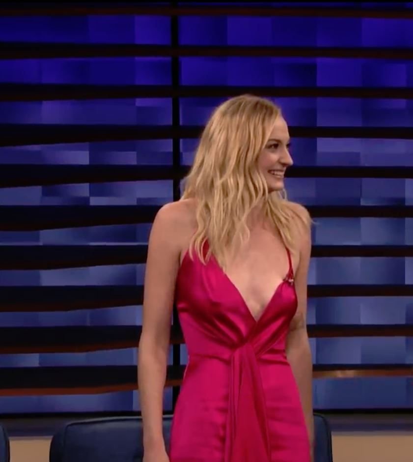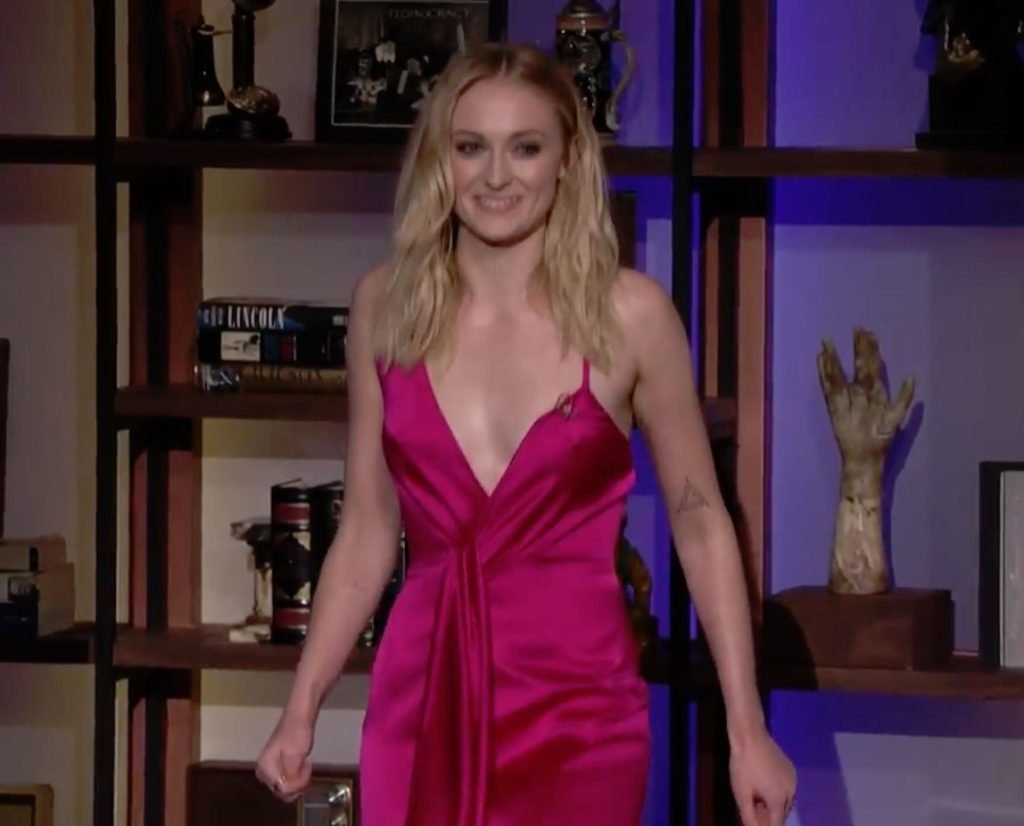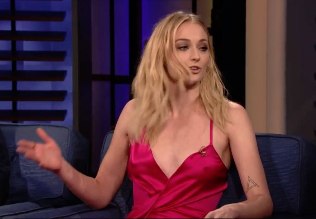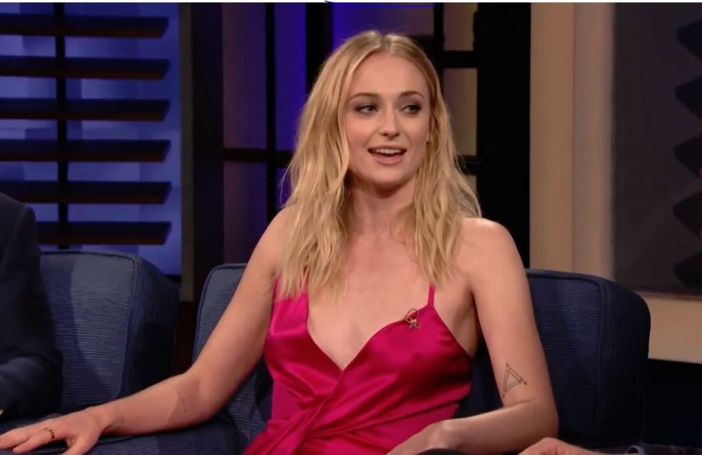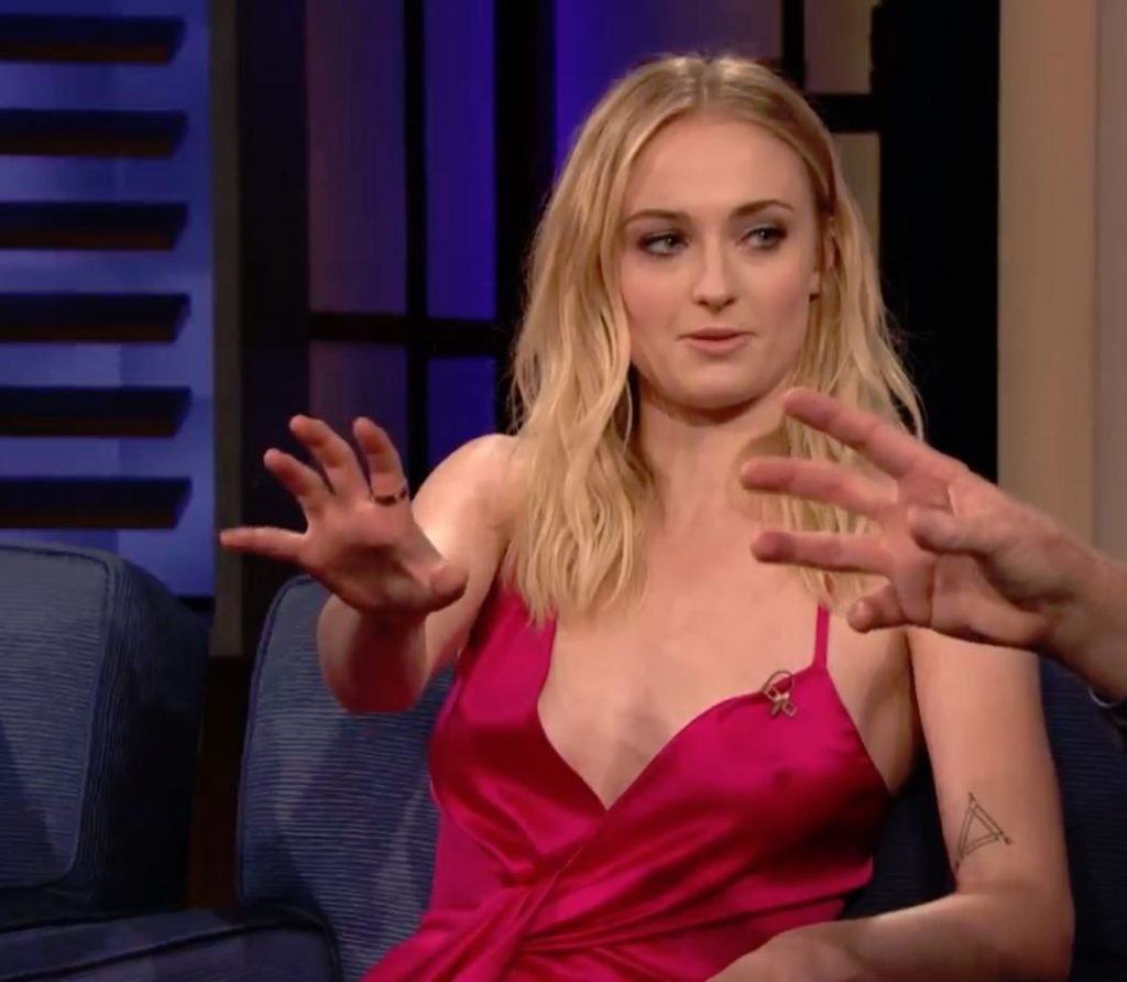 Актриса София Тернер показала свои твердые соски, надев красное платье на шоу Конана, 06/05/2019. Она рассказала Конану О’Брайену о стакане Starbucks в “Игре престолов” 8 сезона, 4 серии.