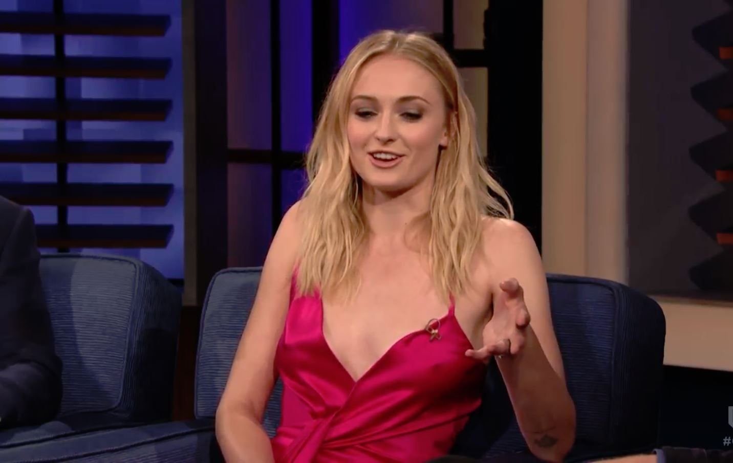 Актриса София Тернер показала свои твердые соски, надев красное платье на шоу Конана, 06/05/2019. Она рассказала Конану О’Брайену о стакане Starbucks в “Игре престолов” 8 сезона, 4 серии.