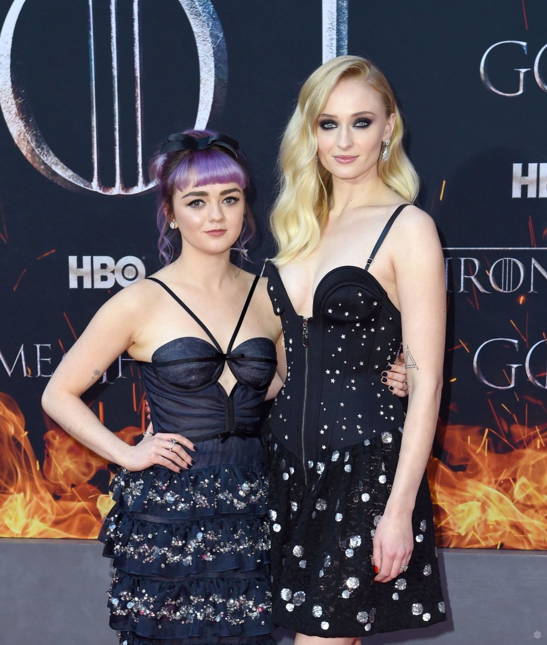 Блондинка актриса Софи Тернер демонстрирует свои сексуальные ноги на премьере 8 сезона “Игры престолов” в Нью-Йорке, 03.04.2019. Ее подруга, Мэйси Уильямс, была замечена там.