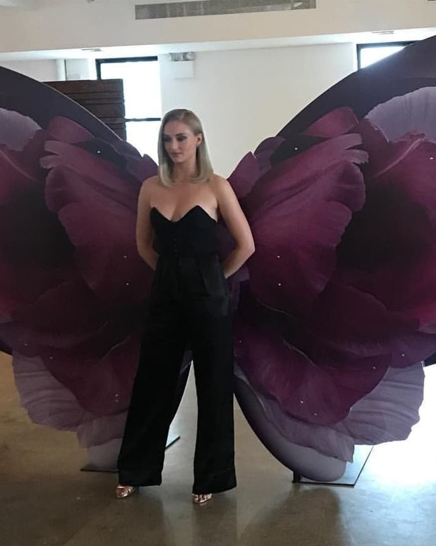 Актриса Софи Тернер продемонстрировала свое супер декольте на мероприятии Wella в Нью-Йорке – Instagram, 20.10.2018. Ее волосы выглядят отлично, но всех поклонников интересует увидеть ее лобок.