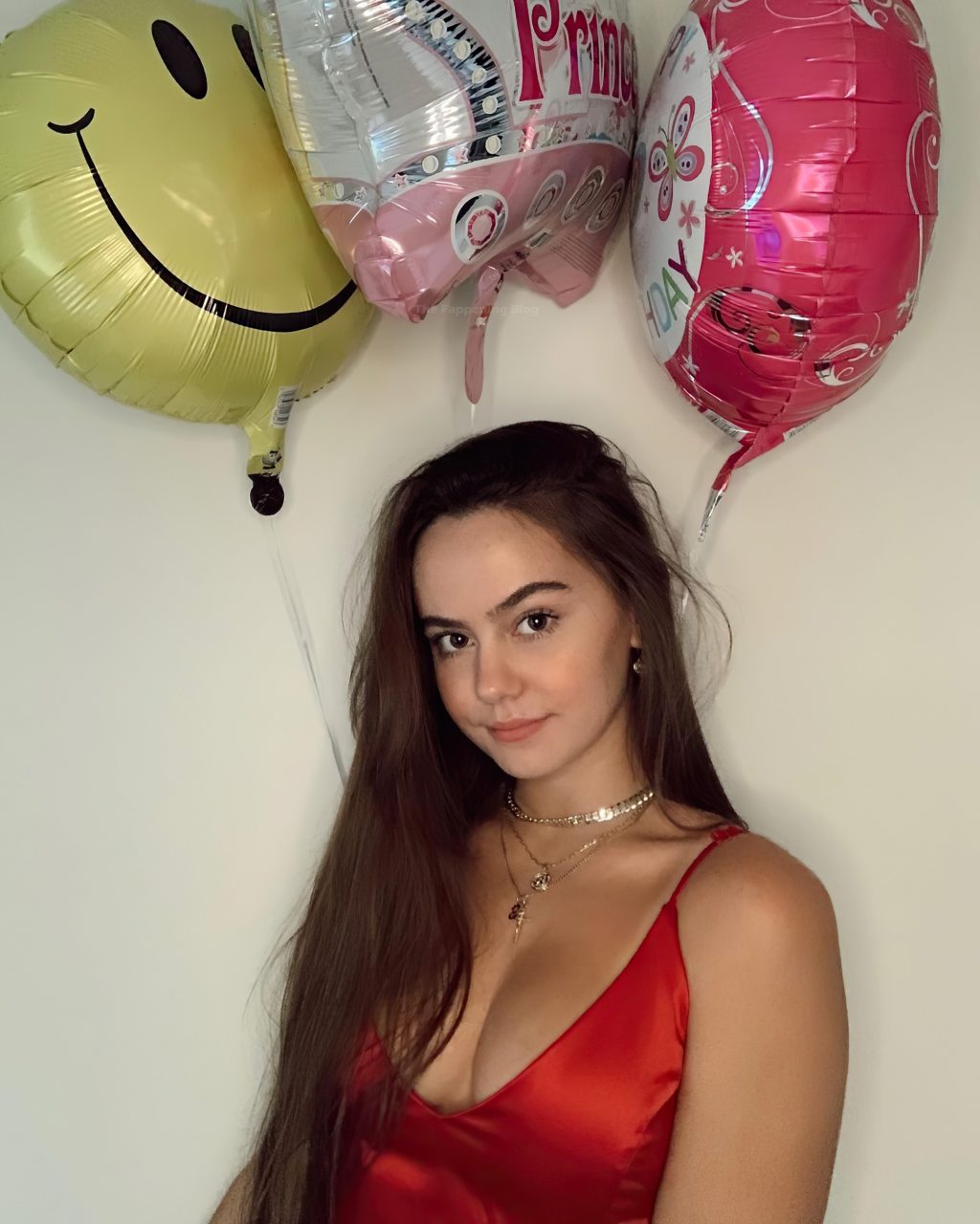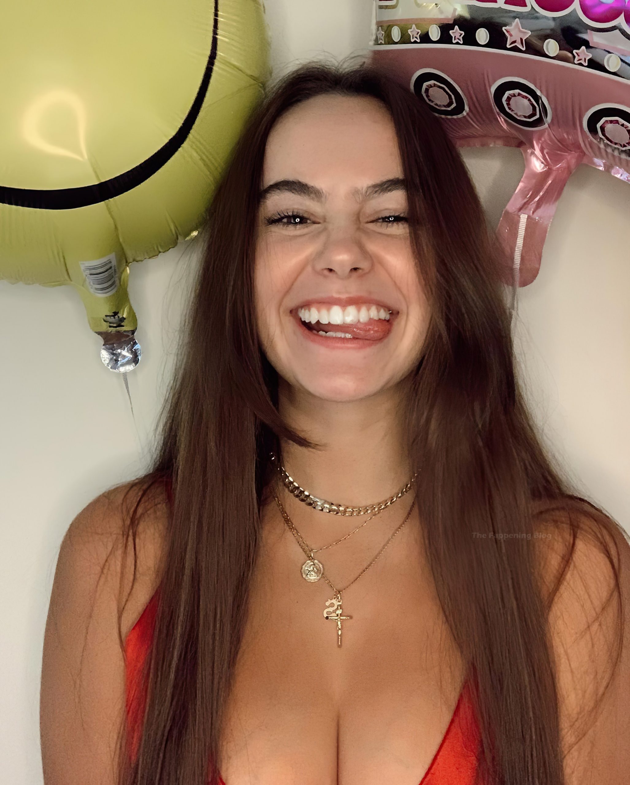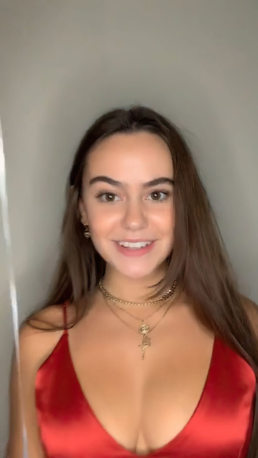 Канадская звезда TikTok Спенсер Барбоса демонстрирует свое декольте, позируя в сексуальном красном платье в честь своего 18-летия в Instagram, 29.10.2020.