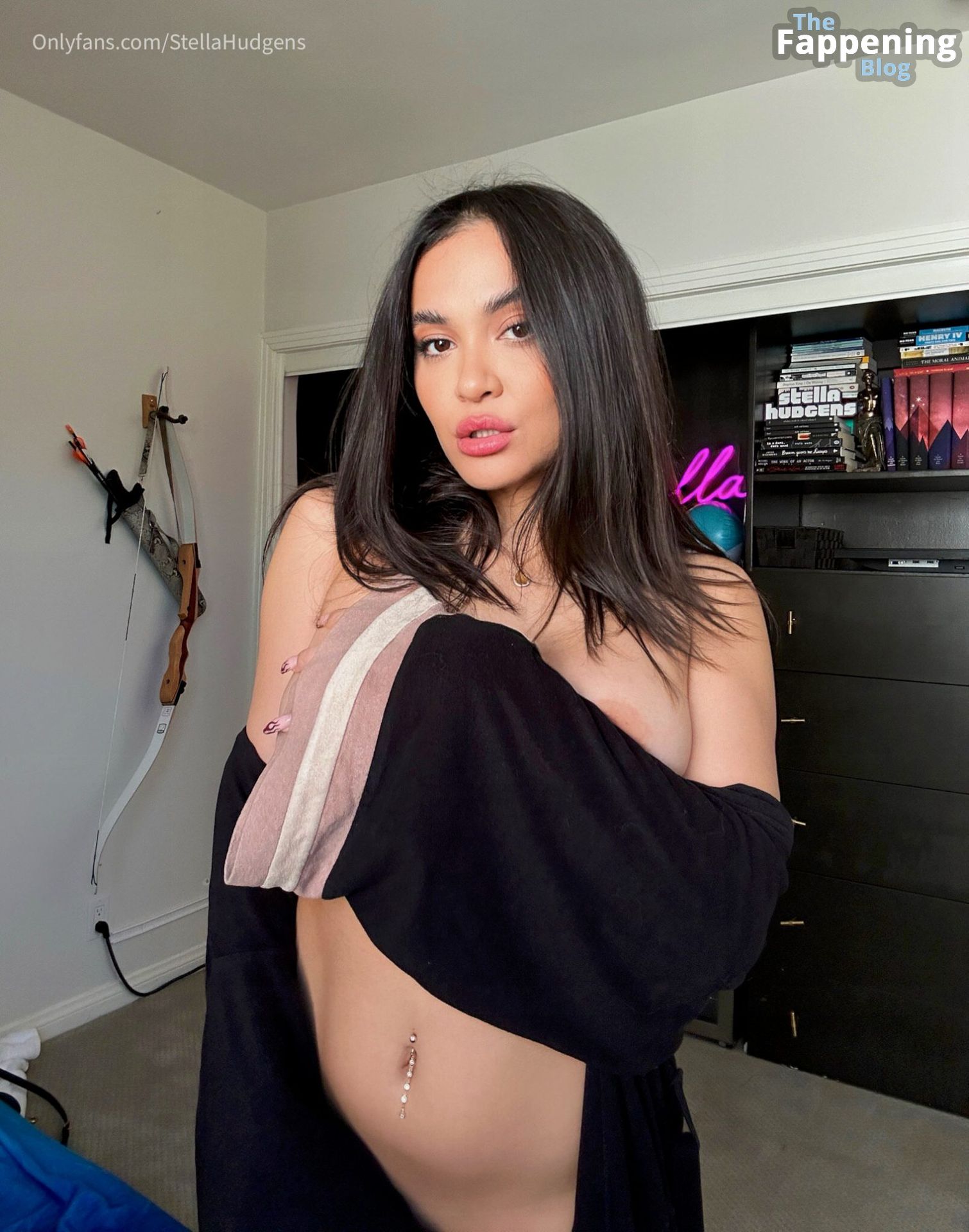 Стелла Хадженс показывает красивые обнажённые груди и соски в чёрном халате для своей страницы OF.