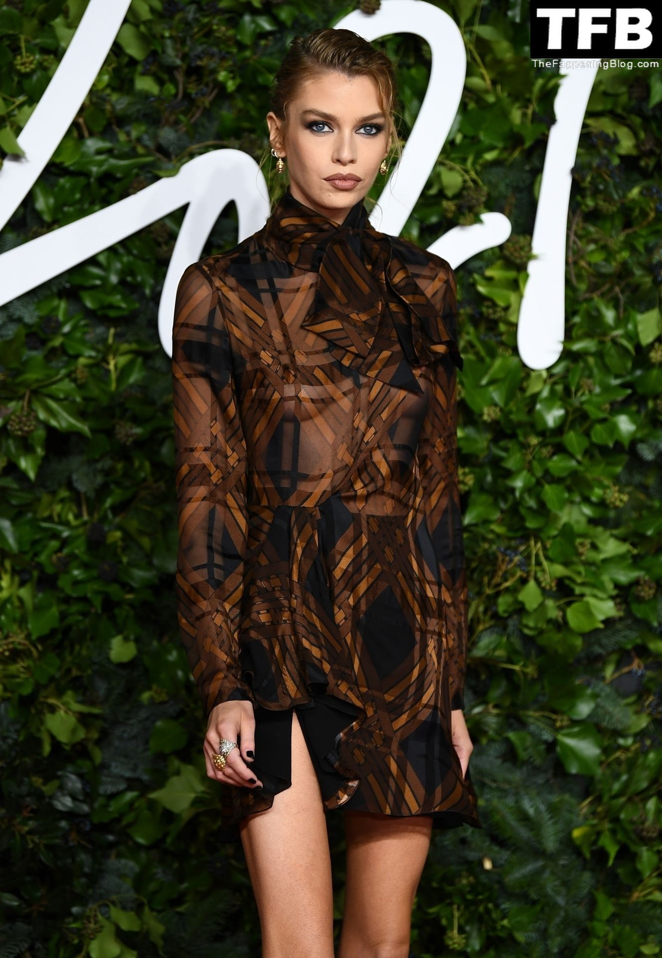 Модель и звезда The Fappening Стелла Максвелл замечена без бюстгальтера на церемонии Fashion Awards в Лондоне, 29.11.2021.