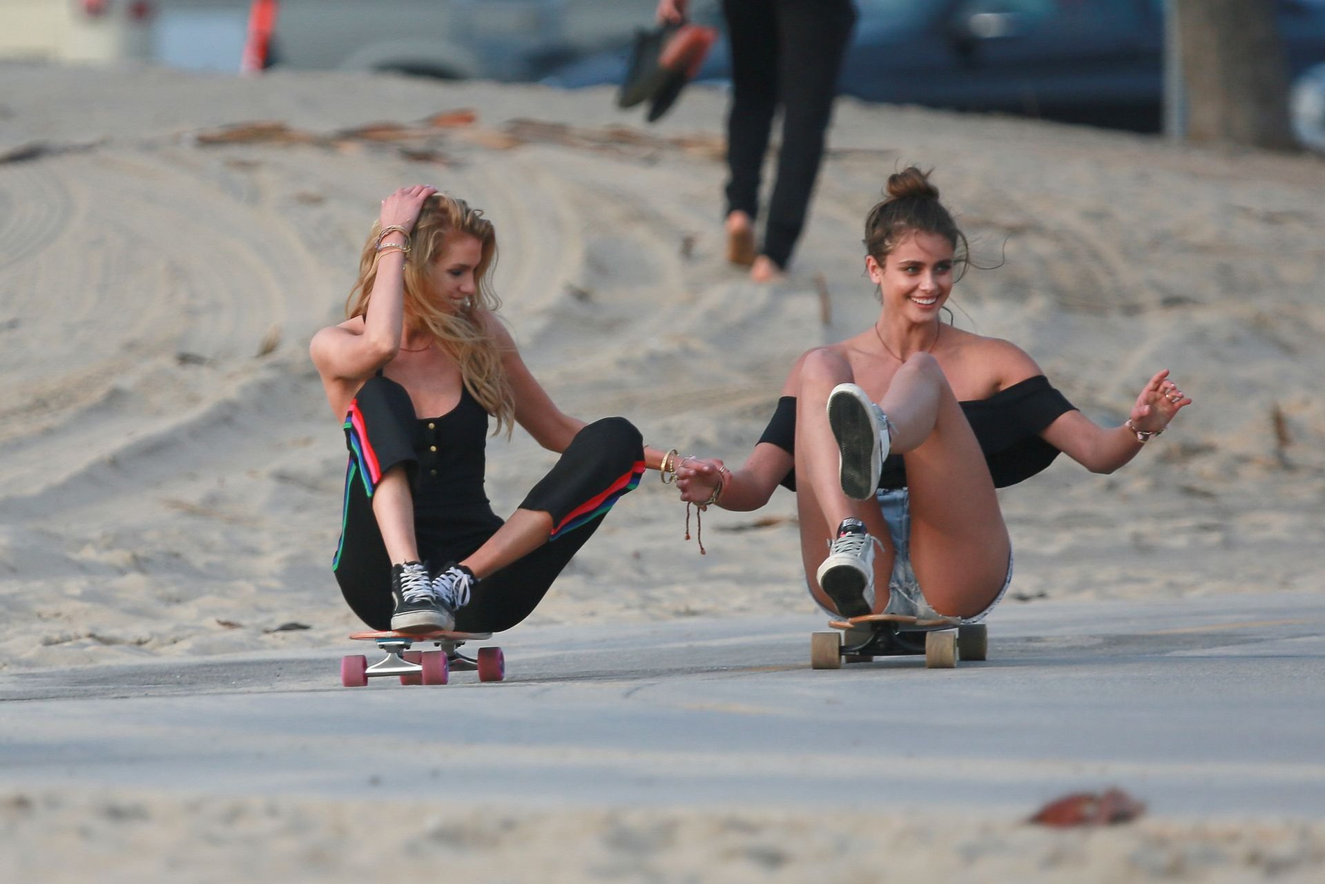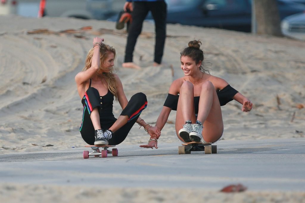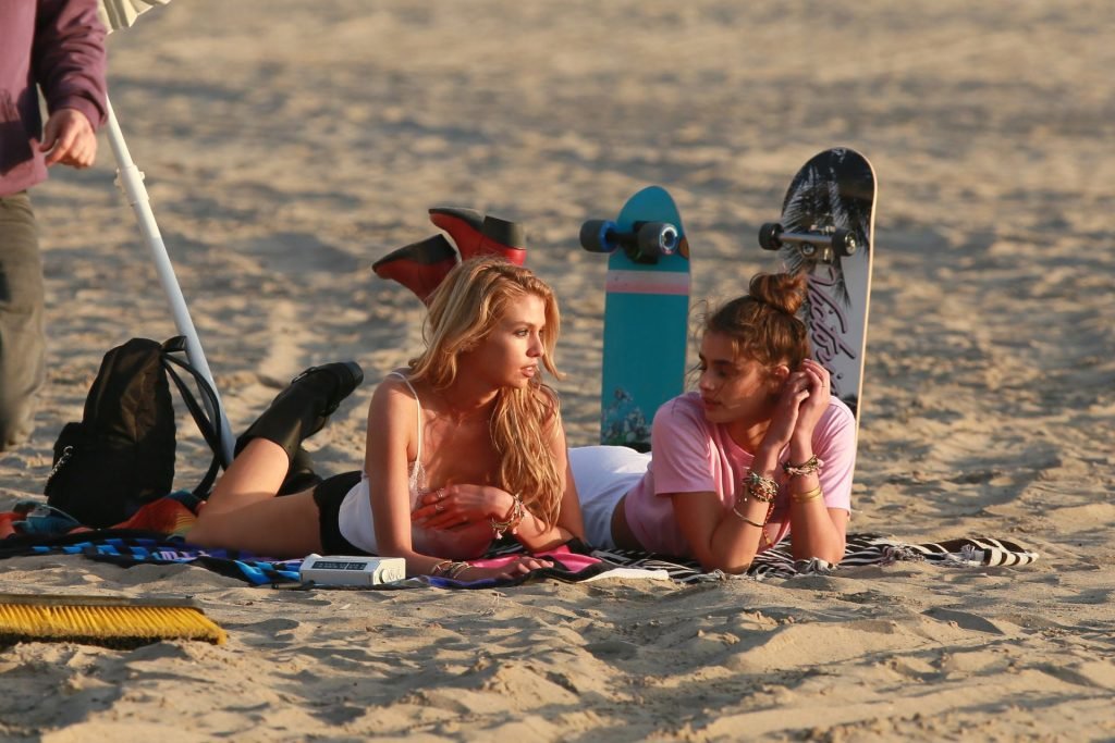 Стелла Максвелл показывает своей бывшей Кристен Стюарт, чего ей не хватает, во время фотосессии для Victoria’s Secret вместе с моделью Тейлор Хилл на пляже Венеции, 11.01.2019.