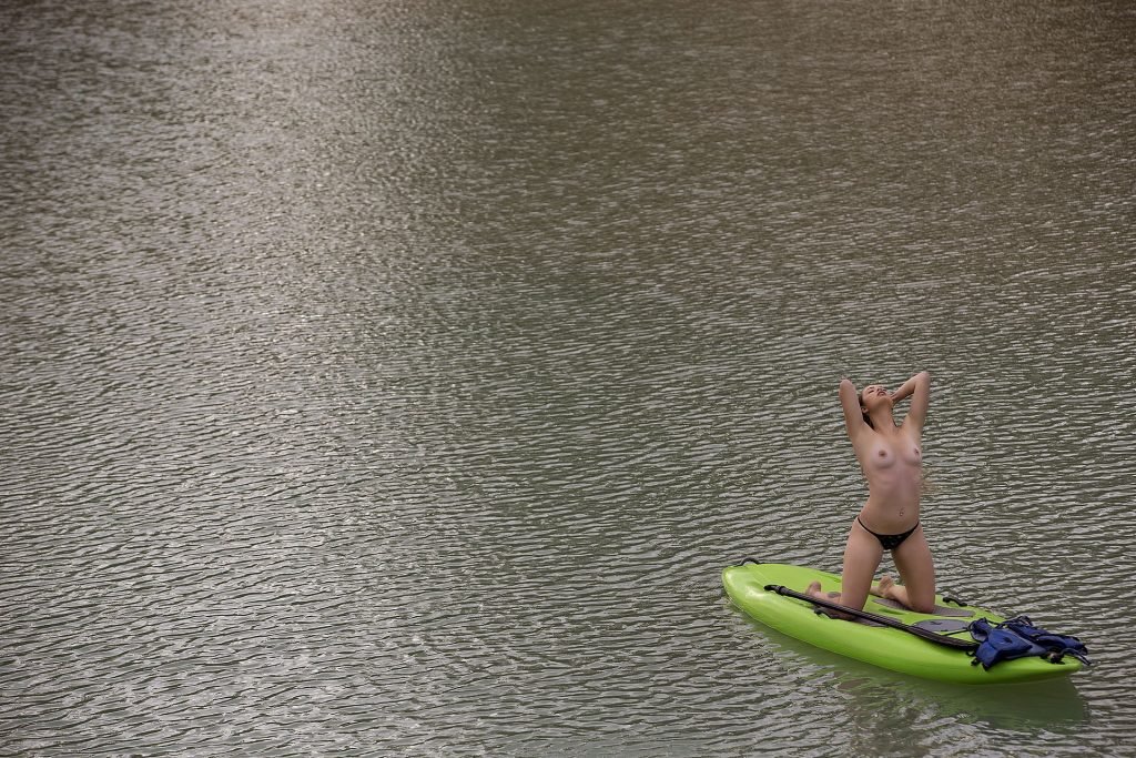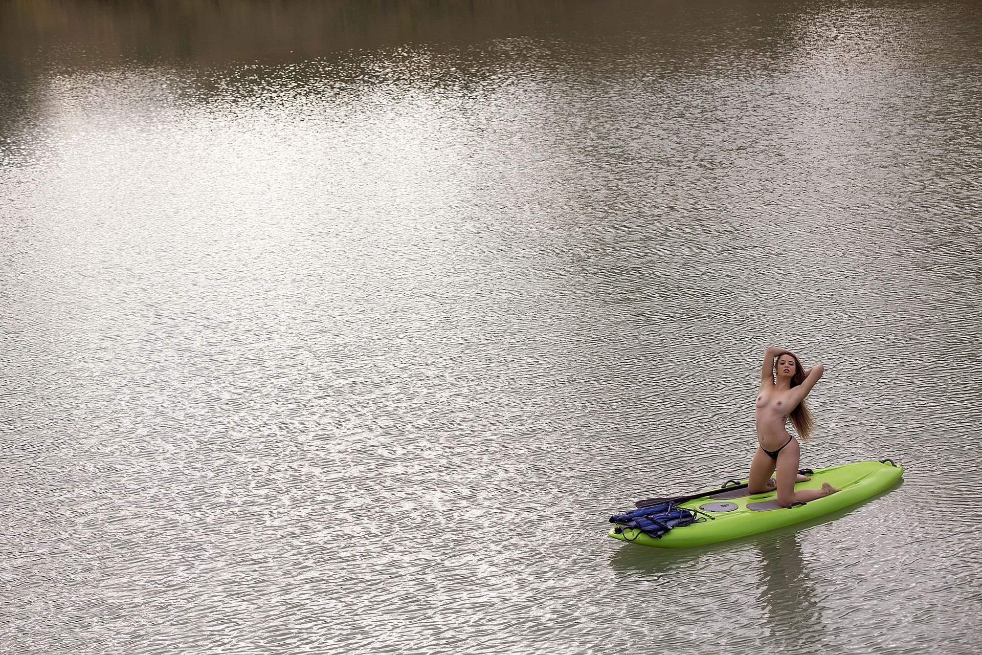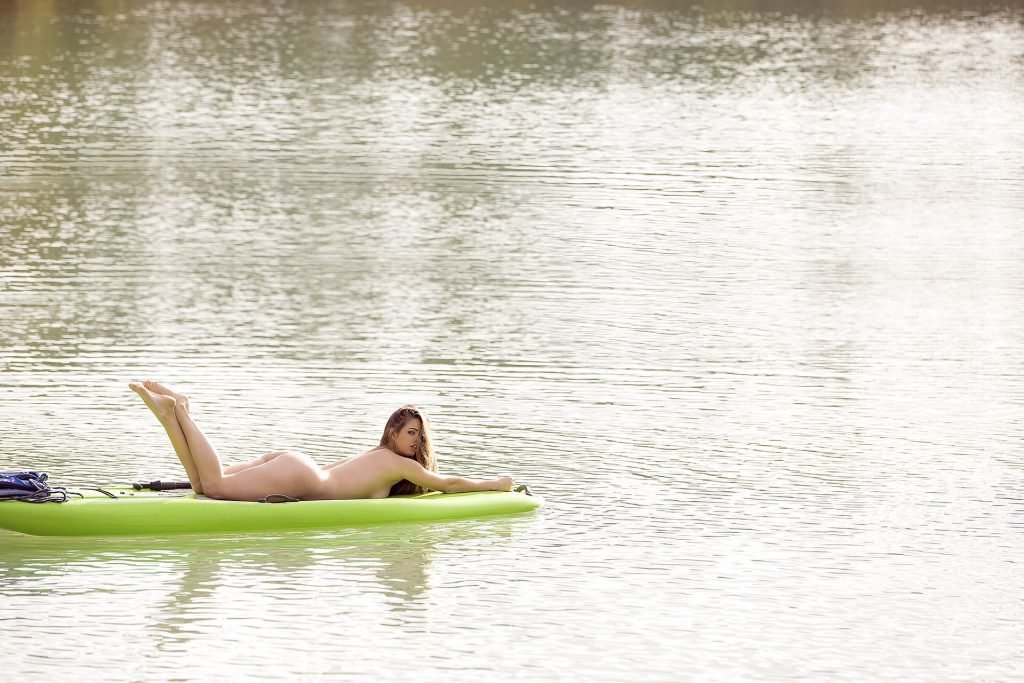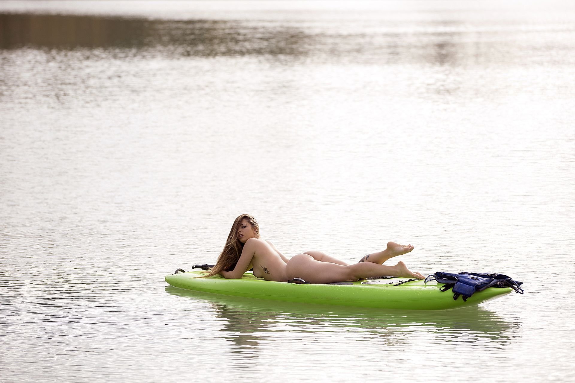 Бразильская модель Степхани Карвальо показала своё красивое обнажённое тело в фотосессии Карлоса Феликса (2017). Эта потрясающая красотка была сфотографирована голой на зелёном каяке.