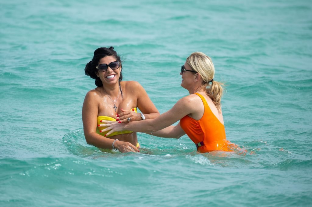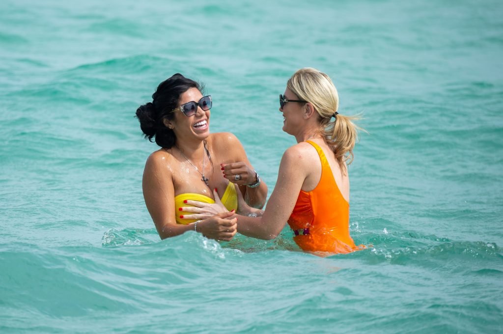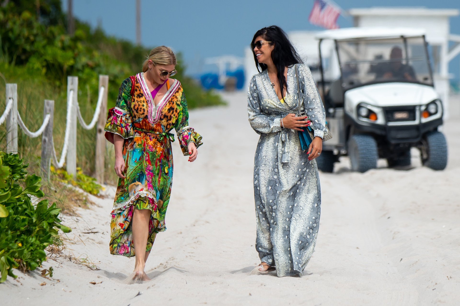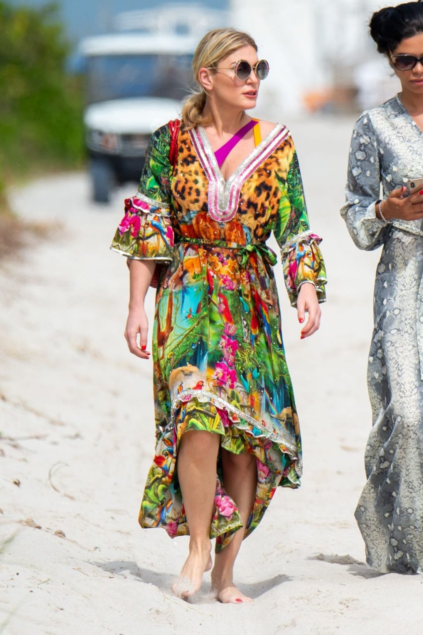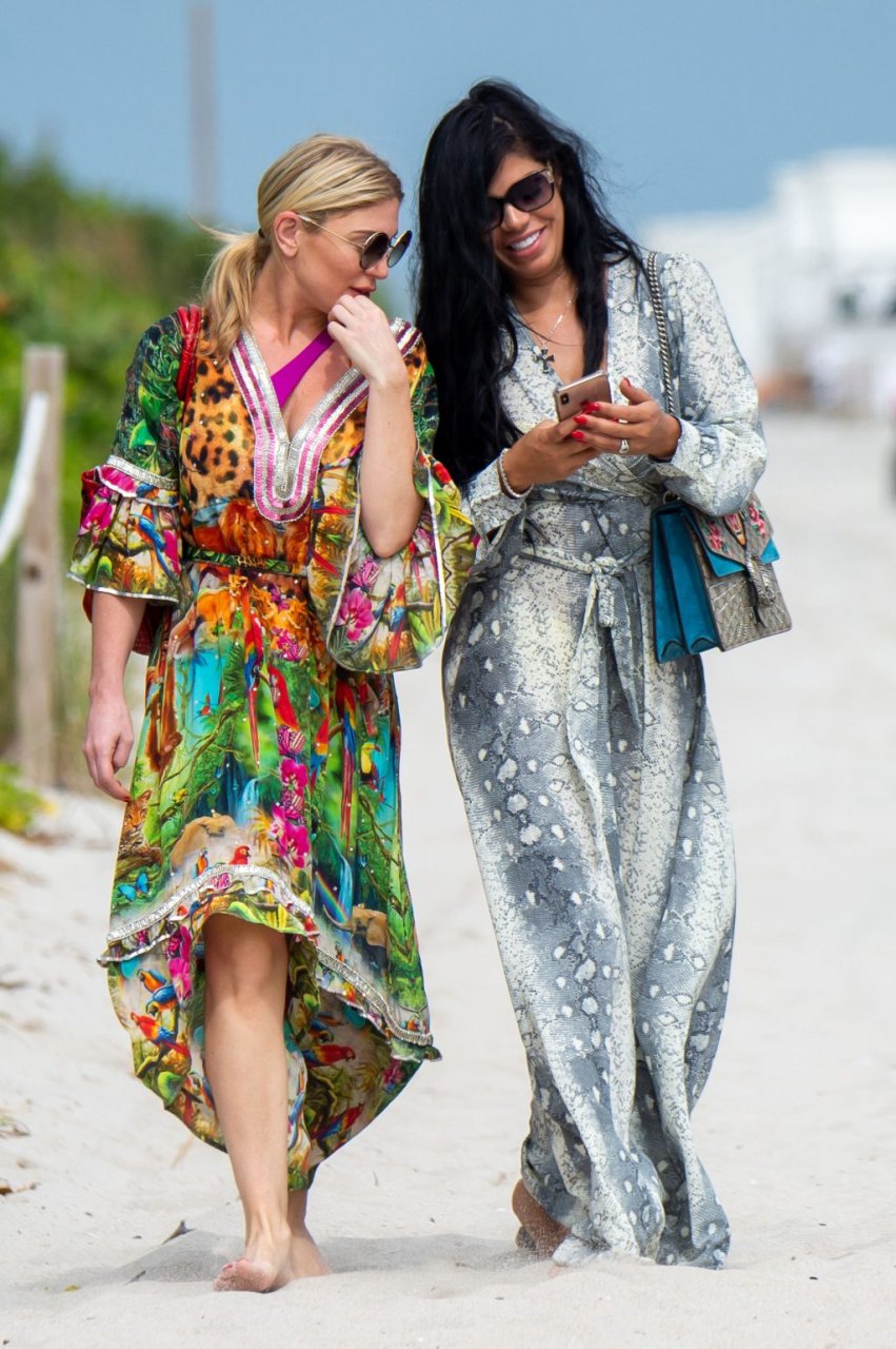 Suelyn Medeiros запечатлена с Хофит Голан на пляже в Майами, 03.11.2018. Брюнетка демонстрировала свои изгибы в ярко-желтом бикини, в то время как Хофит Голан была в купальнике фиолетово-оранжевого цвета. Суэлин Мейдейрос — 32-летняя бразильско-американская модель и актриса (Video Girl (2011), Perfect Combination (2010), Dysfunctional Friends (2012)).