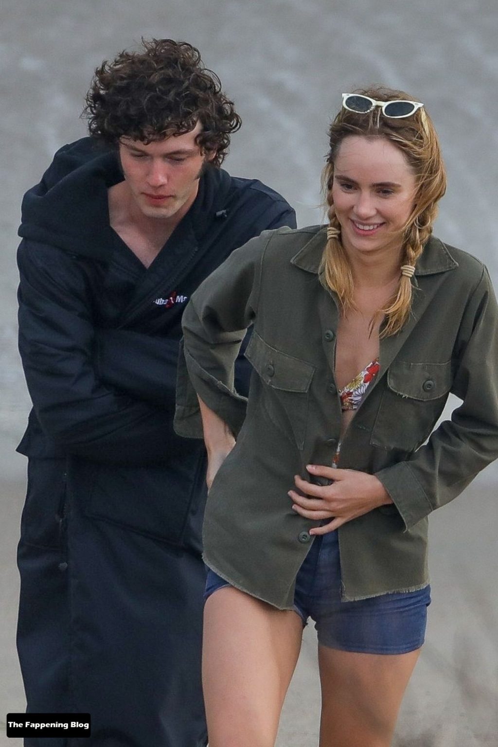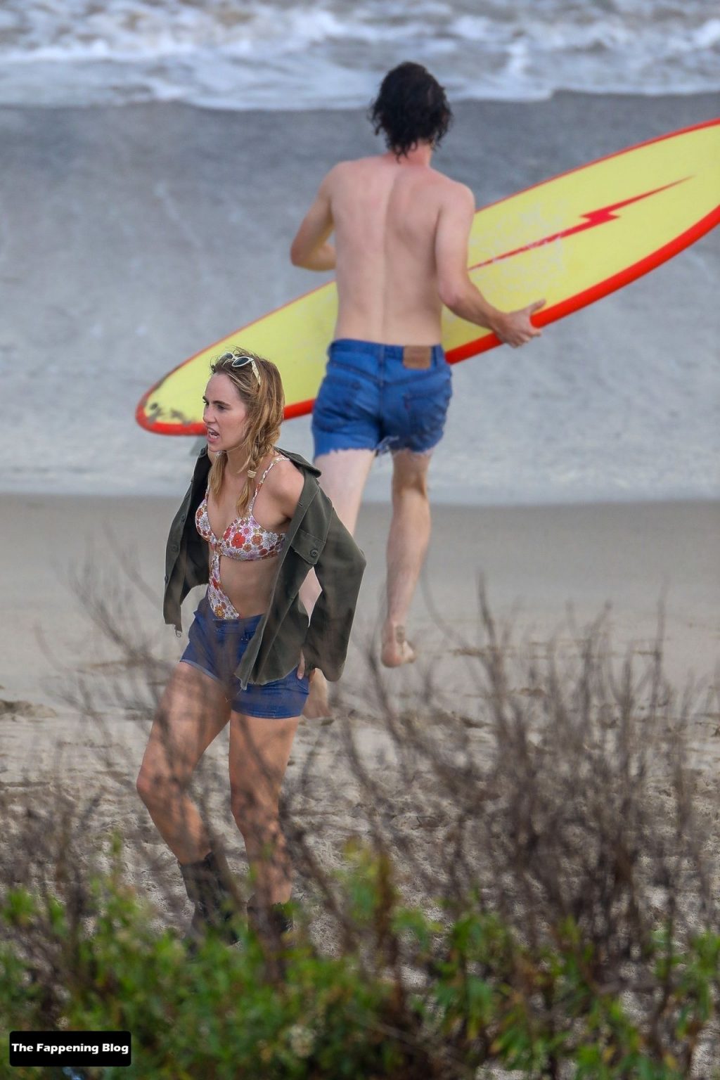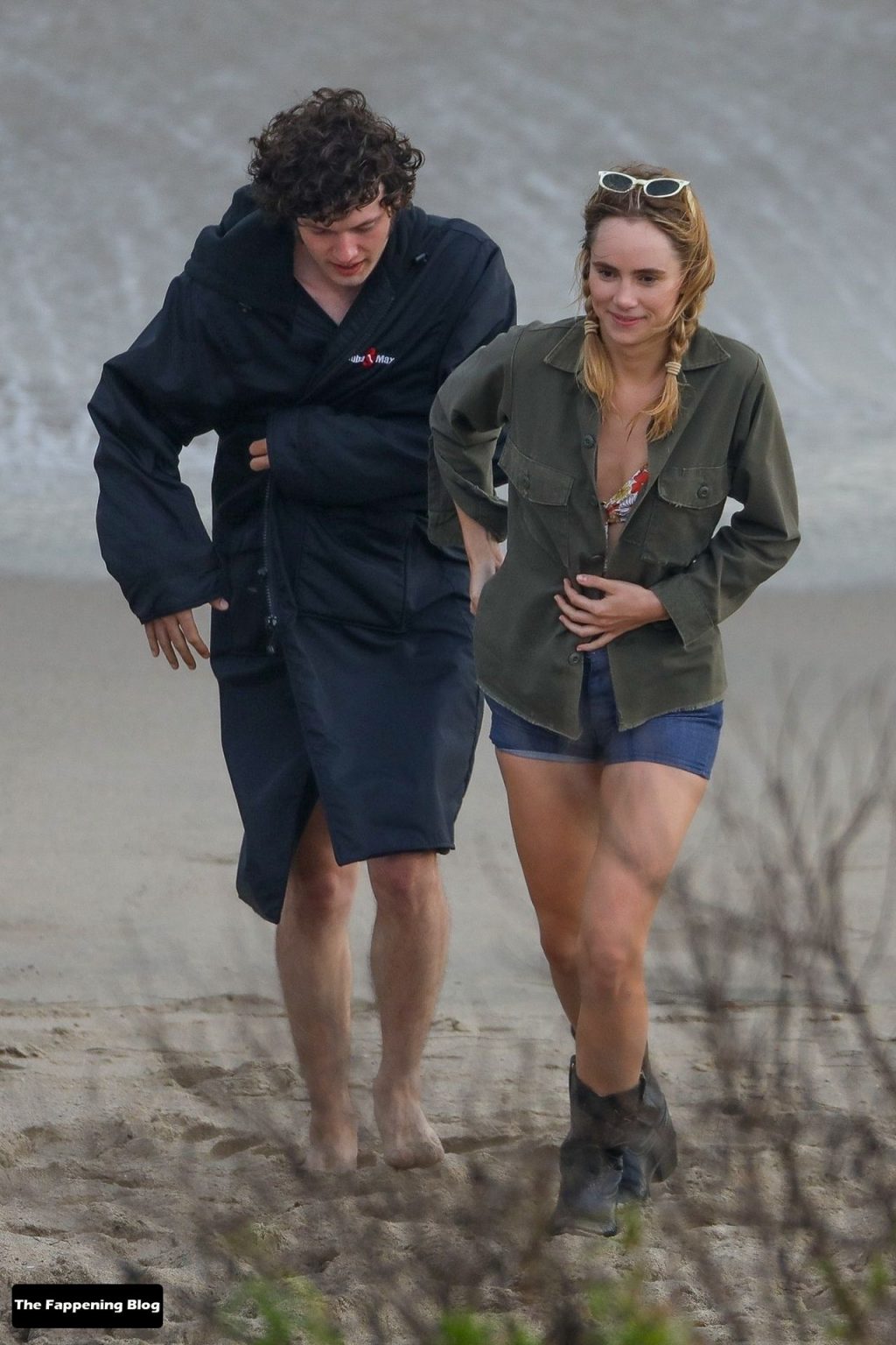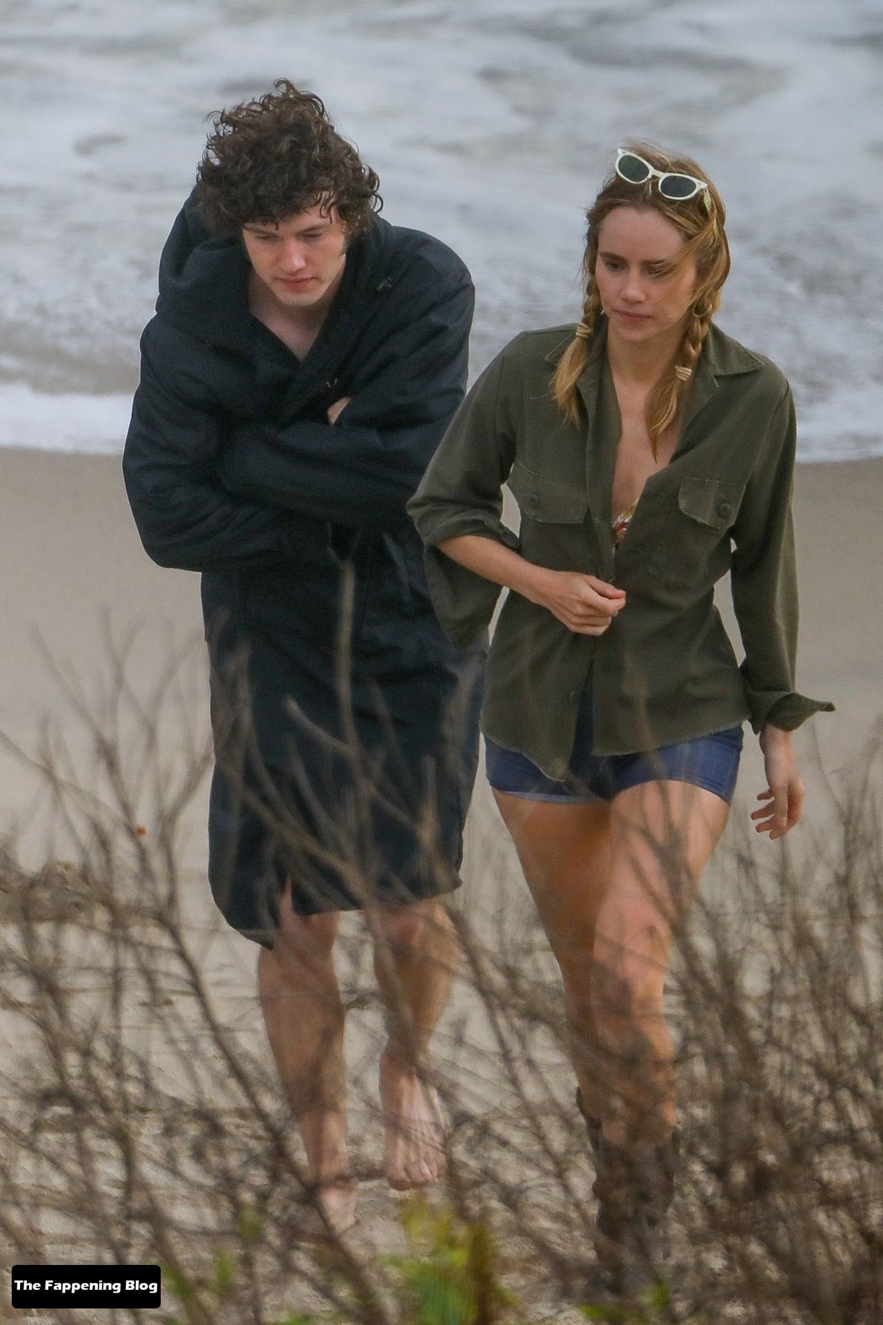 Суки Уотерхаус и голый по пояс Уилл Харрисон захватывают Малибу, снимая несколько сцен для ‘Дейзи Джонс & Шесть’, 10/04/2021.