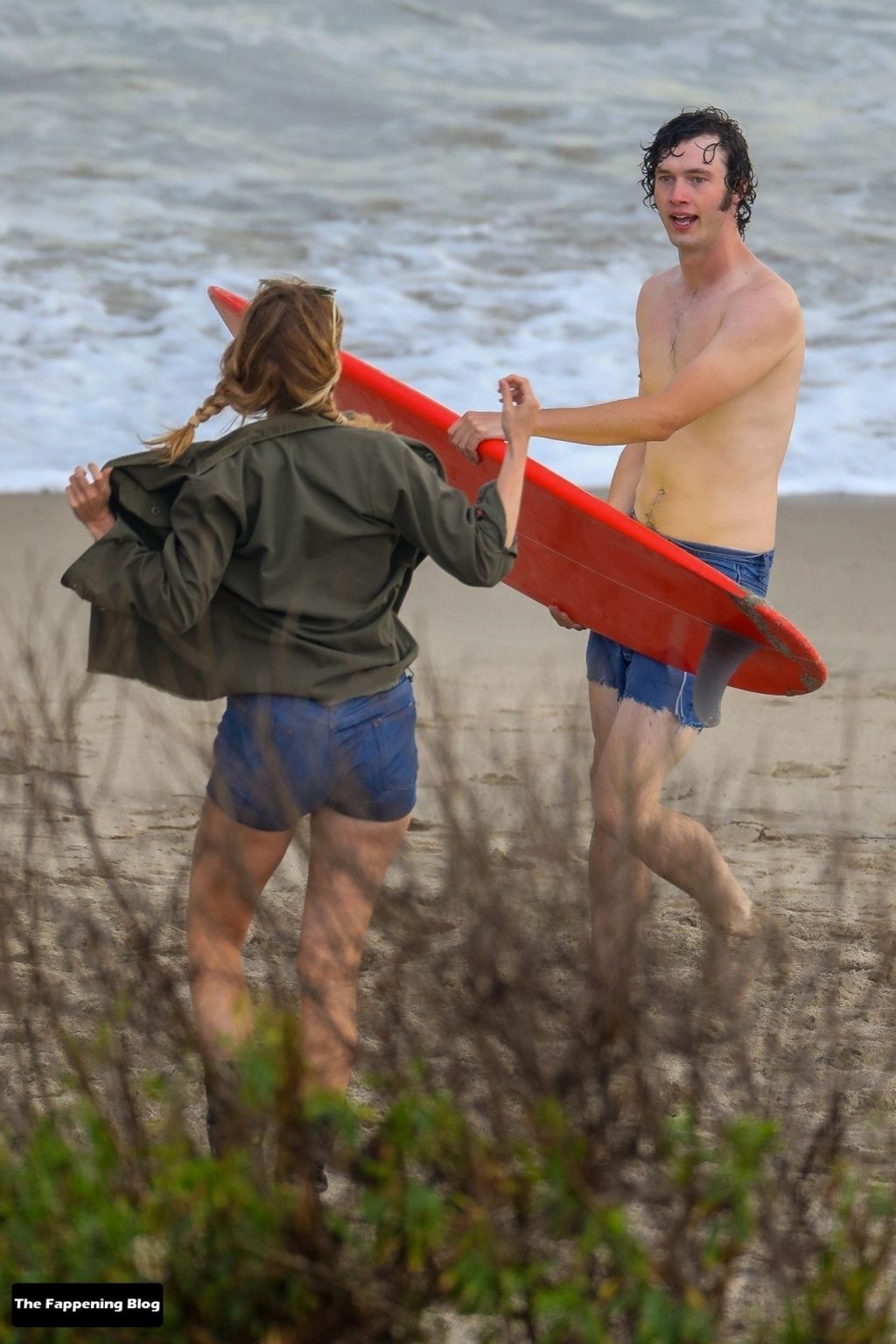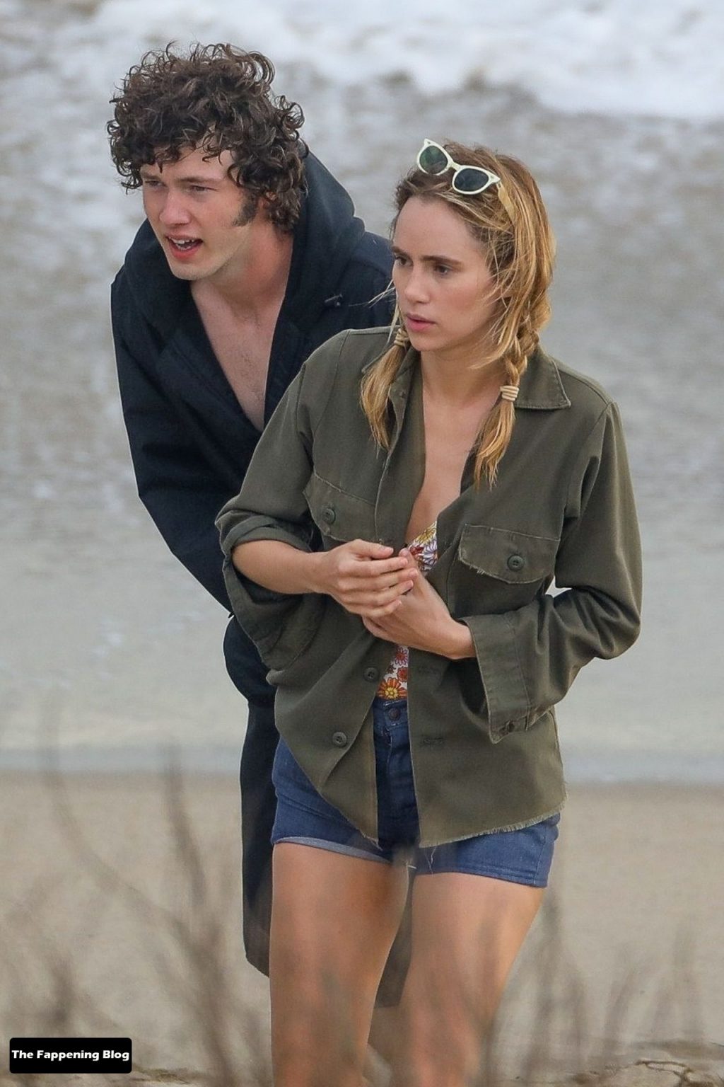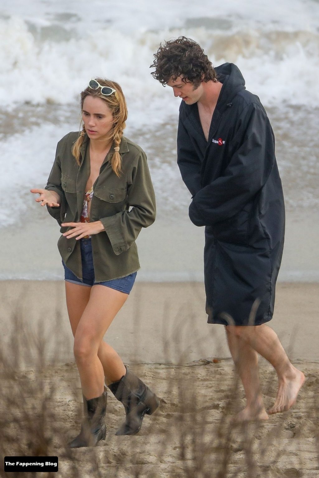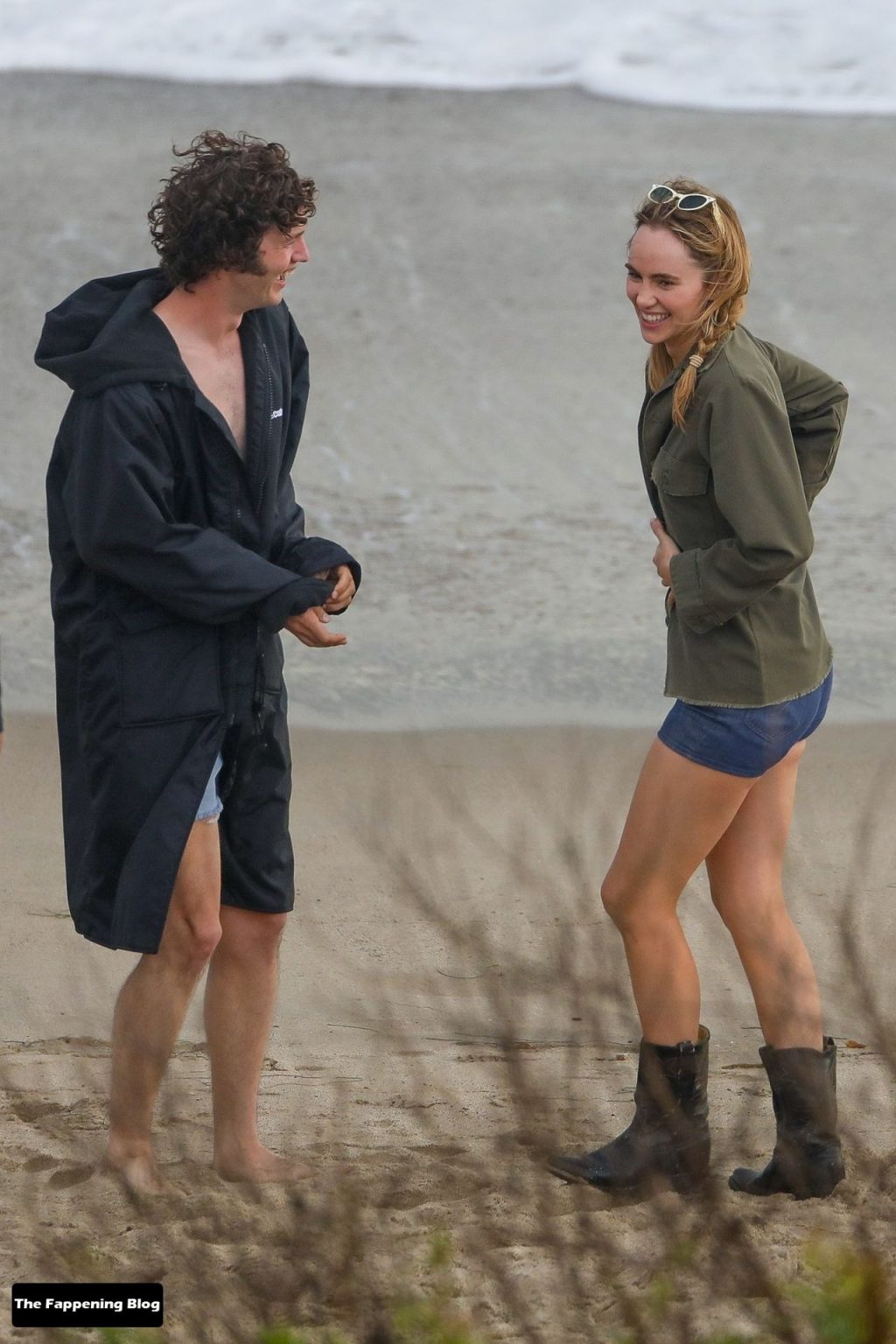 Суки Уотерхаус и голый по пояс Уилл Харрисон захватывают Малибу, снимая несколько сцен для ‘Дейзи Джонс & Шесть’, 10/04/2021.