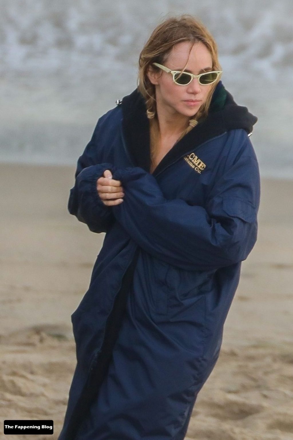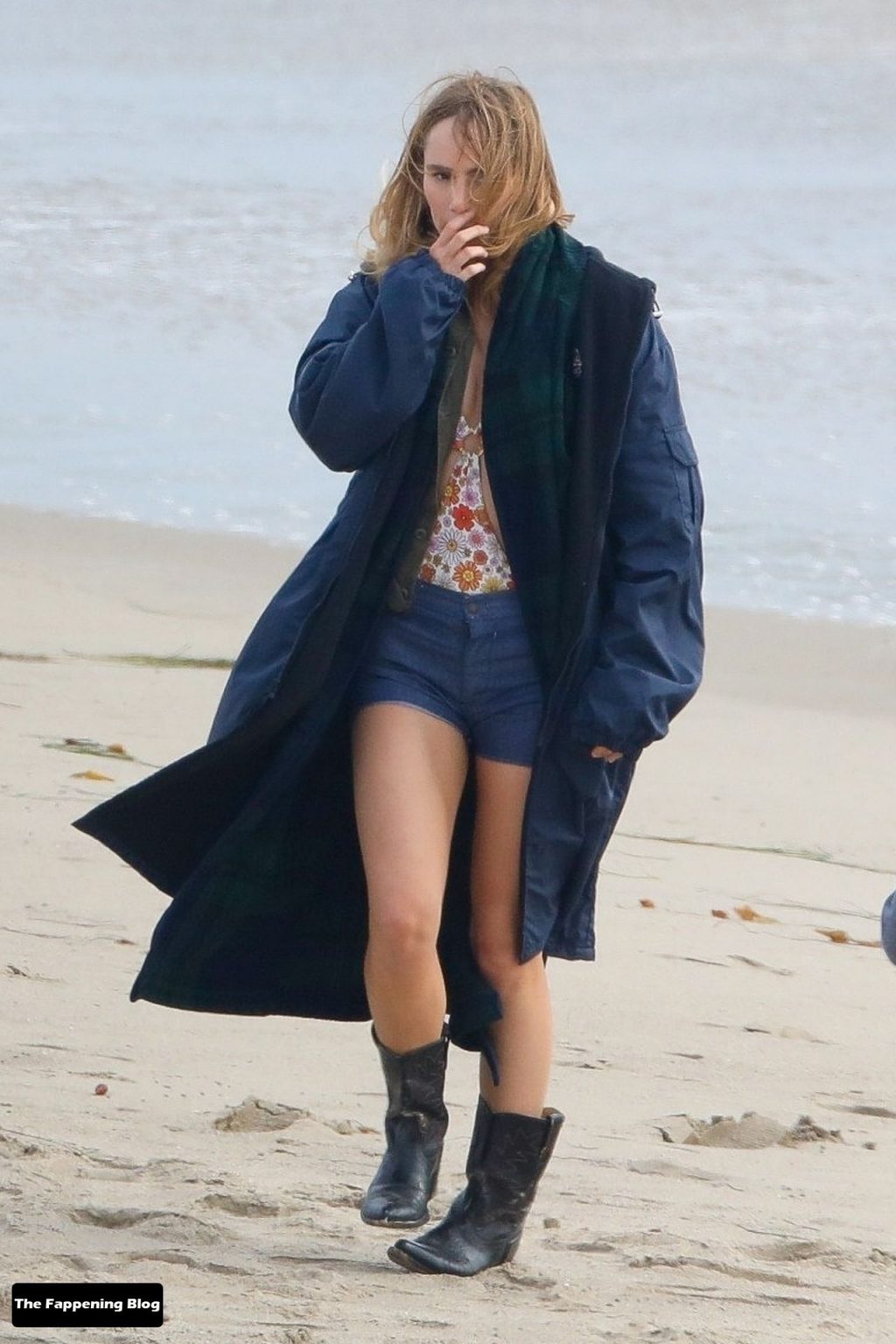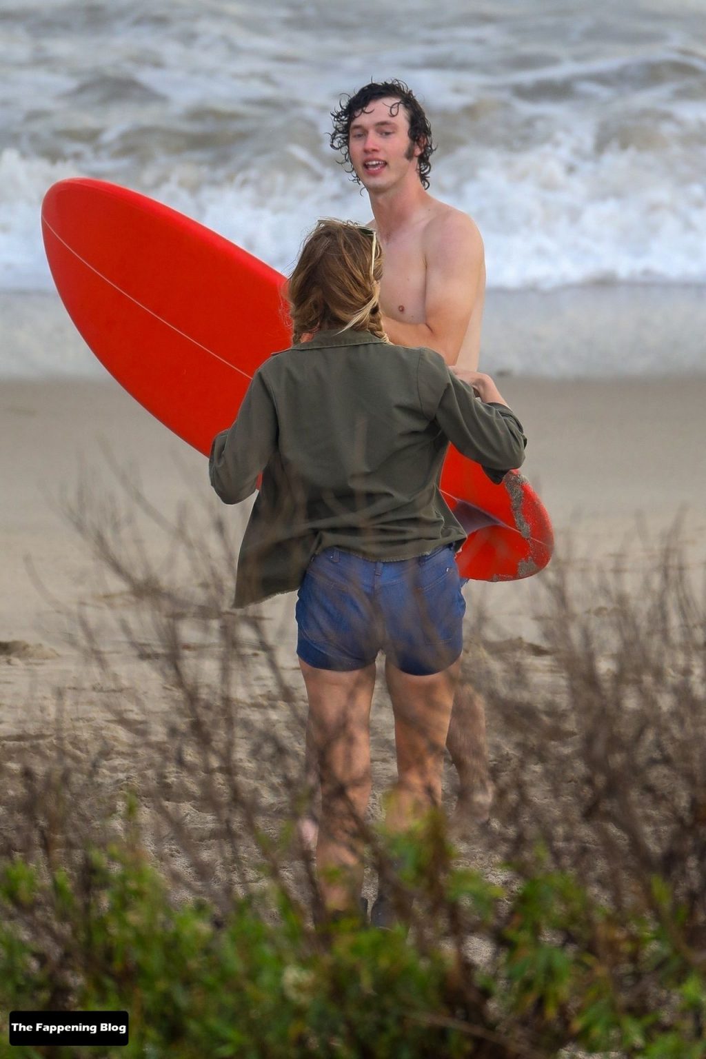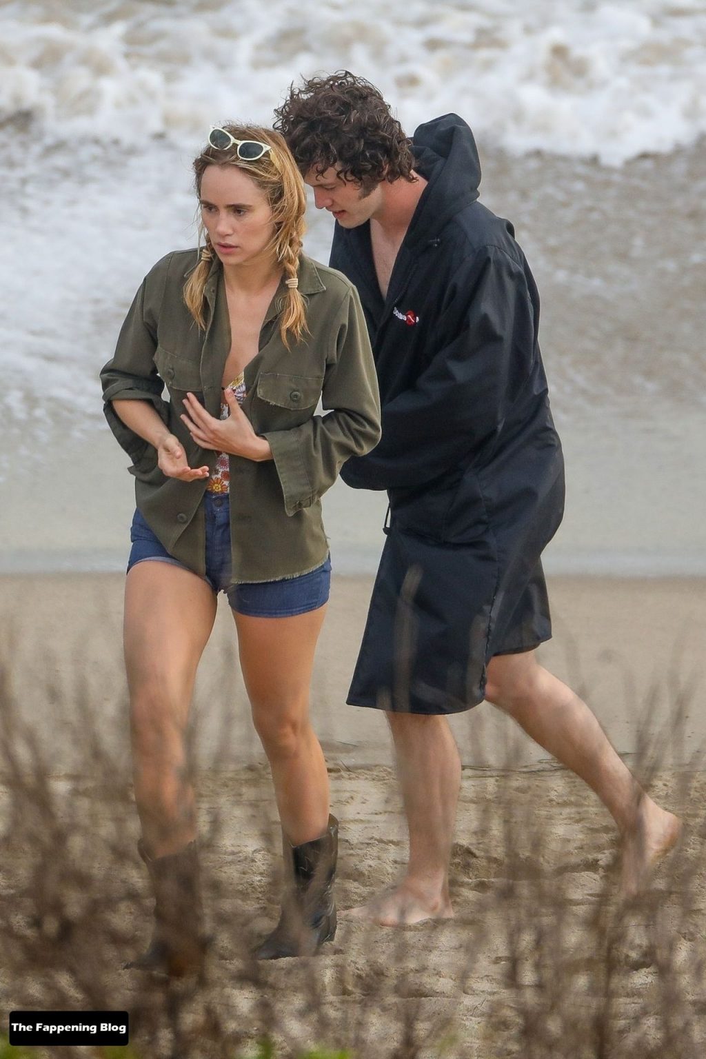 Суки Уотерхаус и голый по пояс Уилл Харрисон захватывают Малибу, снимая несколько сцен для ‘Дейзи Джонс & Шесть’, 10/04/2021.