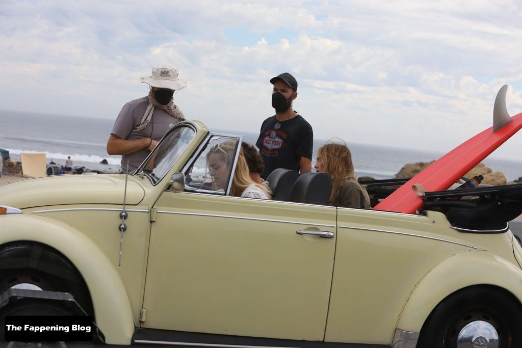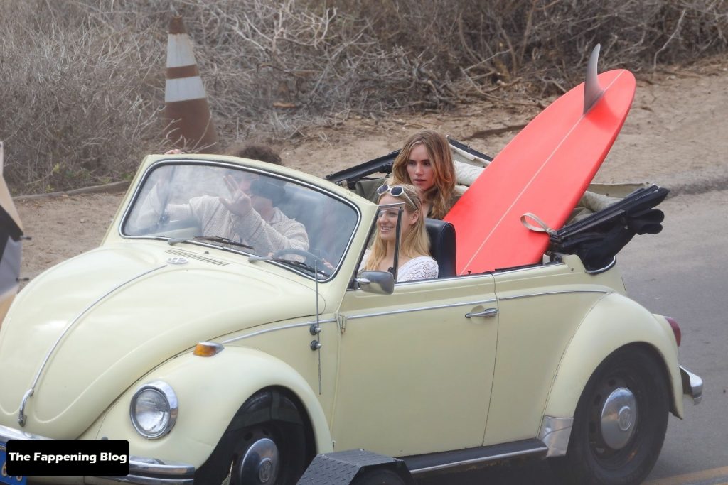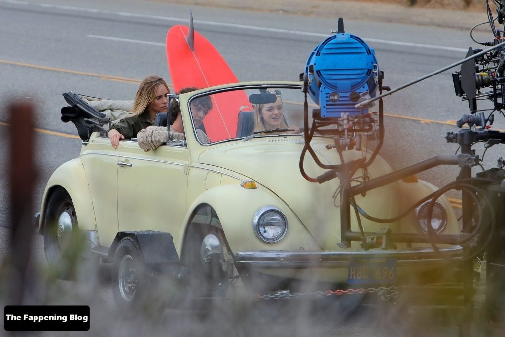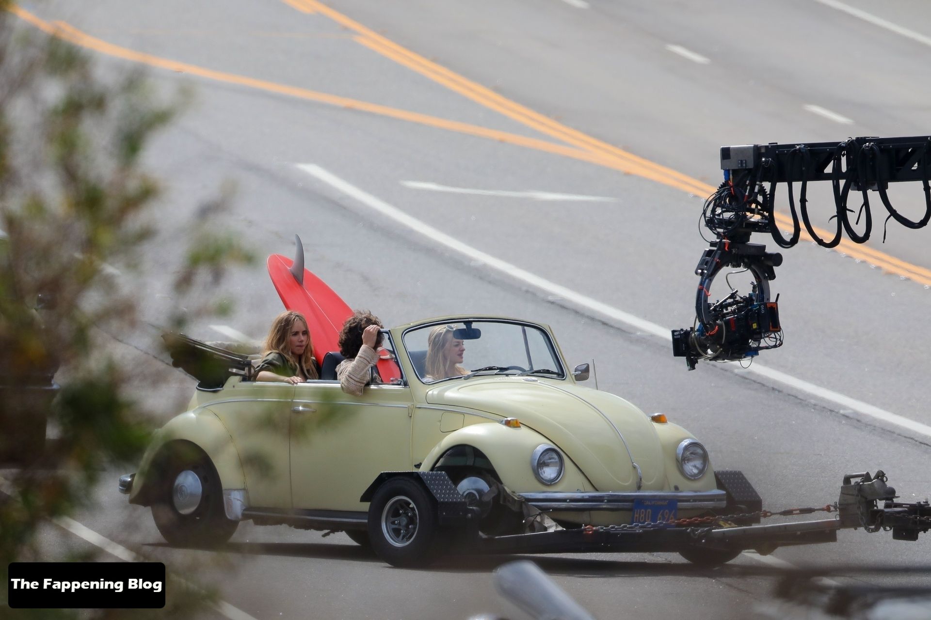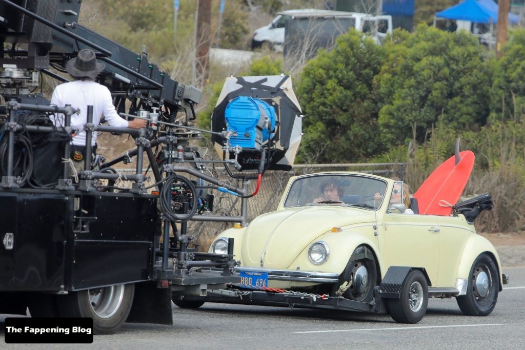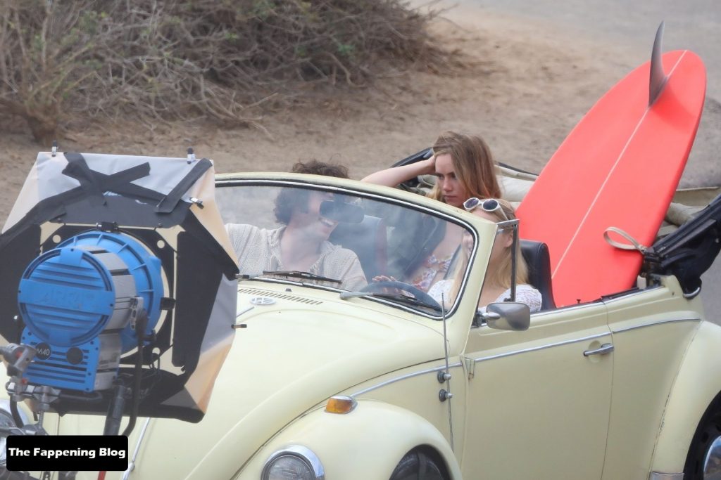 Актеры наслаждались поездкой по Тихоокеанскому шоссе на винтажном кабриолете VW Beetle. Также Суки заметили, как она курит между дублями.