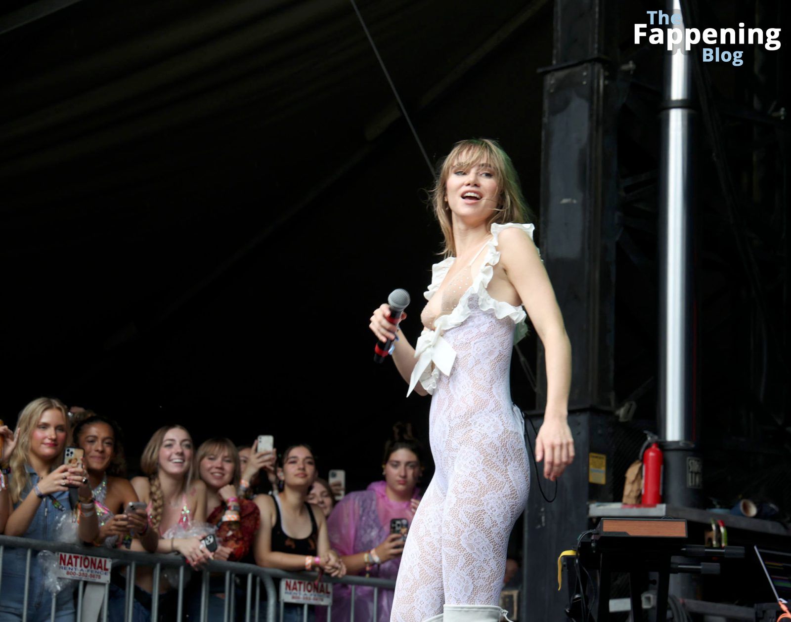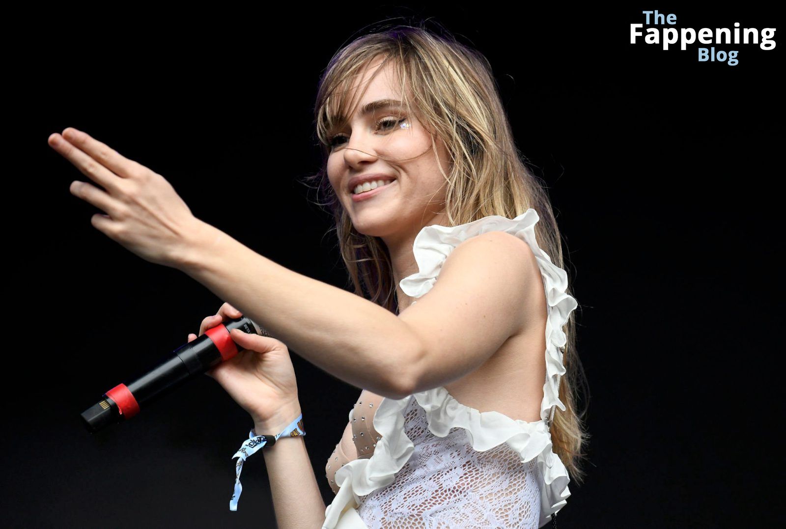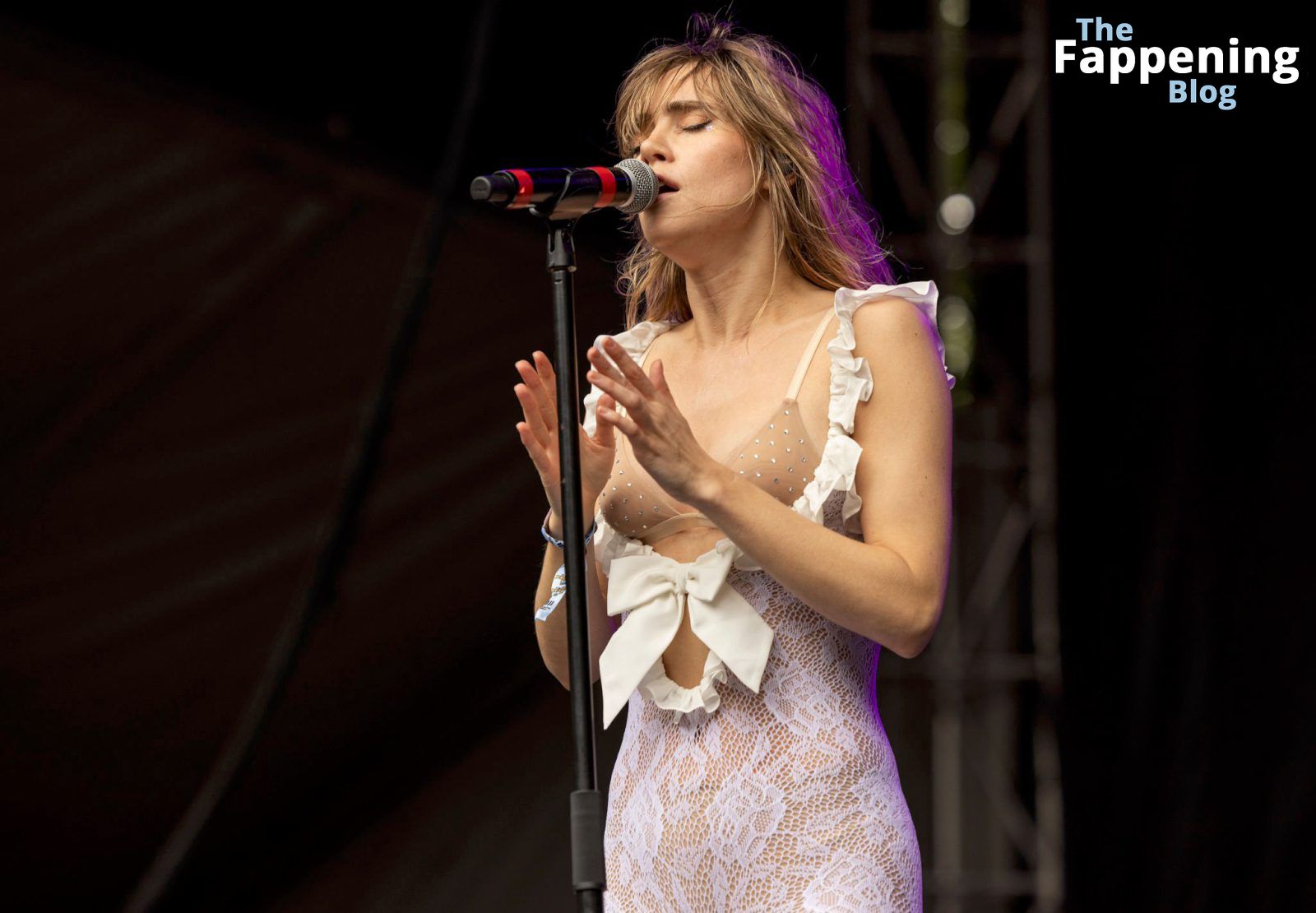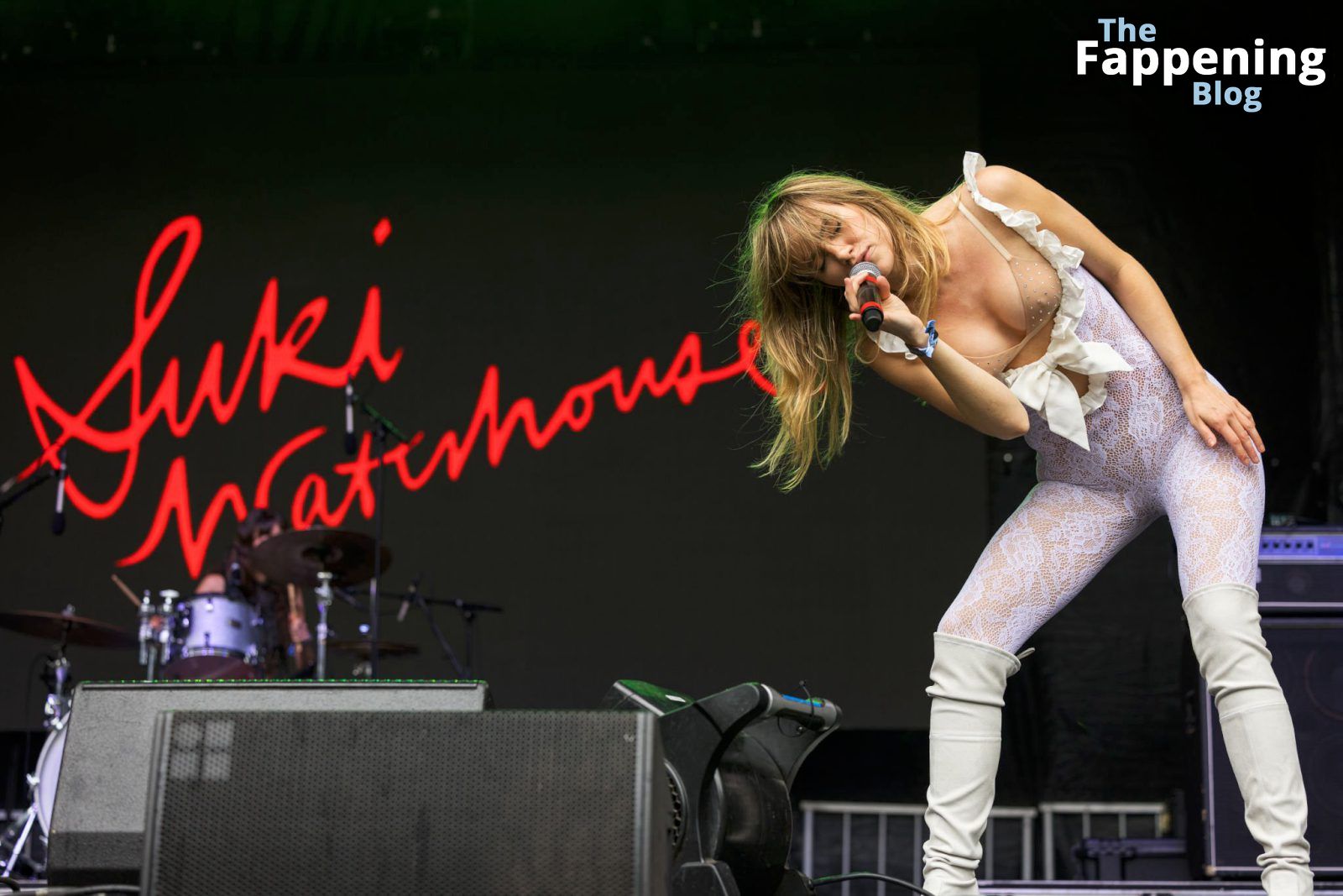 Приготовьтесь увидеть смелые движения Суки Уотерхаус на Lollapalooza. Она выводит всё на новый уровень, демонстрируя свой бюстгальтер и соски во время захватывающего выступления.