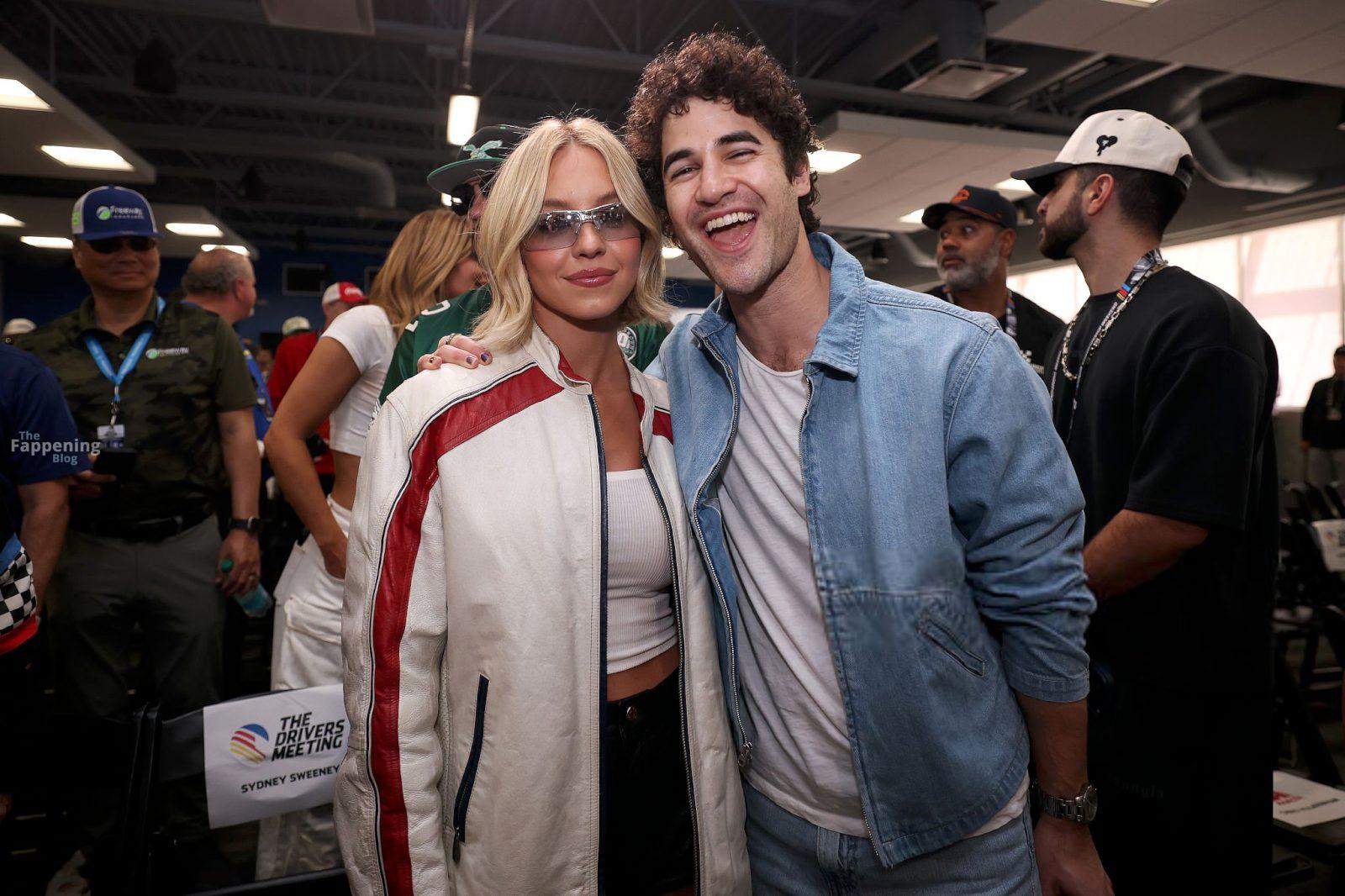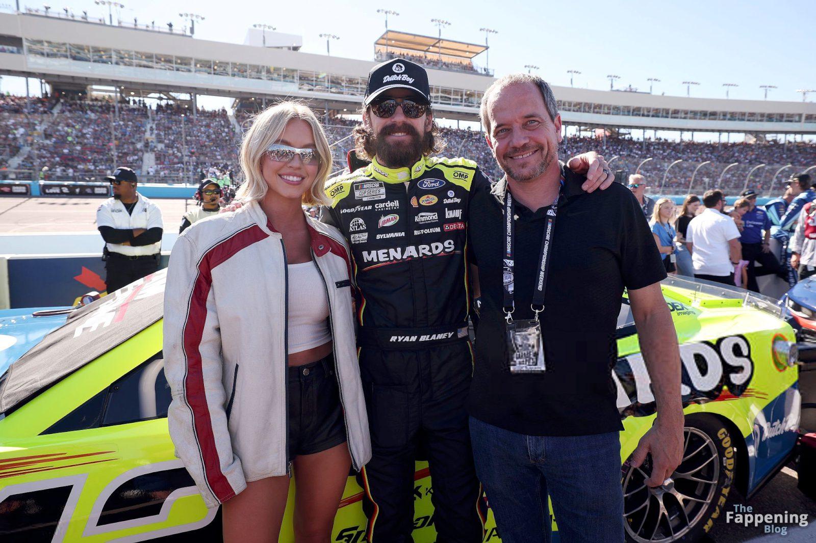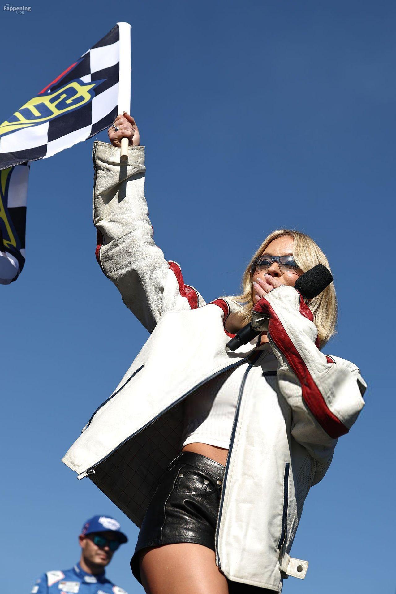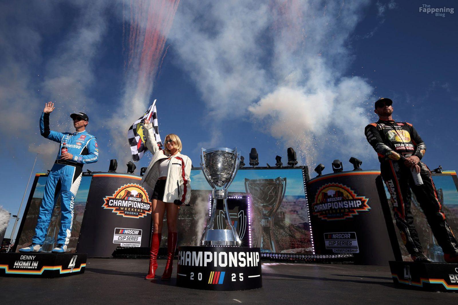 Сидни Суини была на чемпионате серии NASCAR Phoenix Cup в крошечных кожаных шортах, укороченном топе и красных ботинках.