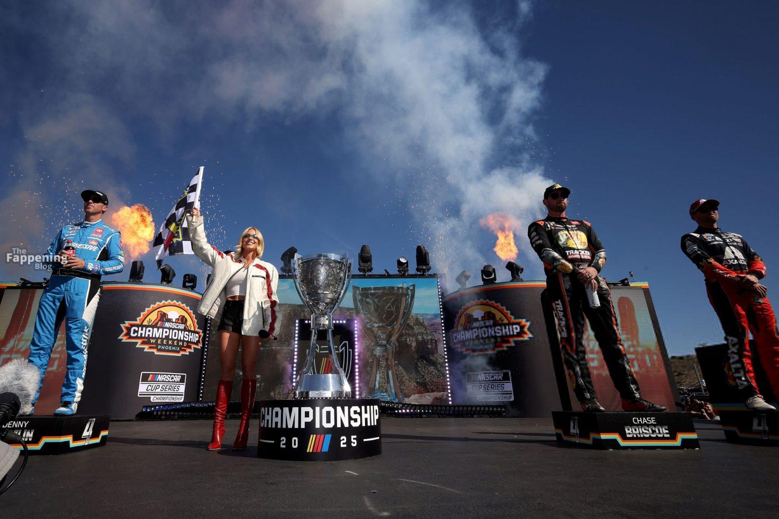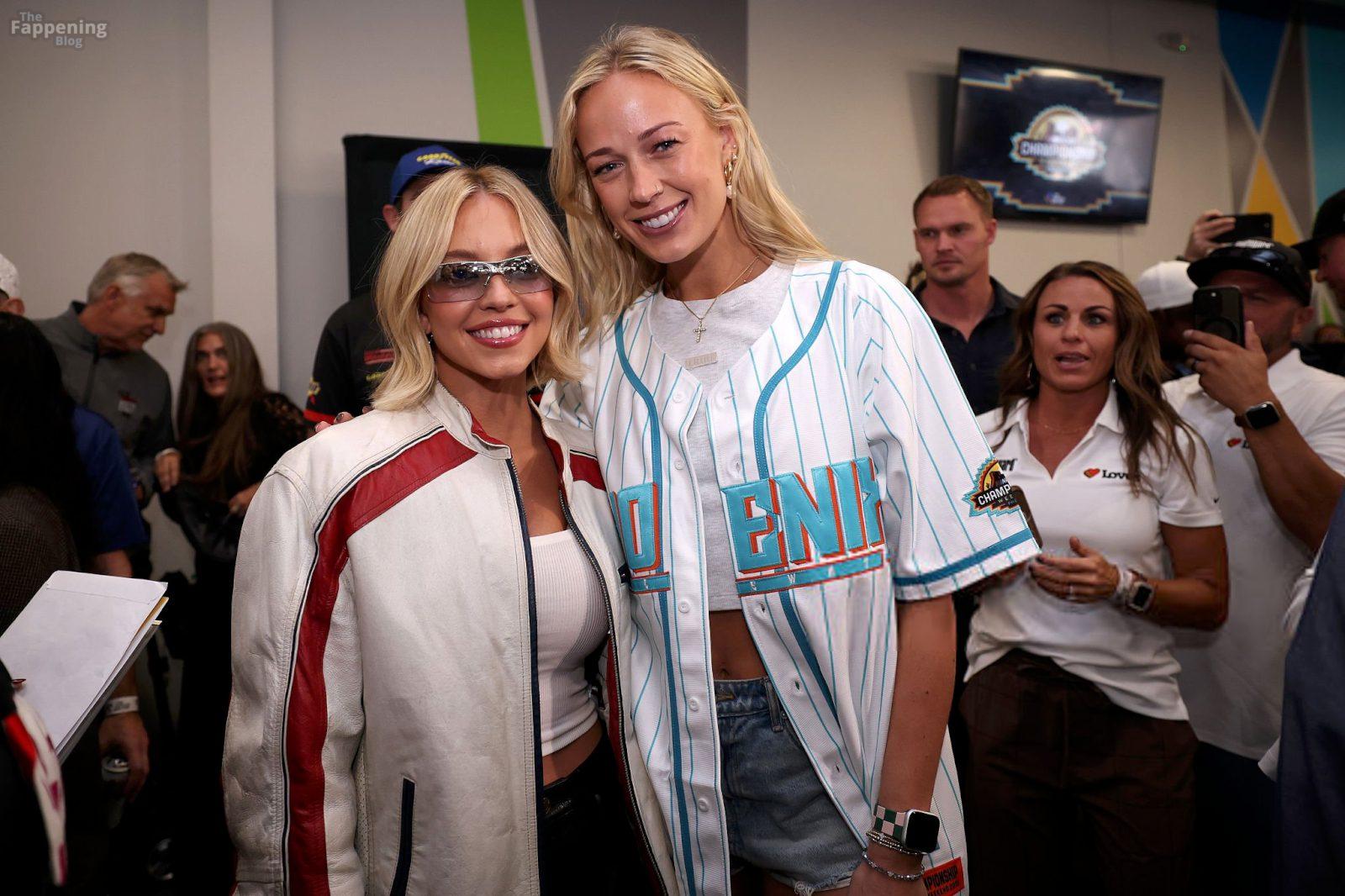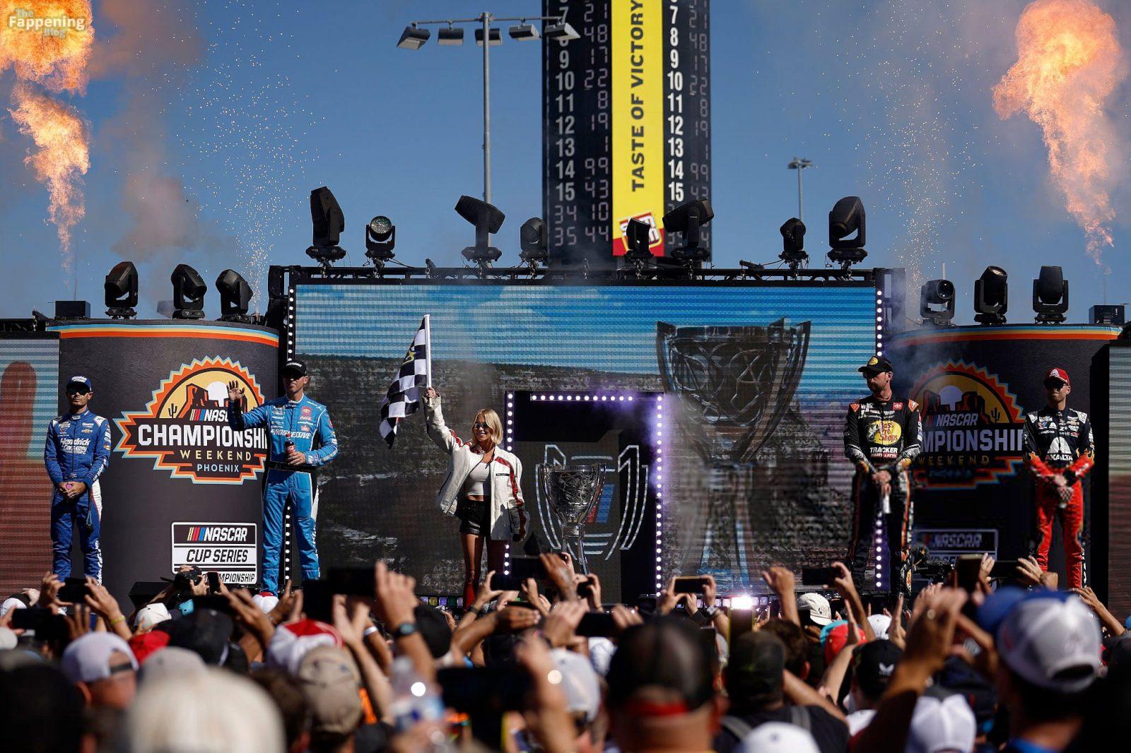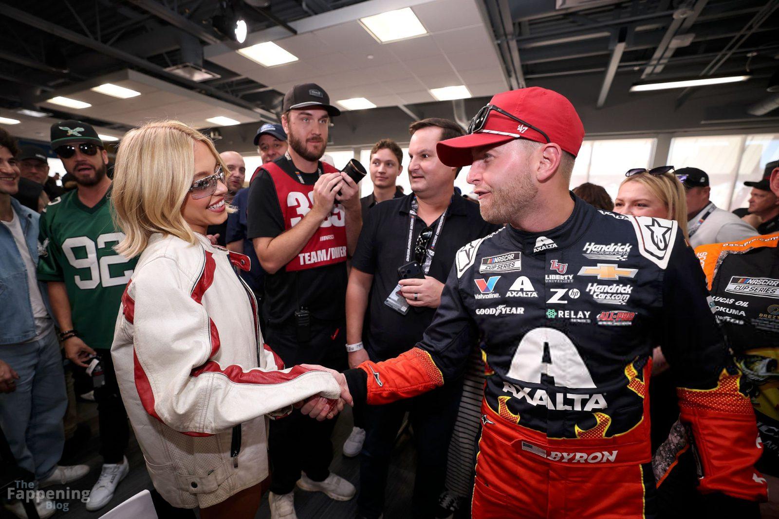 Сидни Суини была на чемпионате серии NASCAR Phoenix Cup в крошечных кожаных шортах, укороченном топе и красных ботинках.