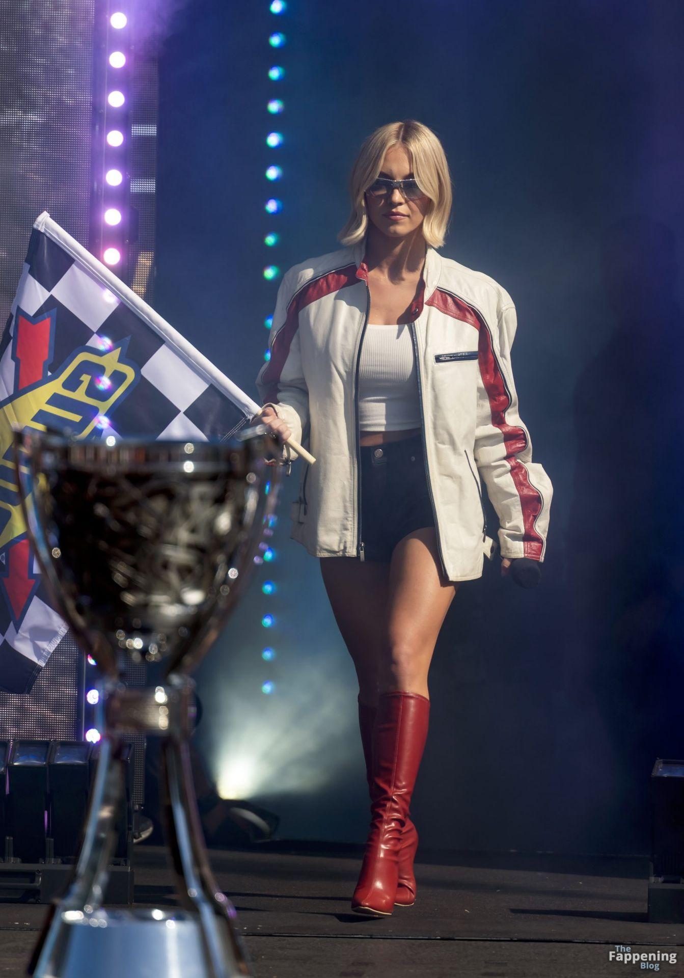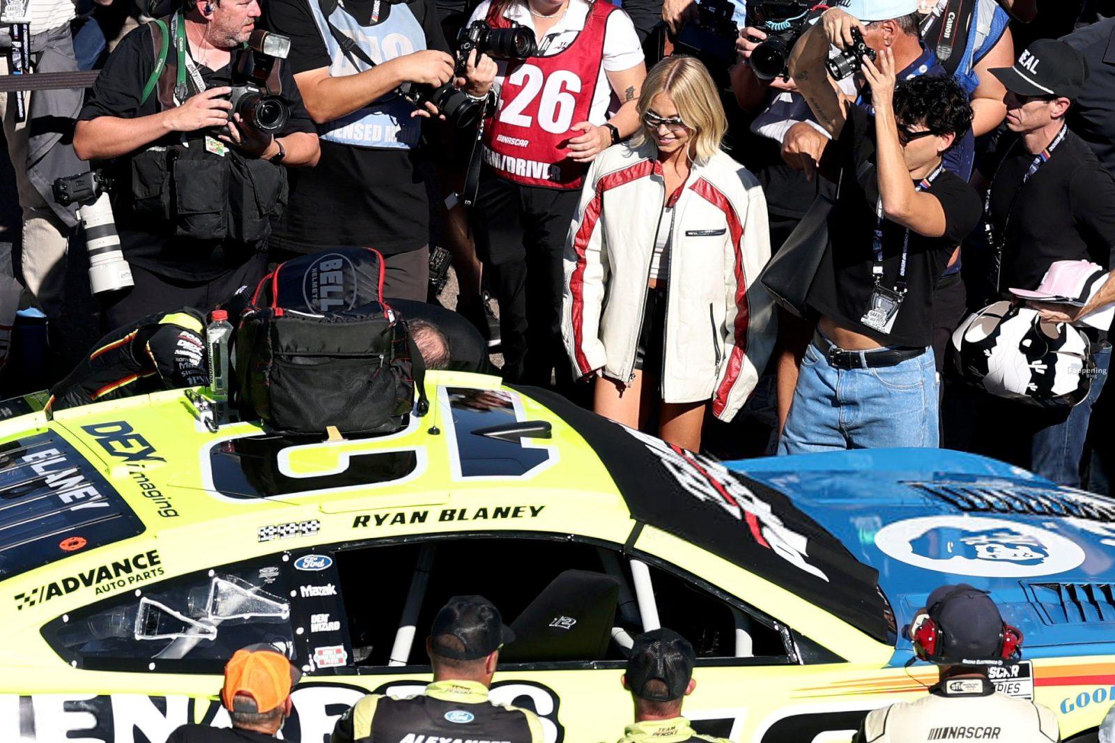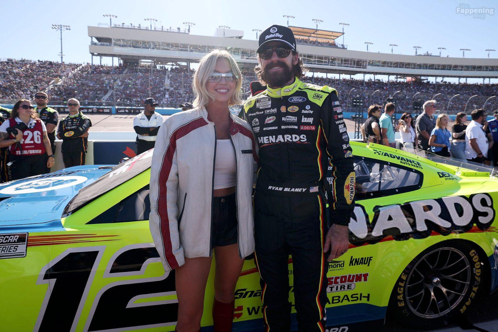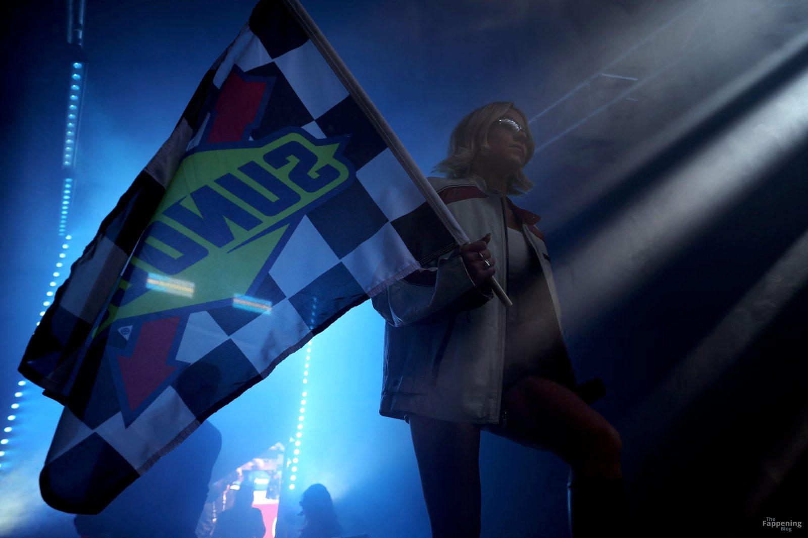 Сидни Суини была на чемпионате серии NASCAR Phoenix Cup в крошечных кожаных шортах, укороченном топе и красных ботинках.
