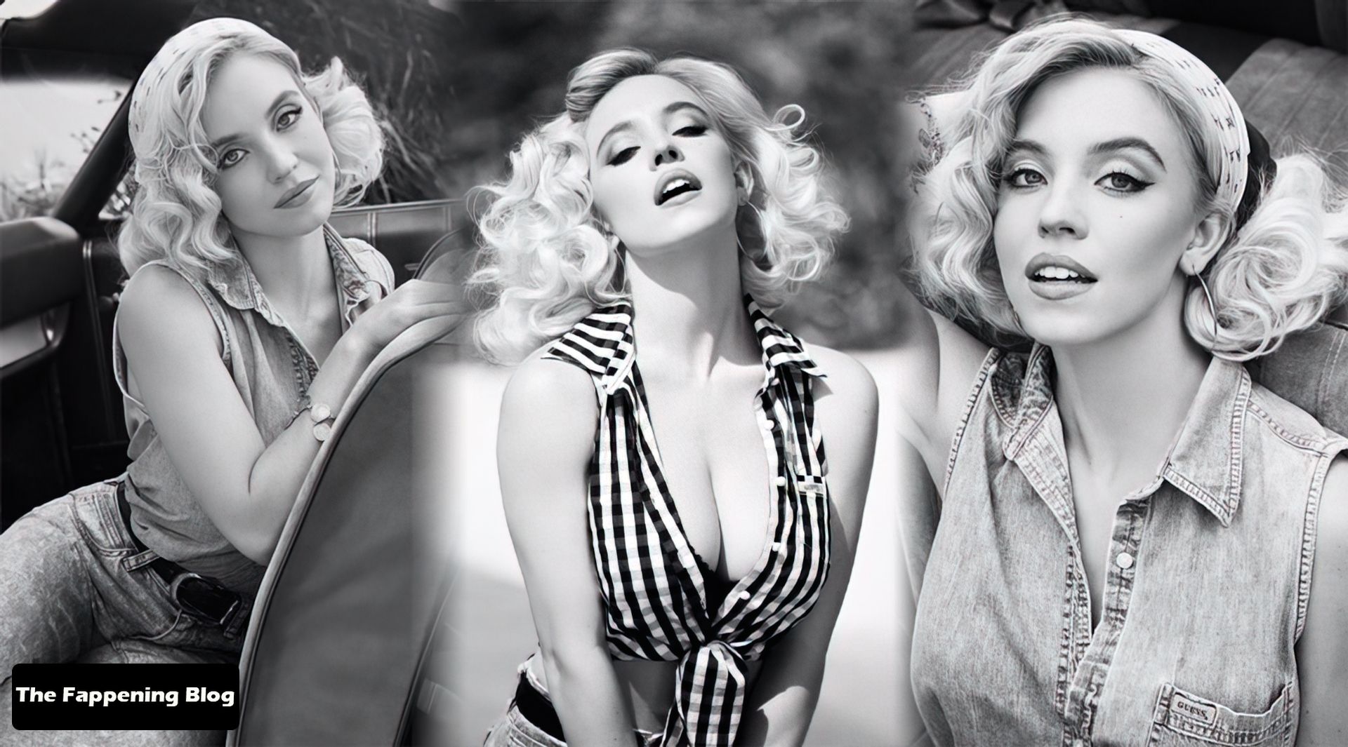 Звезда “Белого лотоса” Сидни Суини предстает здесь в образе Анны Николь Смит в качестве лица новой капсульной коллекции GUESS Originals (сентябрь 2021).