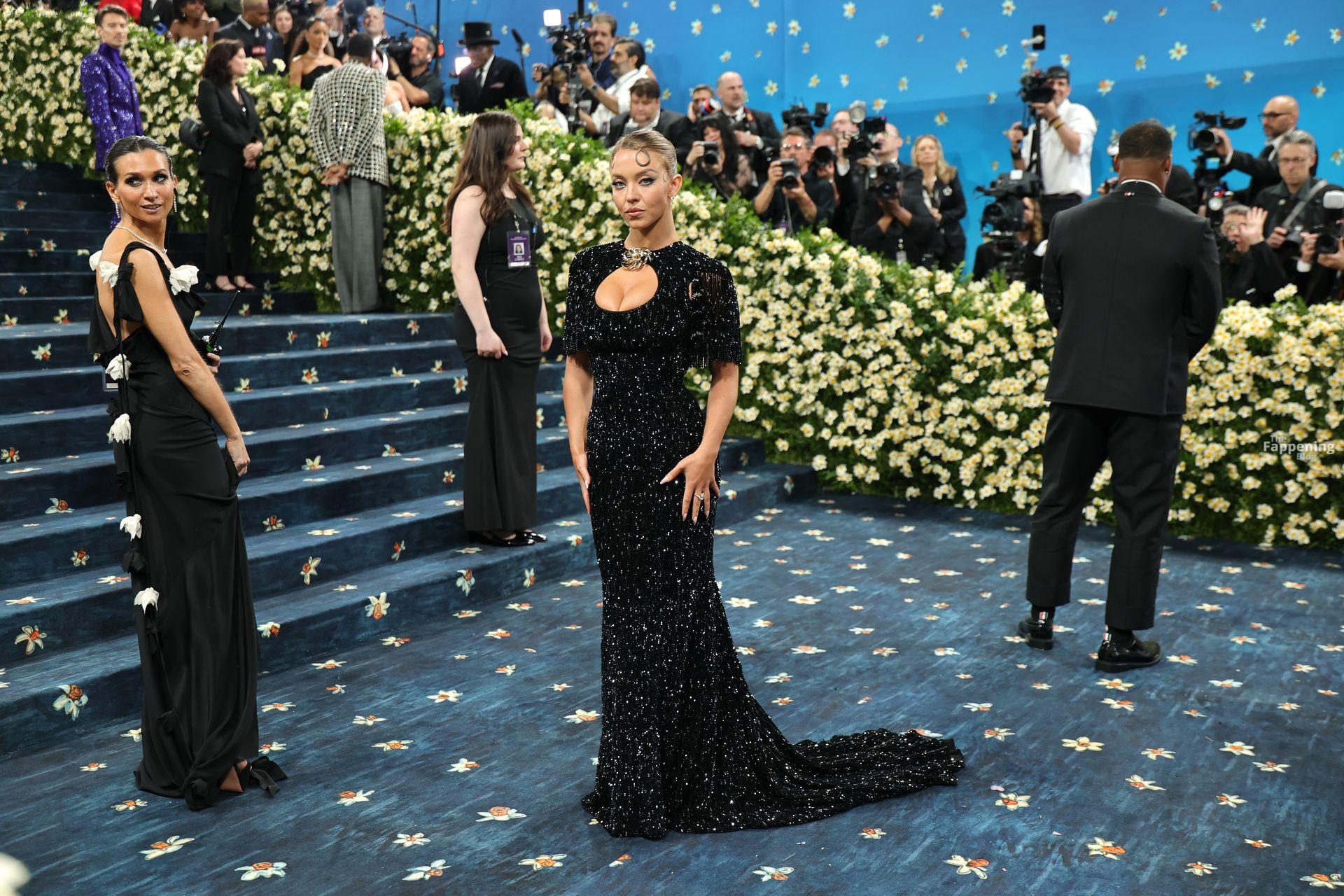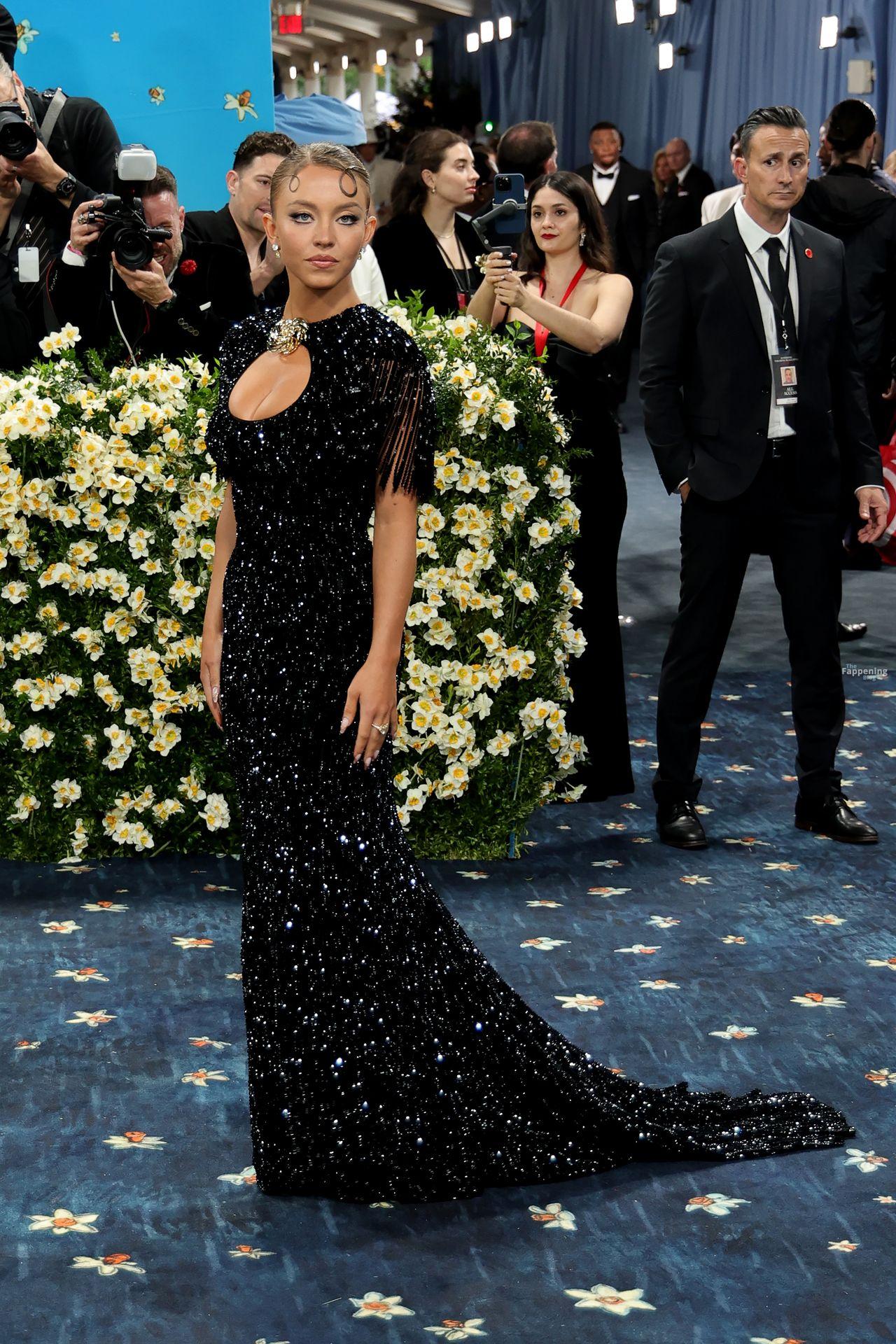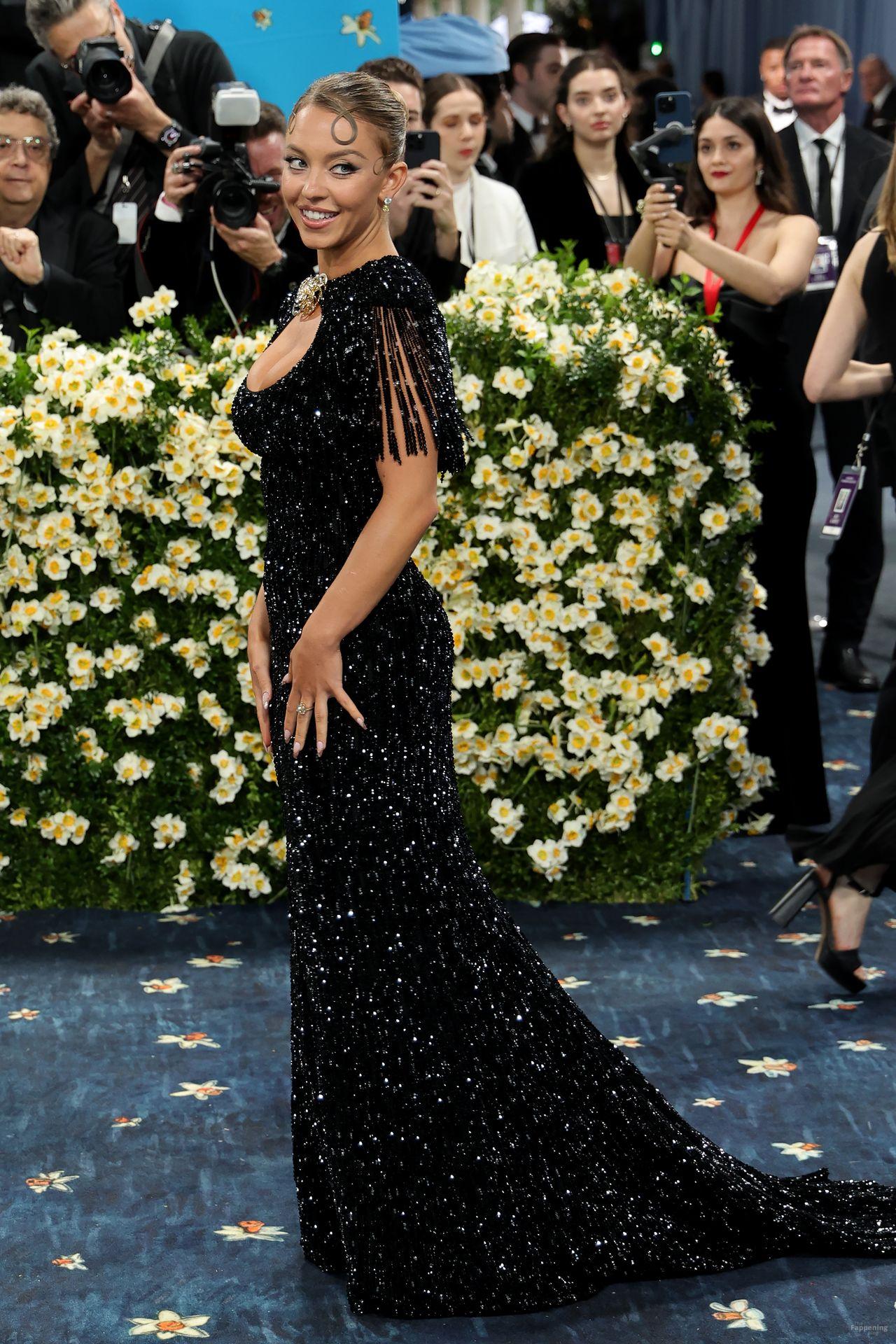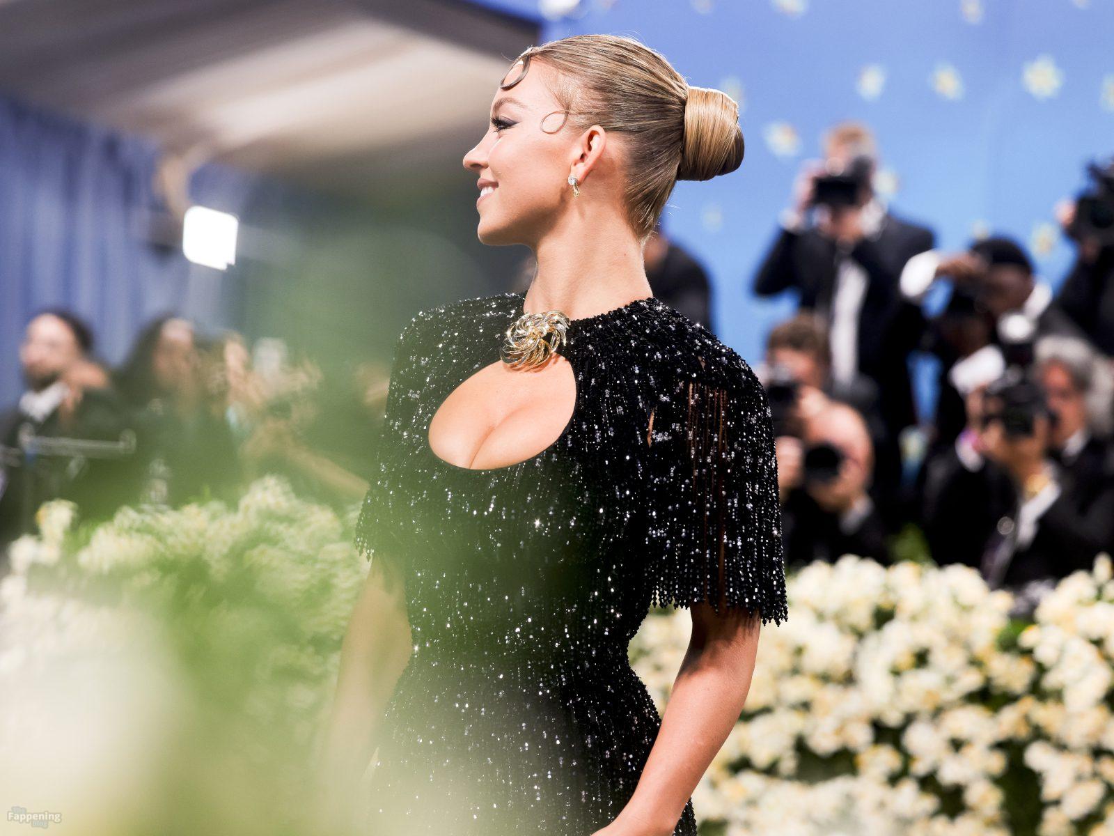 Звезда Fappening Сидни Суини появилась на Met Gala 2025, приехав в черном платье с пайетками, которое облегало её фигуру.