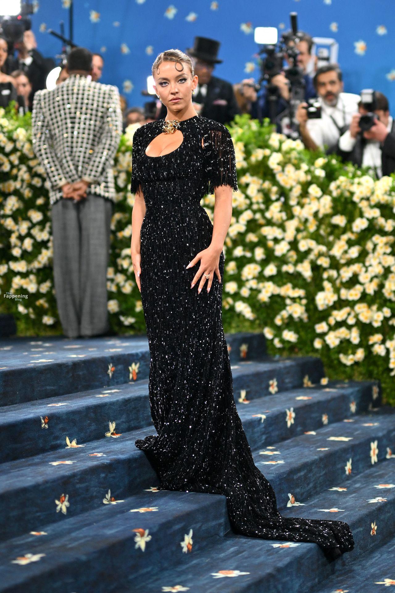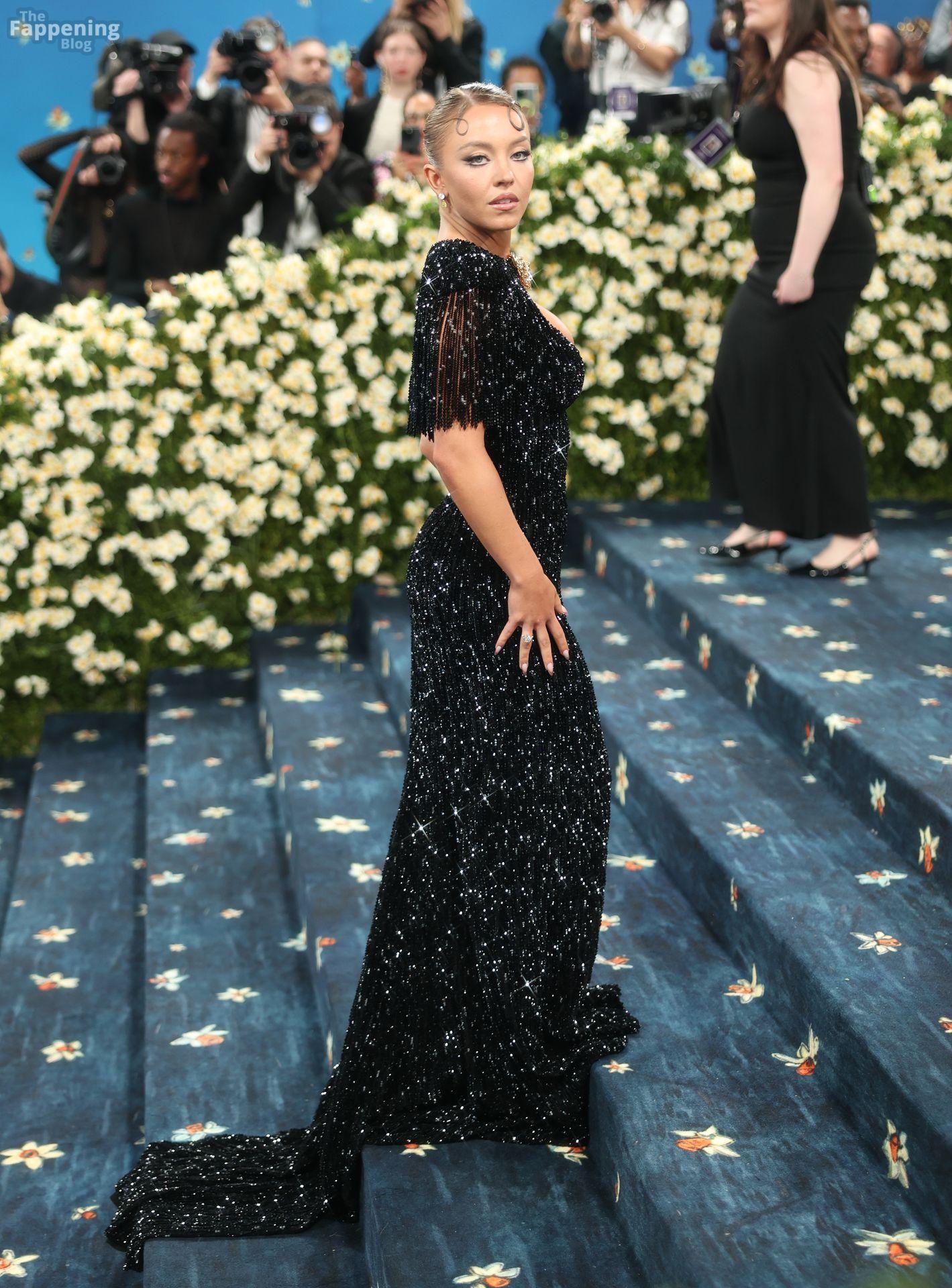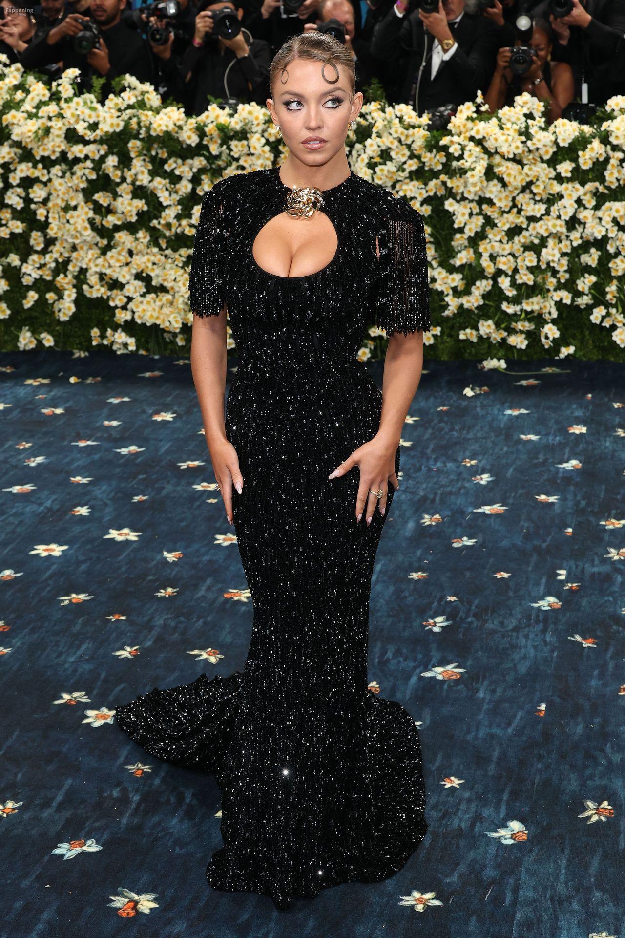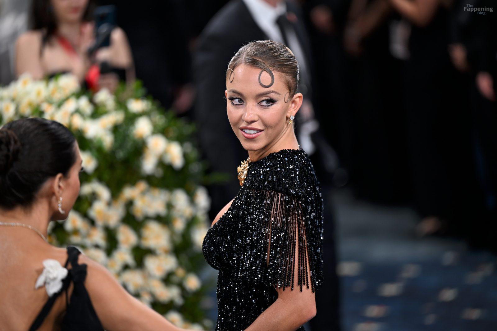 Звезда Fappening Сидни Суини появилась на Met Gala 2025, приехав в черном платье с пайетками, которое облегало её фигуру.