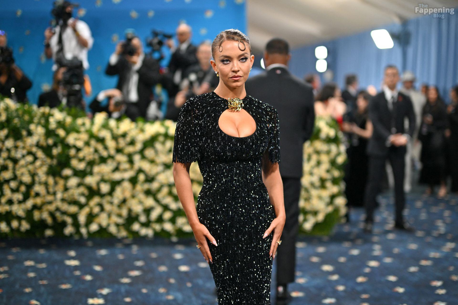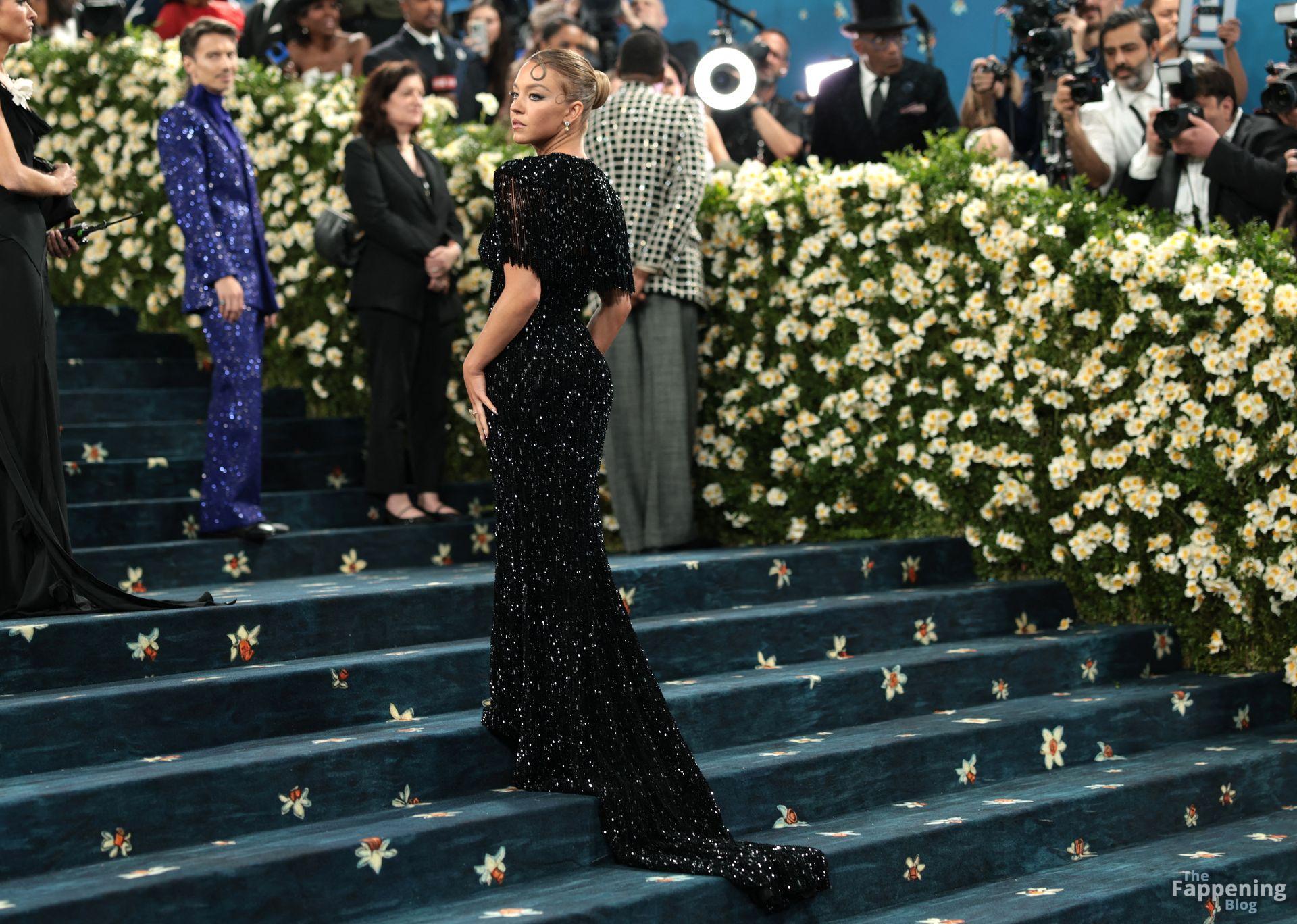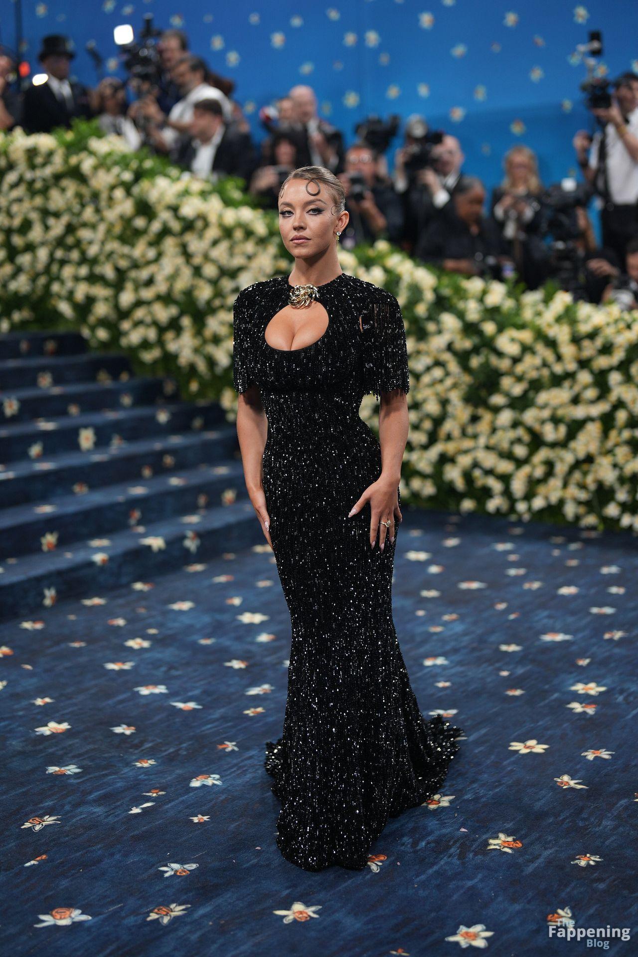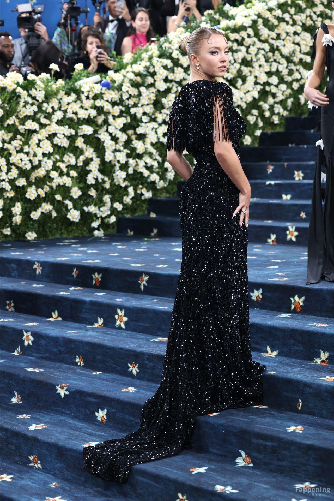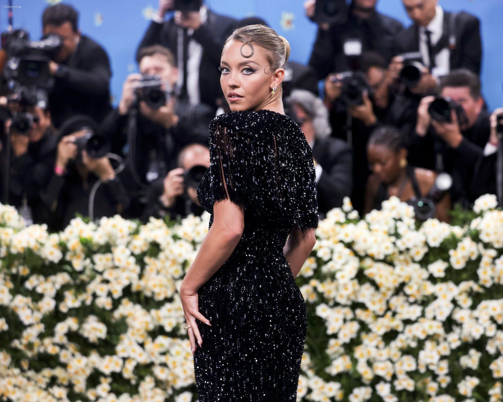 Звезда Fappening Сидни Суини появилась на Met Gala 2025, приехав в черном платье с пайетками, которое облегало её фигуру.