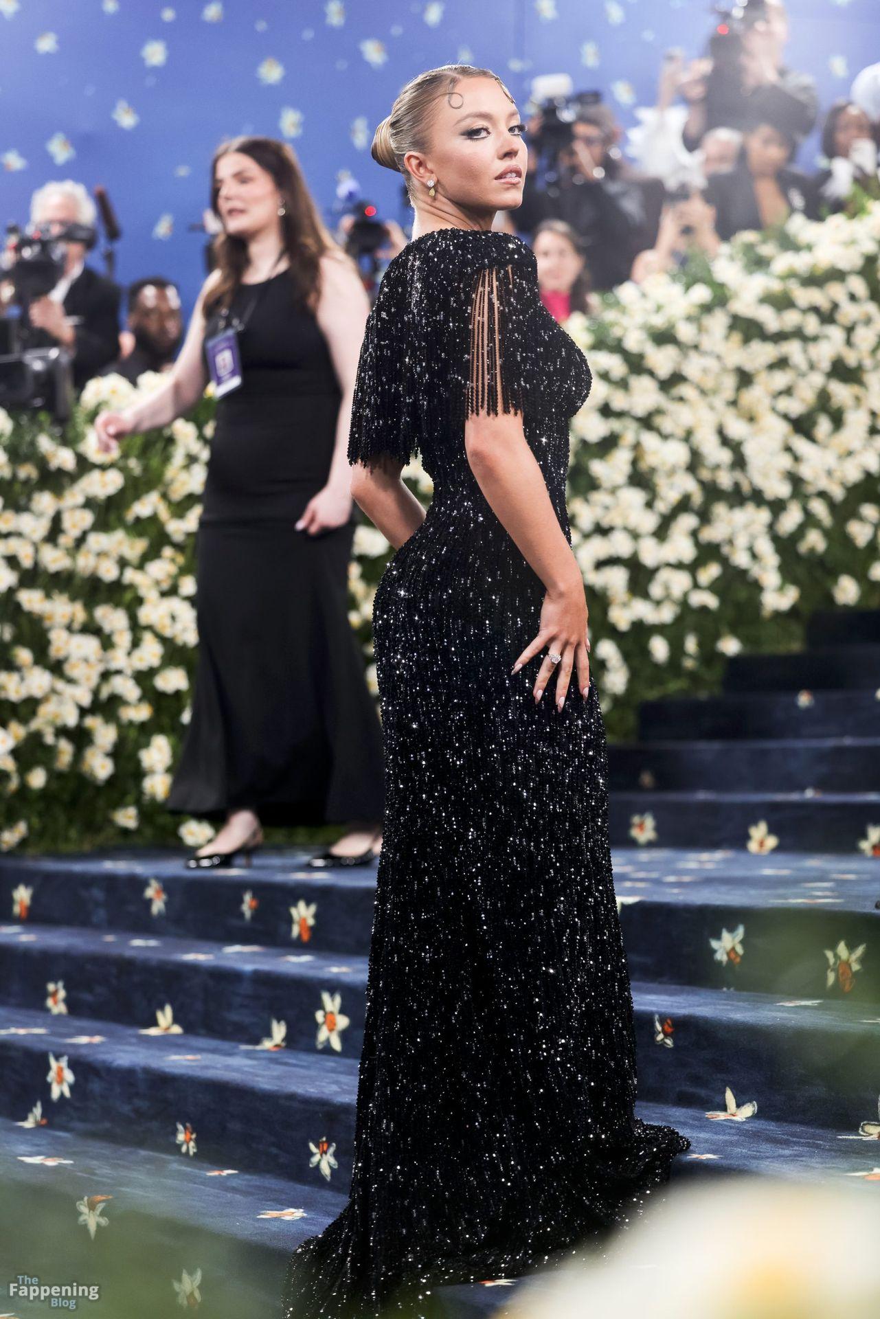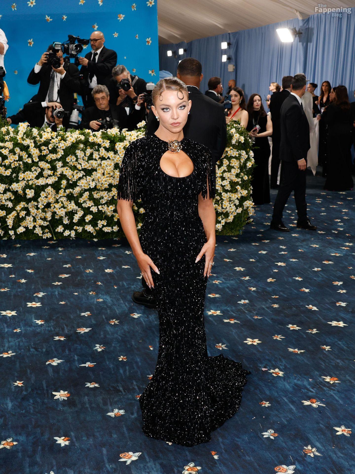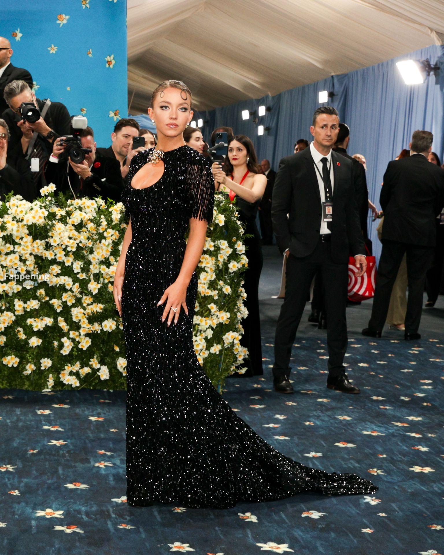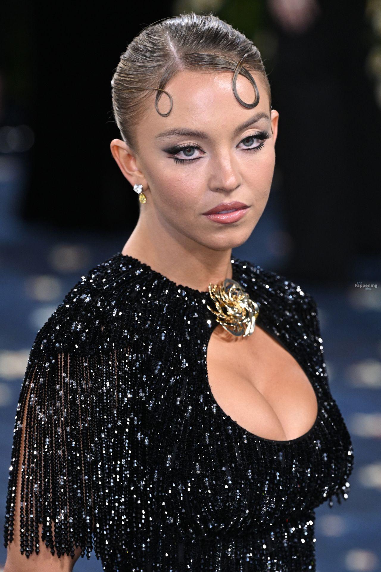 Звезда Fappening Сидни Суини появилась на Met Gala 2025, приехав в черном платье с пайетками, которое облегало её фигуру.