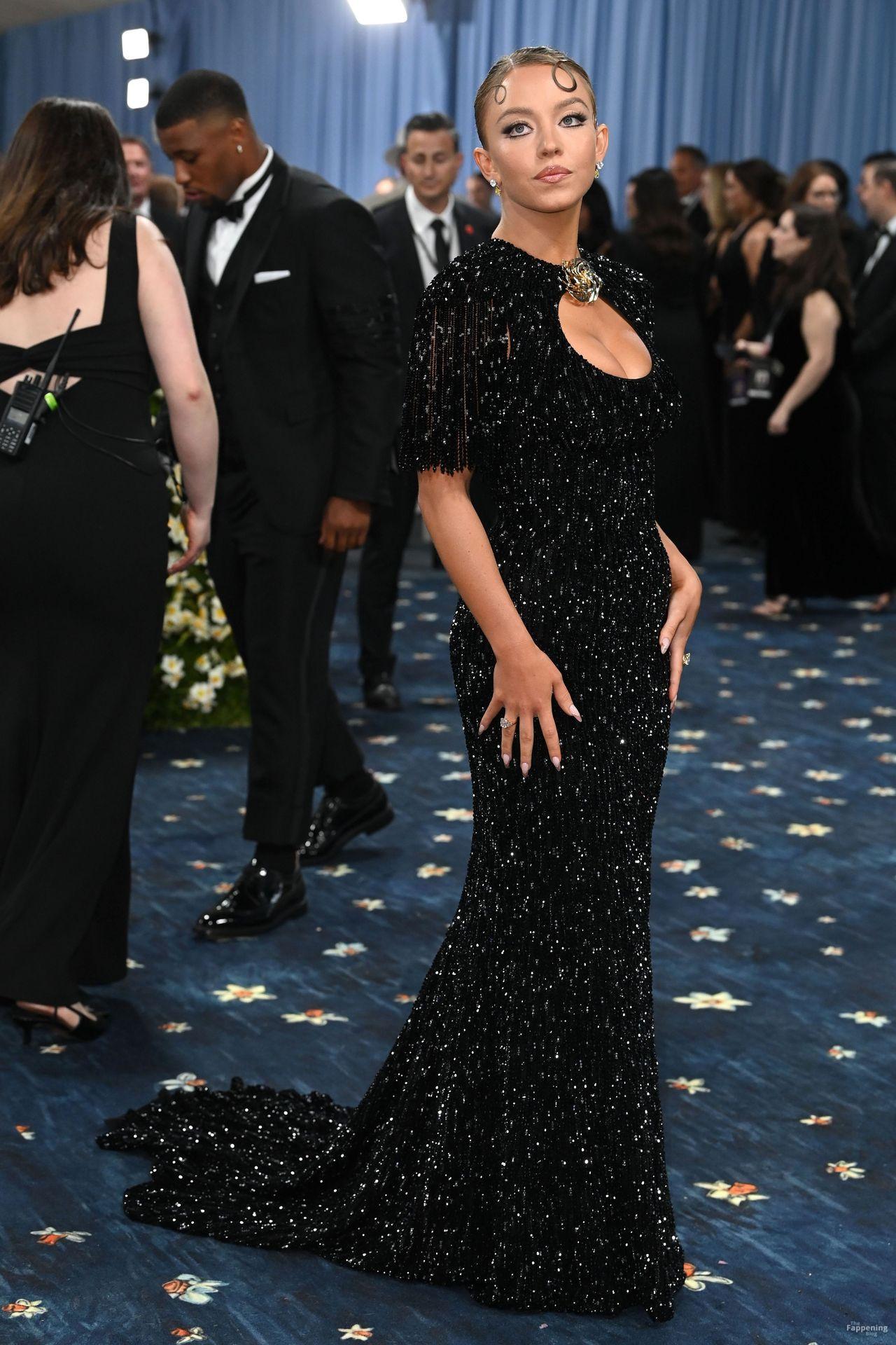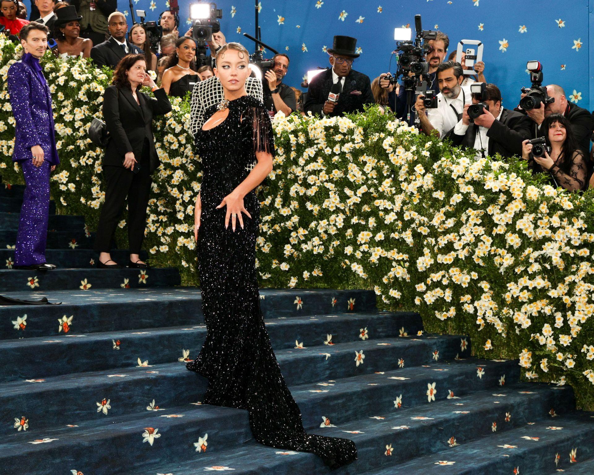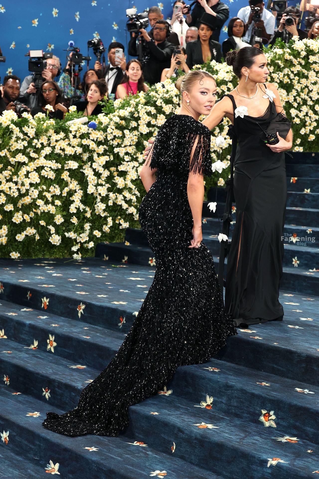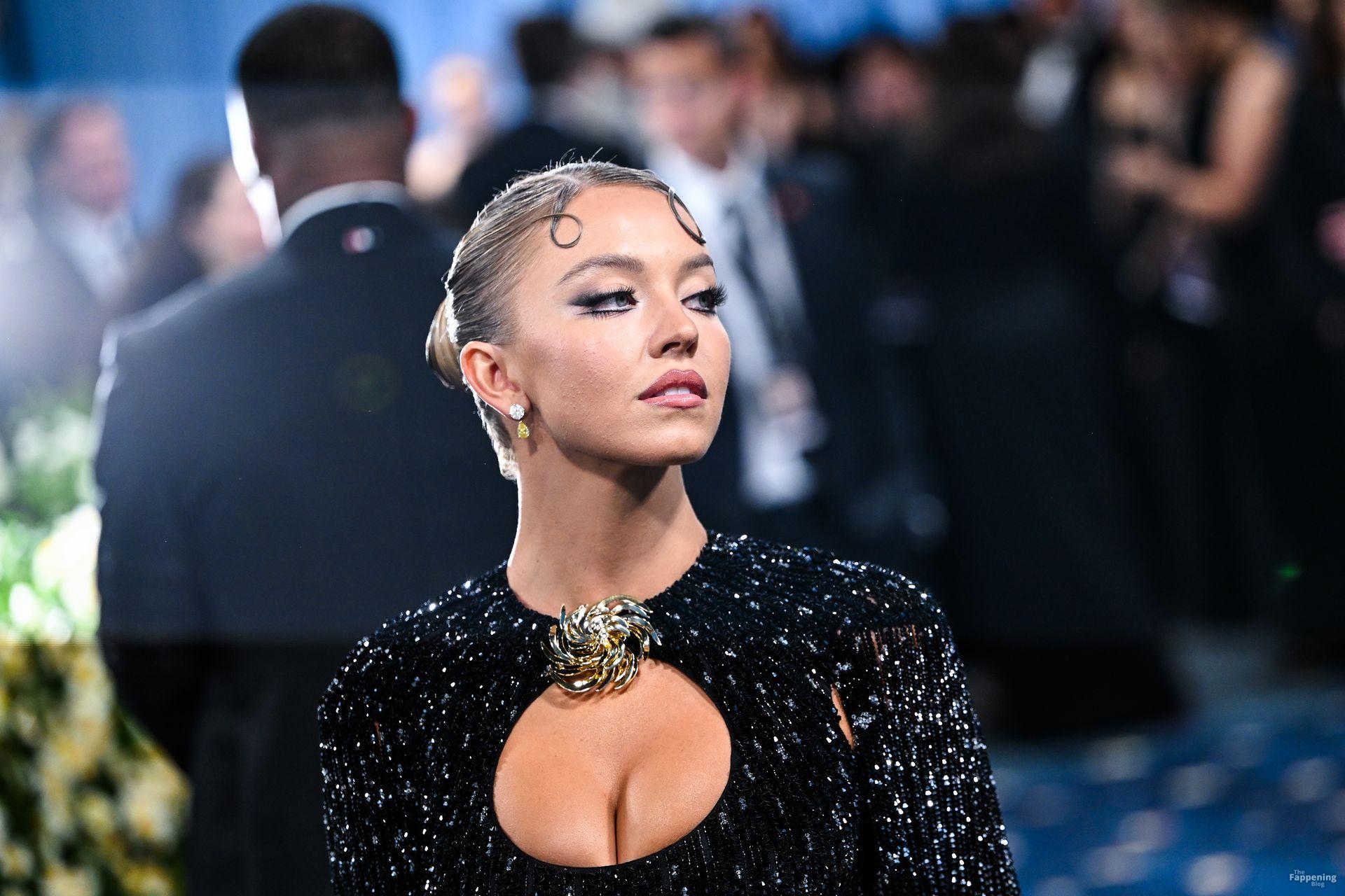 Звезда Fappening Сидни Суини появилась на Met Gala 2025, приехав в черном платье с пайетками, которое облегало её фигуру.