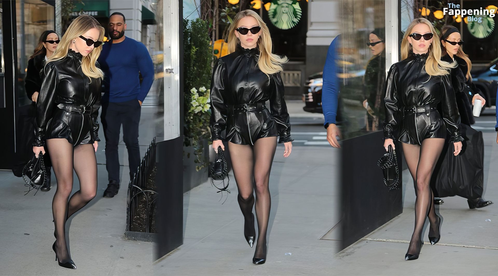 Сидни Суини поражает Нью-Йорк своими шикарными ногами в чулках и дерзким кожаным нарядом. Уверенно шагая по утренним улицам, её бесконечно длинные ноги становятся главным акцентом в эффектном чёрном кожаном образе, привлекая внимание на каждом шагу. Сидни направляется на репетицию Saturday Night Live к шоу в эти выходные.