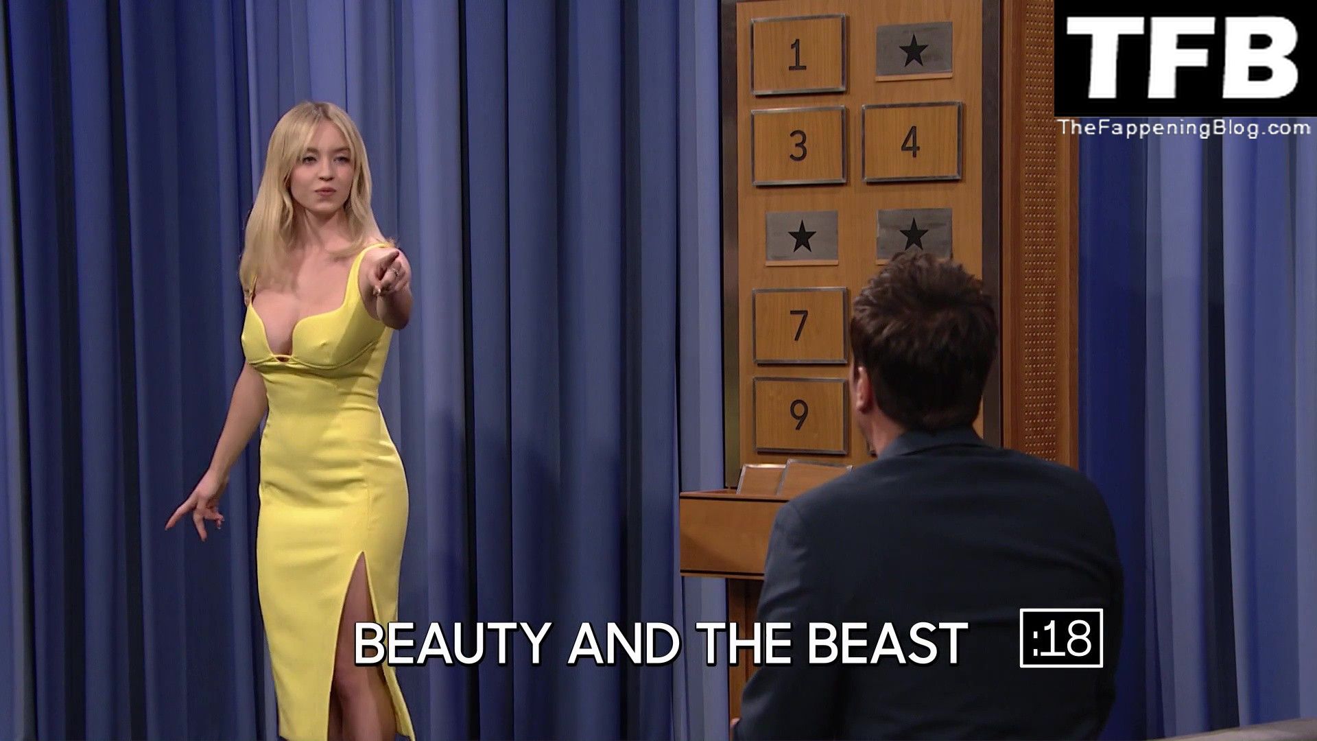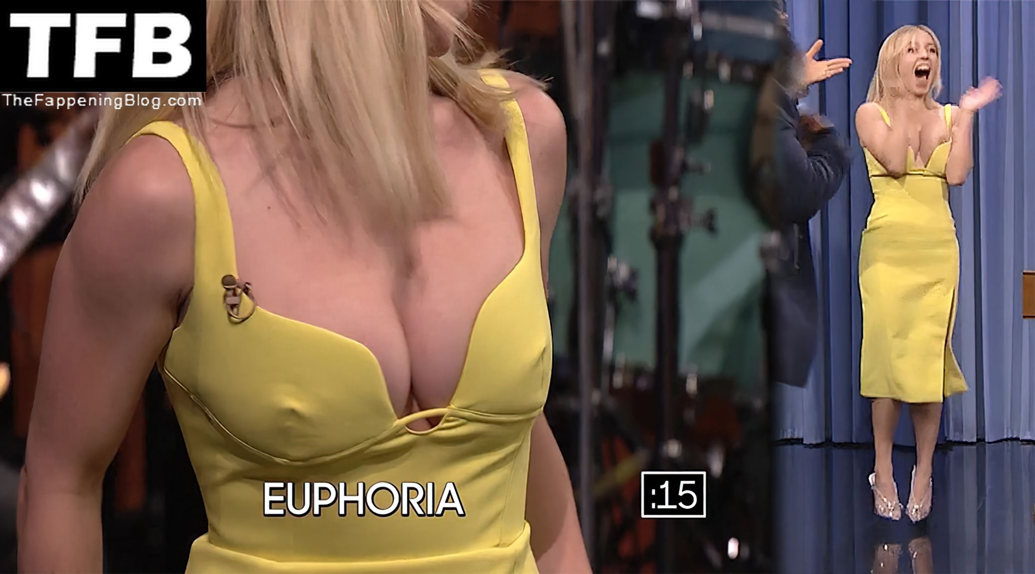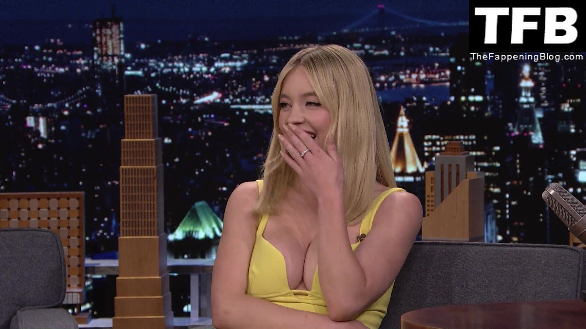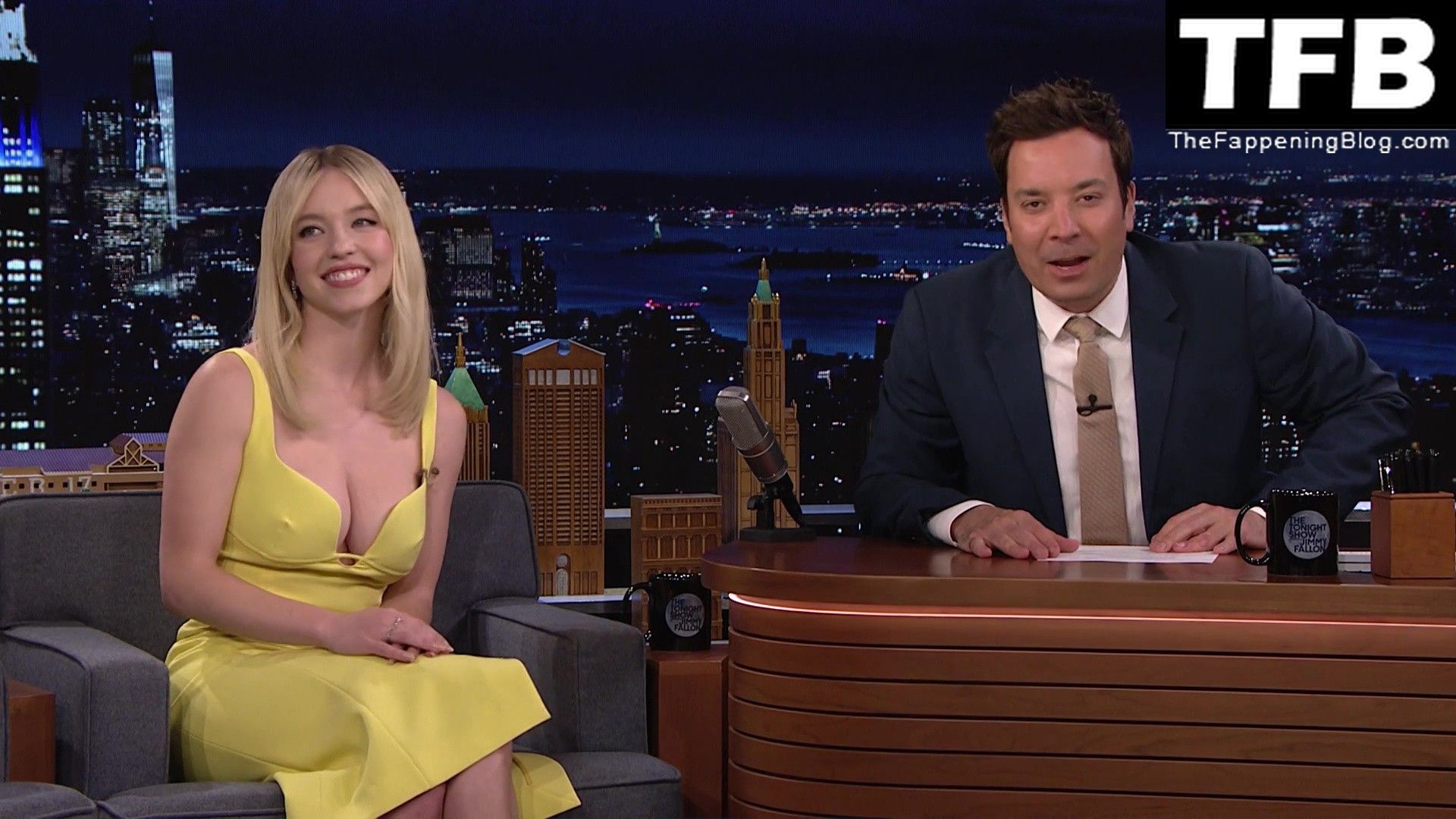 Сидни Суини демонстрирует свое сексуальное декольте и показывает сосок в шоу «The Tonight Show with Jimmy Fallon» (май 2022).