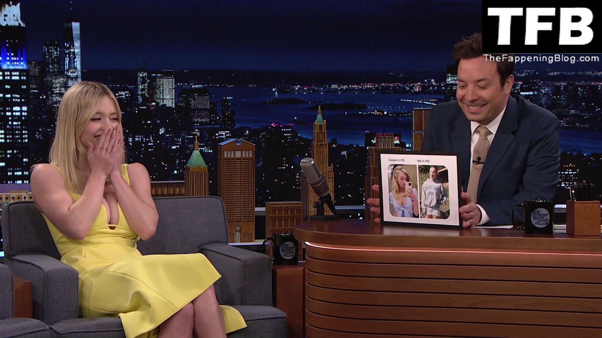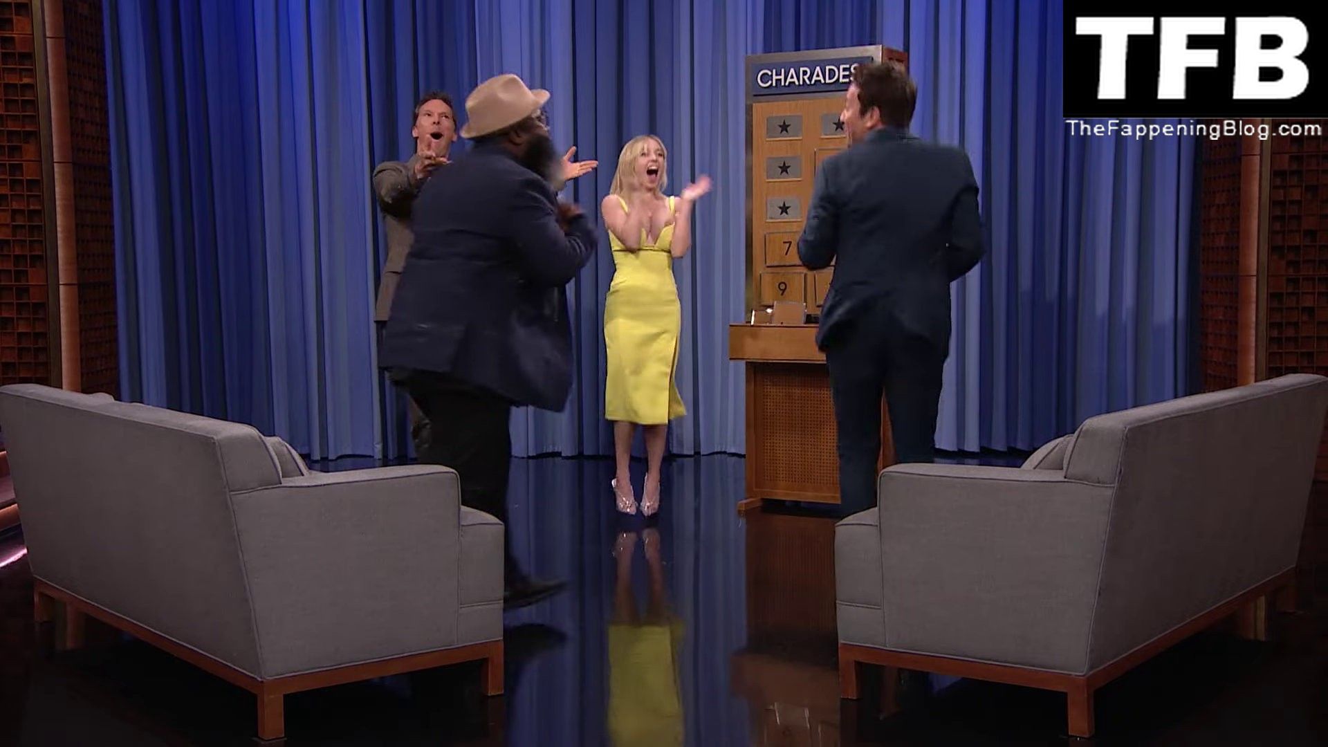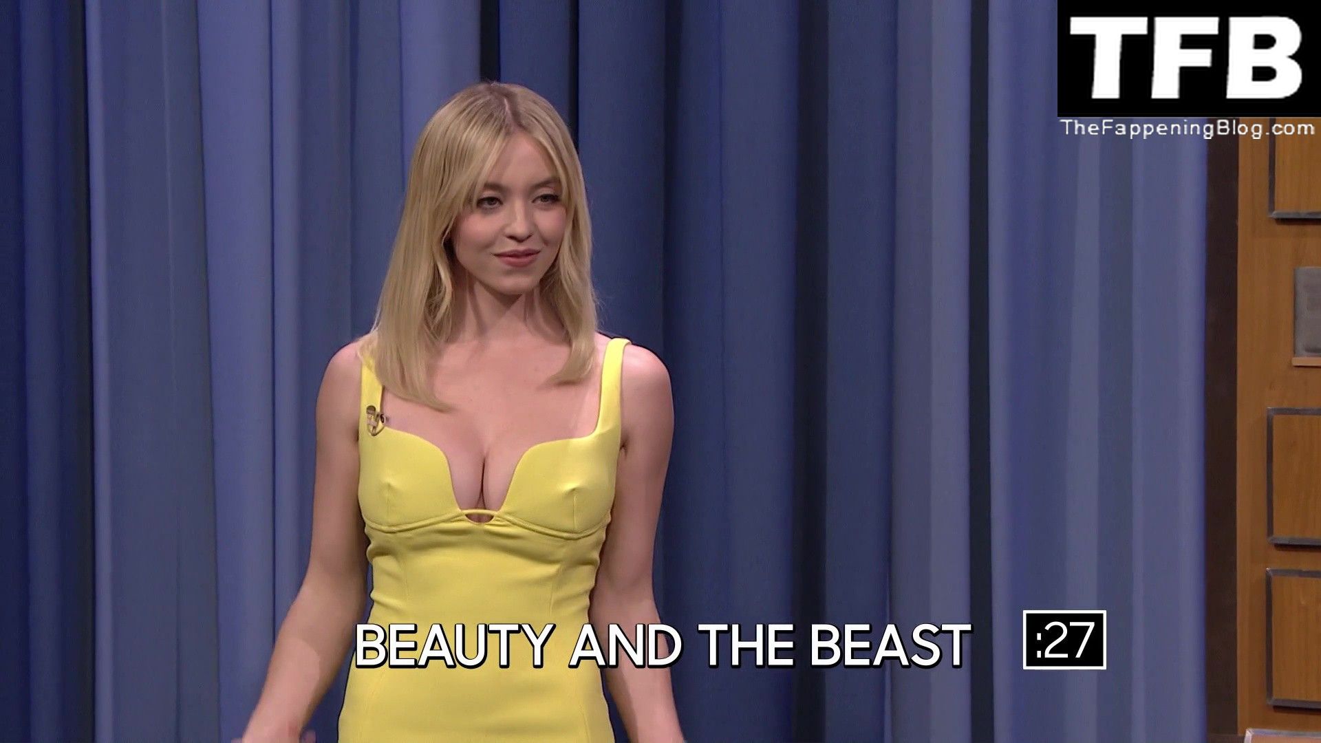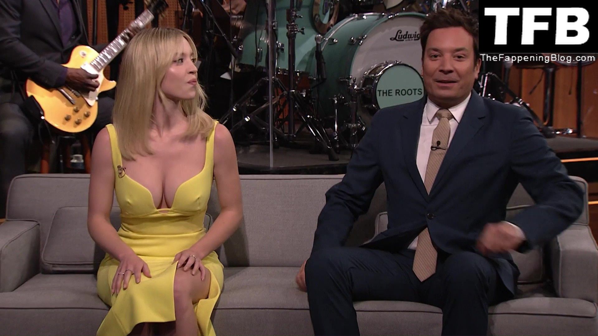 Сидни Суини демонстрирует свое сексуальное декольте и показывает сосок в шоу «The Tonight Show with Jimmy Fallon» (май 2022).