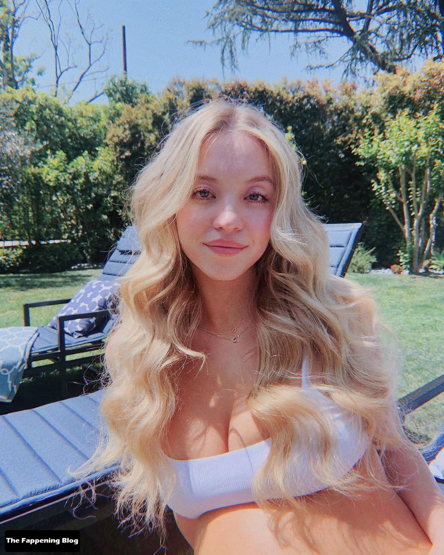 Актриса Сидни Суини демонстрирует свои большие натуральные груди на новых фотографиях в социальных сетях и коллажах ниже.