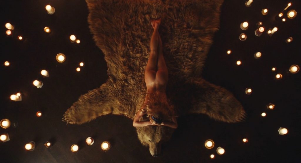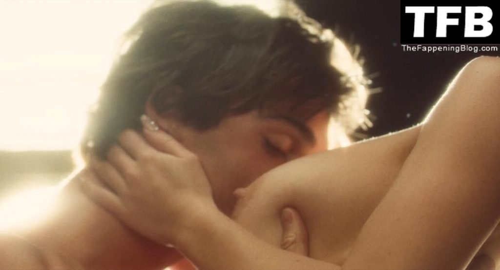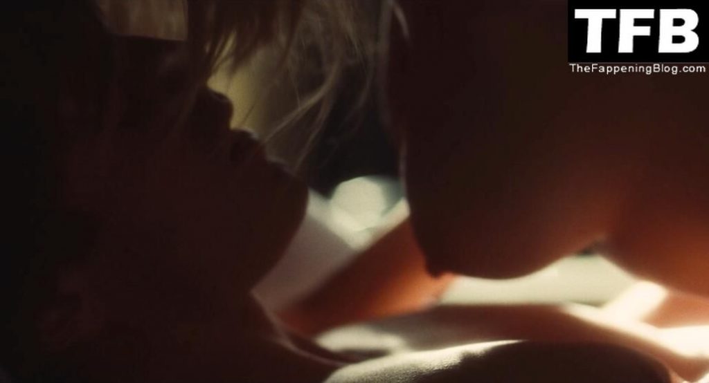 Сидни Суини демонстрирует грудь и ягодицы в монтаже, где она и парень занимаются сексом: сначала в подсвеченной сзади сцене на кровати, где Сидни сверху, затем Сидни лежит голой на животе на ковре у камина, затем Сидни сидит у него на коленях, когда они занимаются сексом в том же месте.