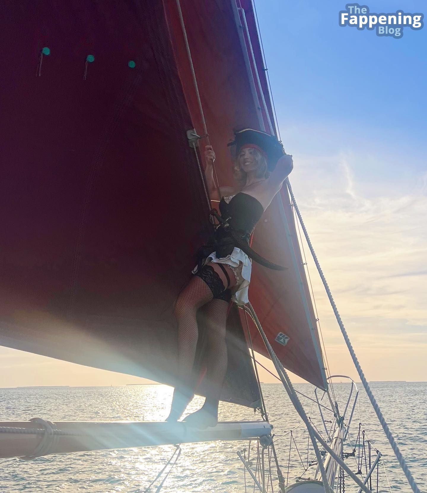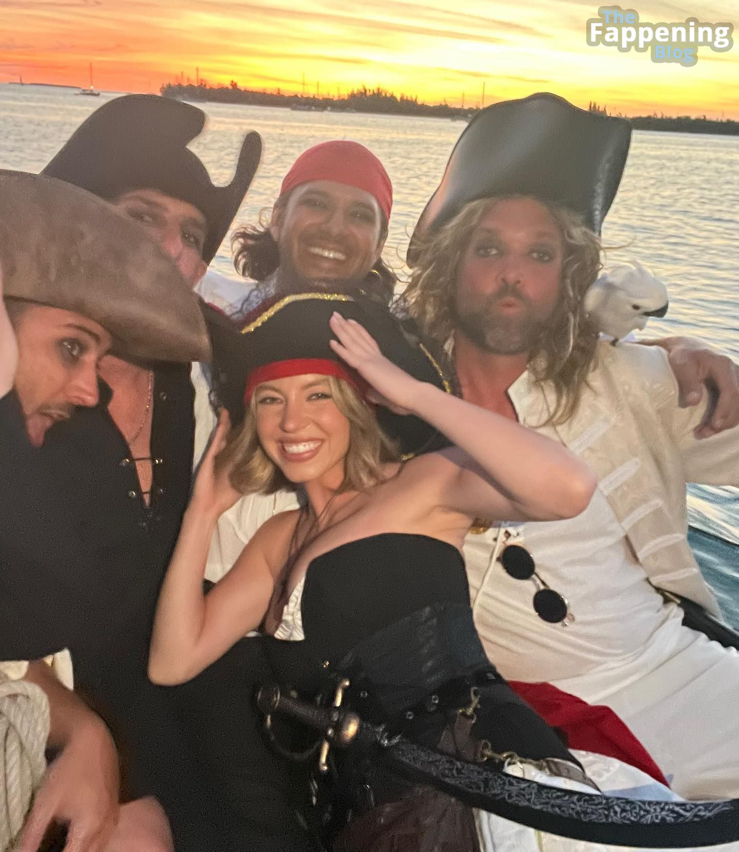 26-летняя актриса Сидни Суини отлично провела время со своей компанией на настоящем пиратском корабле в эти выходные! Для карнавальной вечеринки Сидни выбрала сексуальный пиратский наряд с короткой юбкой и черными чулками из откровенного магазина. А чтобы добавить себе привлекательности, она позировала с саблей в руке, демонстрируя нижнее бельё под юбкой!