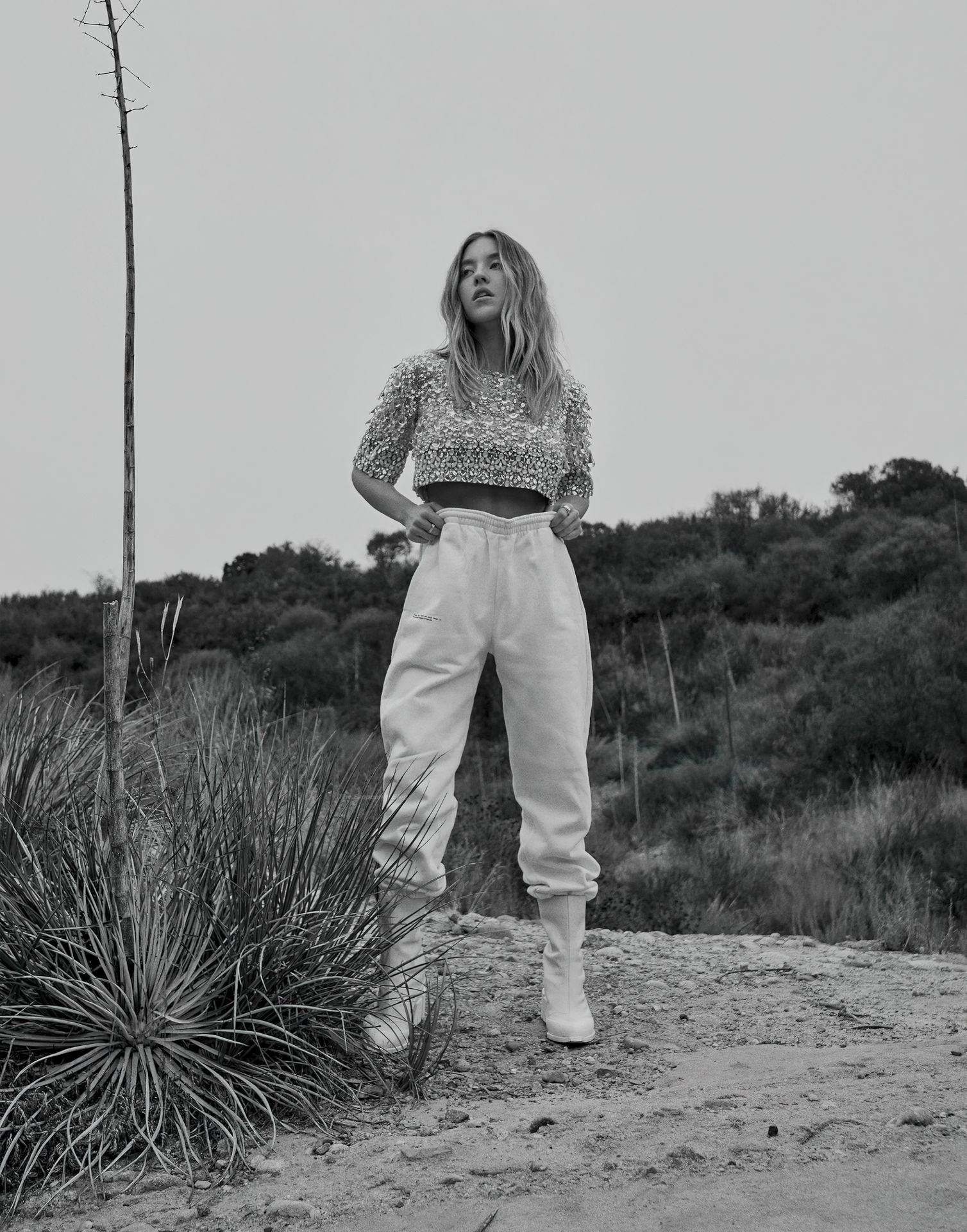 Модель и актриса Сидни Суини демонстрирует свою красивую большую грудь в откровенном белом топе на фотосессии Кристиана Хёгстедта для февральского выпуска Sbjct Journal 2021 года.
