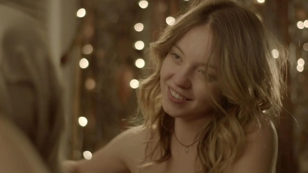 Некоторые слегка обнажённые фото (скриншоты), гифка и видео с Сидни Суини из Вайкс (2017). Сексуальная Сидни Суини (в роли Иды) снимает верхнюю одежду. Камера зафиксирована на её гладкой спине, поэтому мы никогда не видим её грудь. Надеемся, что скоро сможем увидеть эту красотку обнажённой!