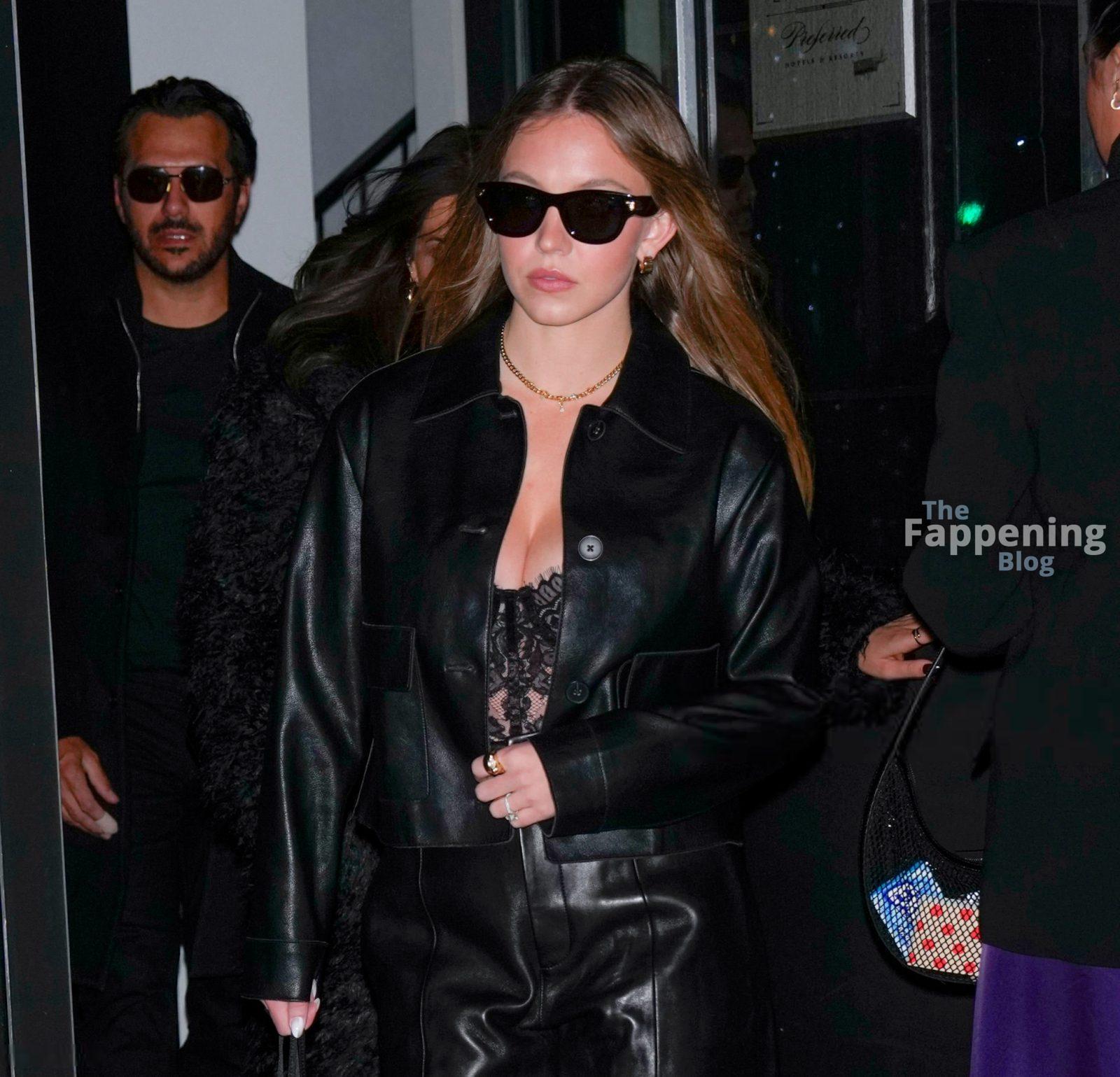 Звезда Fappening Сидни Суини замечена в сексуальном черном кружевном корсете и коже, подчеркивающих её фигуру и пышное декольте.