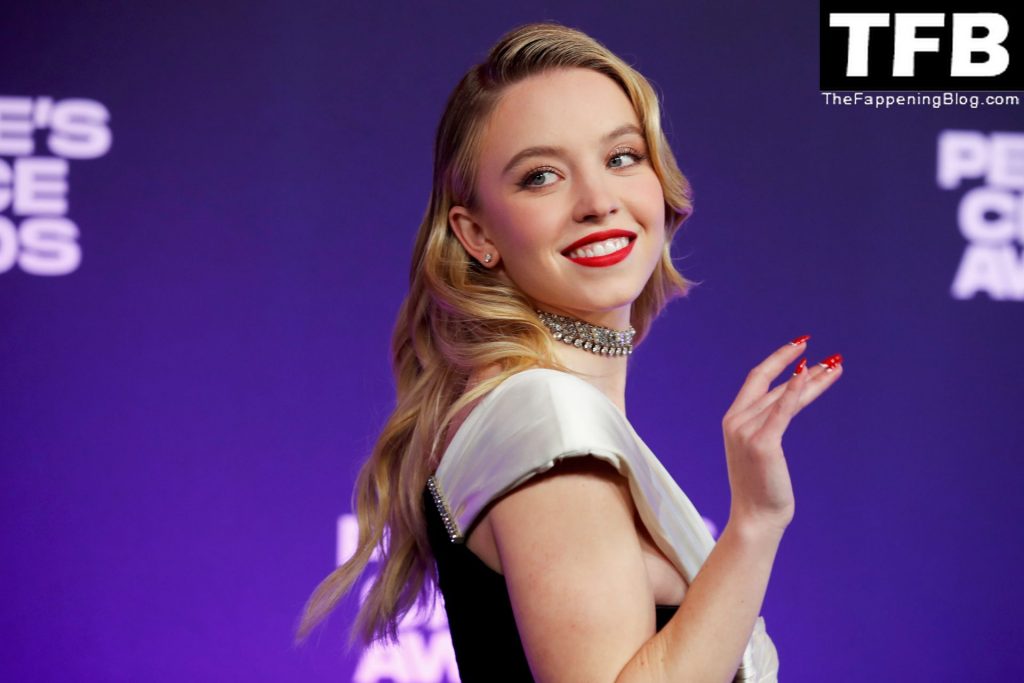 “Актриса сериала “Эйфория” Сидни Суини прибывает на 47-ю церемонию People’s Choice Awards в ангаре Баркер в Санта-Монике, 12/07/2021.