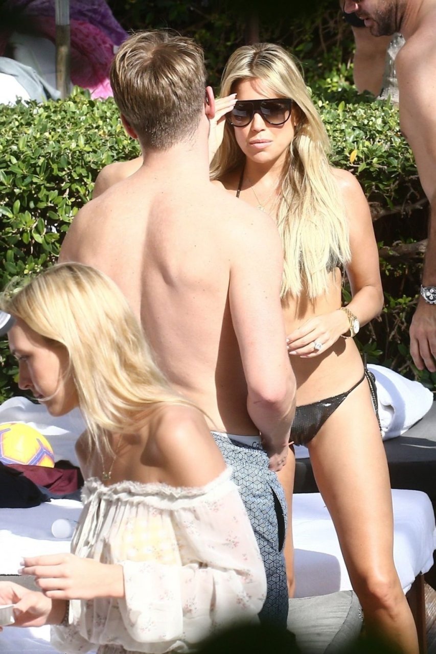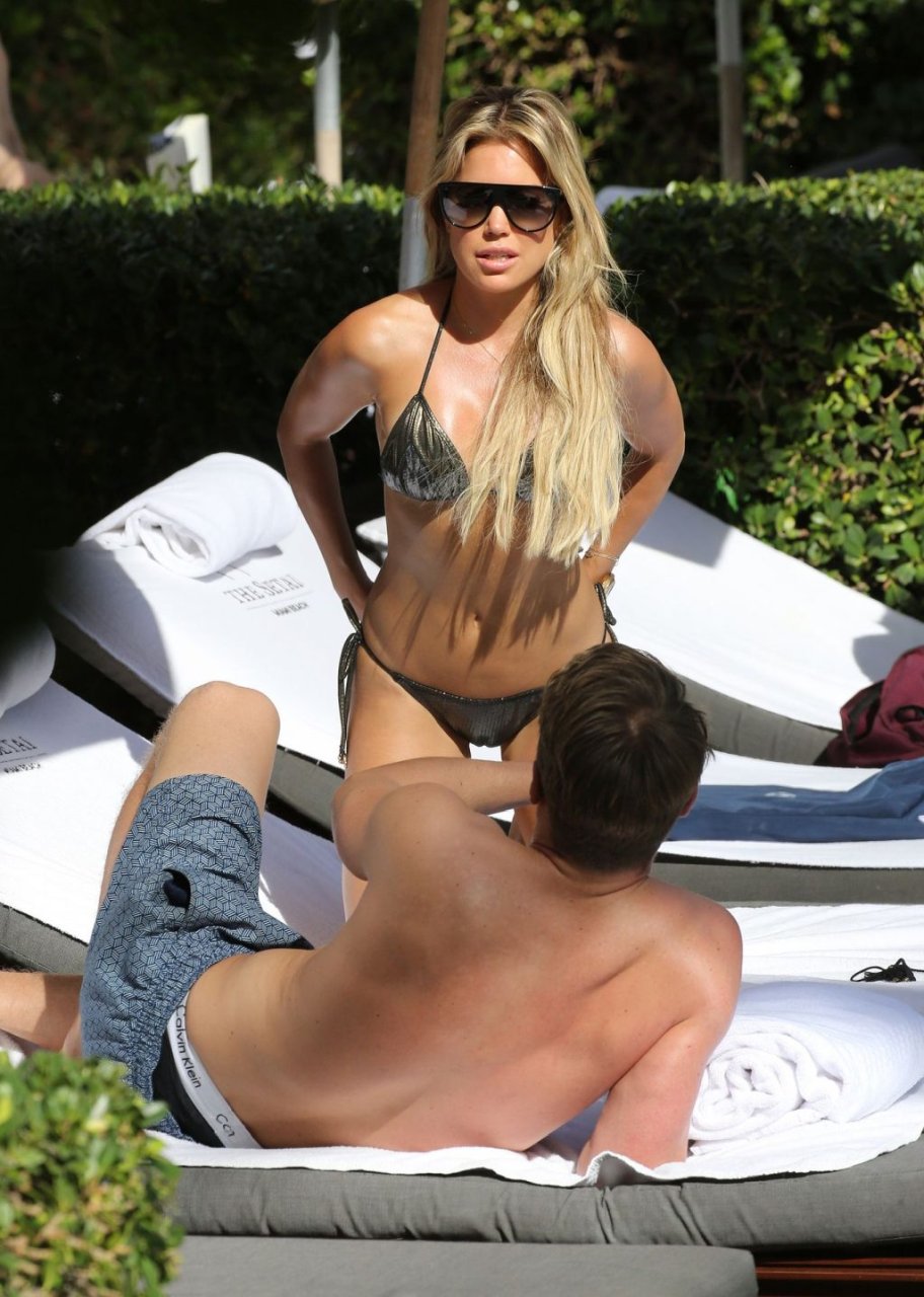 Ранее жена Рафаэля Ван дер Ваарта выглядела влюблённой, наслаждаясь отдыхом с бойфрендом Бартом во время отпуска в Майами, 01/03/2019. Сильви Мейс показала бывшему звезде Тоттенхэма, что он упускает, когда дефилировала вдоль бассейна отеля в откровенном двухцветном бикини с узором.