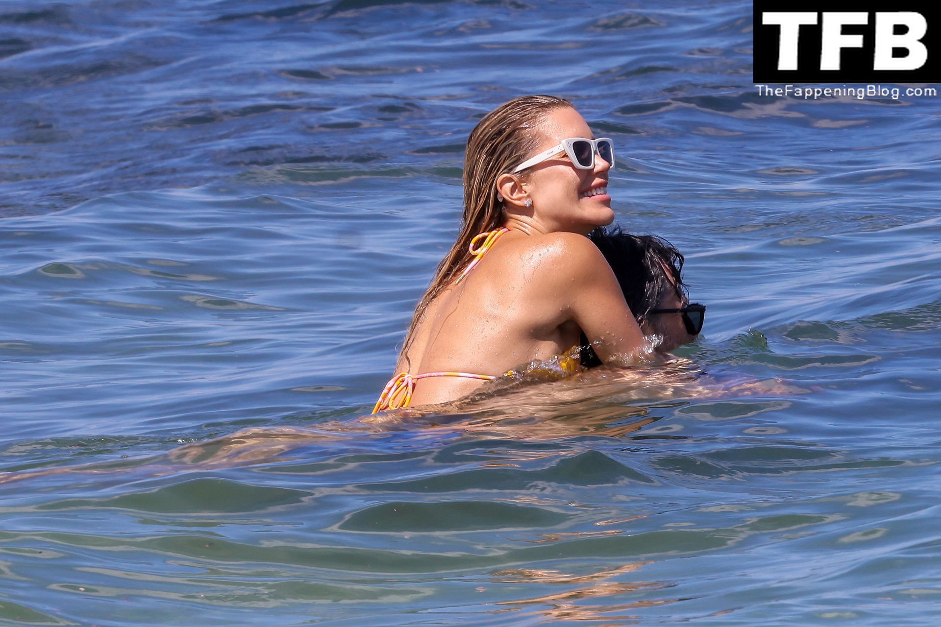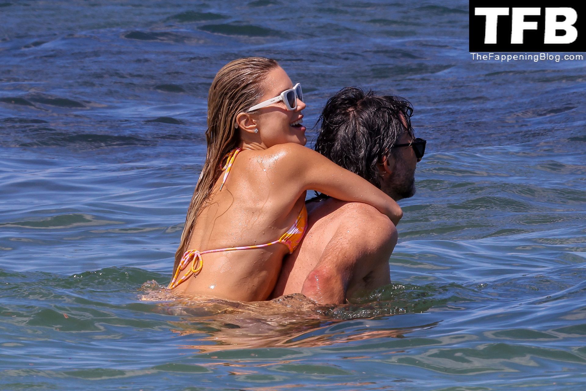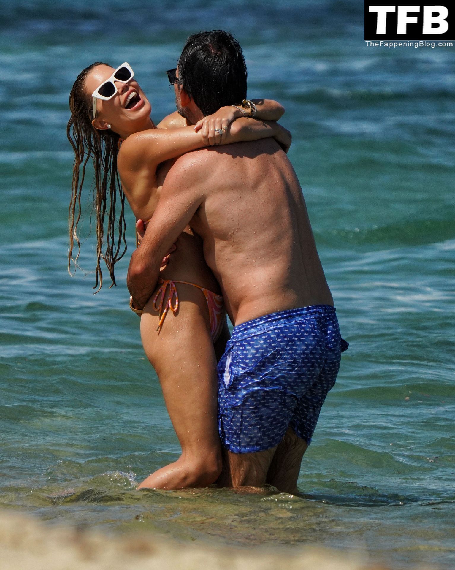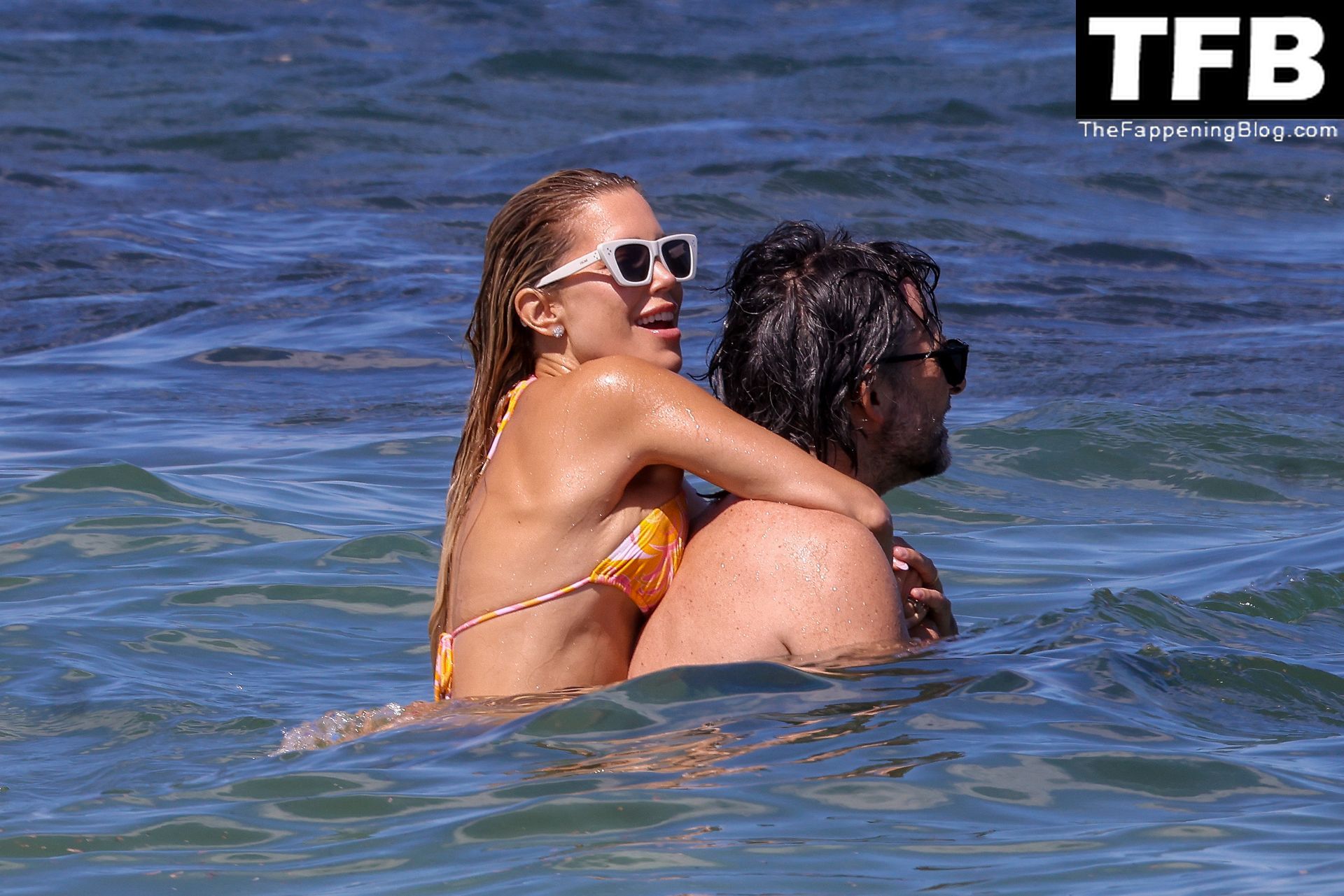 Сильви Мейс и ее муж Никлас Кастелло запечатлены во время пляжного дня в Сен-Тропе, 25.06.2022. Сильви Мейс показывает свое невероятное тело в оранжевом бикини.