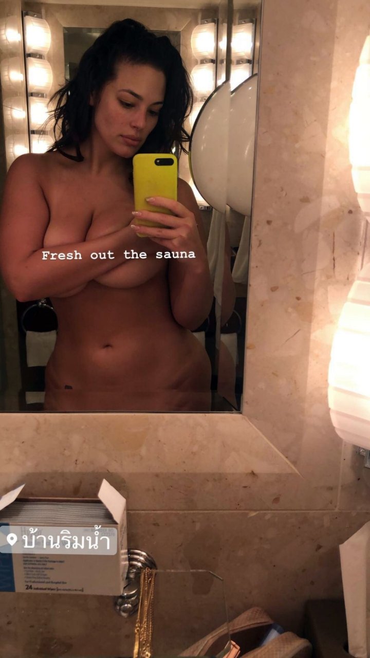 Модель Эшли Грэм поделилась новым ню (закрытым) селфи в Instagram Stories, 16.12.2018.