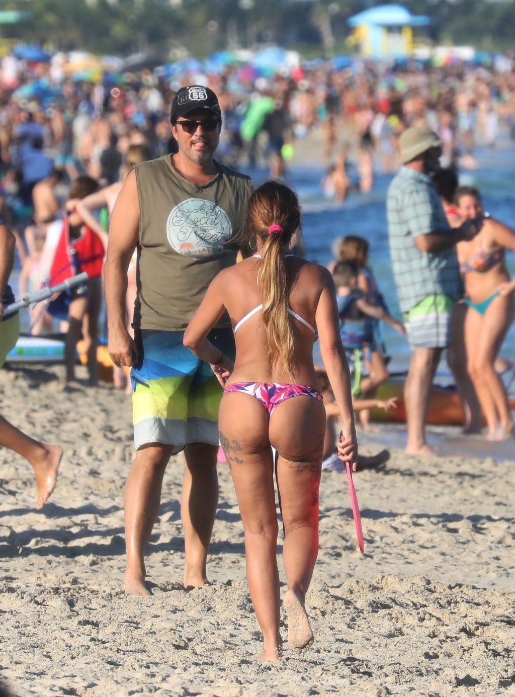 Блондинка-бомба Хлоя была замечена, как весело проводит время на качелях, демонстрируя все свои соблазнительные изгибы с фигурой пляжного тела в крошечном бикини и своей аппетитной попкой после бразильской подтяжки ягодиц.