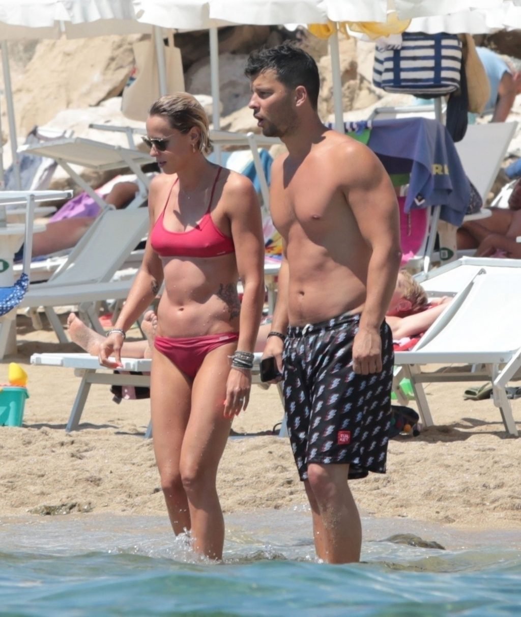 Пара окунается в море, чтобы охладиться от палящего итальянского солнца: Федерика в своем скудном розовом бикини, а ее красавчик Маттео без рубашки демонстрирует подтянутую фигуру.