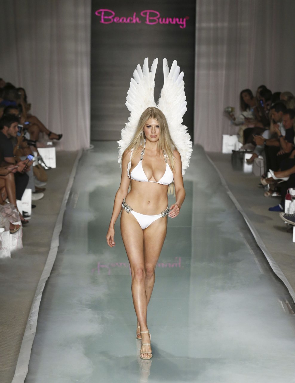 Шарлотта МакКинни демонстрирует свою большую грудь на показе Beach Bunny Runway в Майами, 21.07.2017. Шарлотта МакКинни — американская модель и актриса (Флэтлайнерс – 2017). Возраст: 23 года.