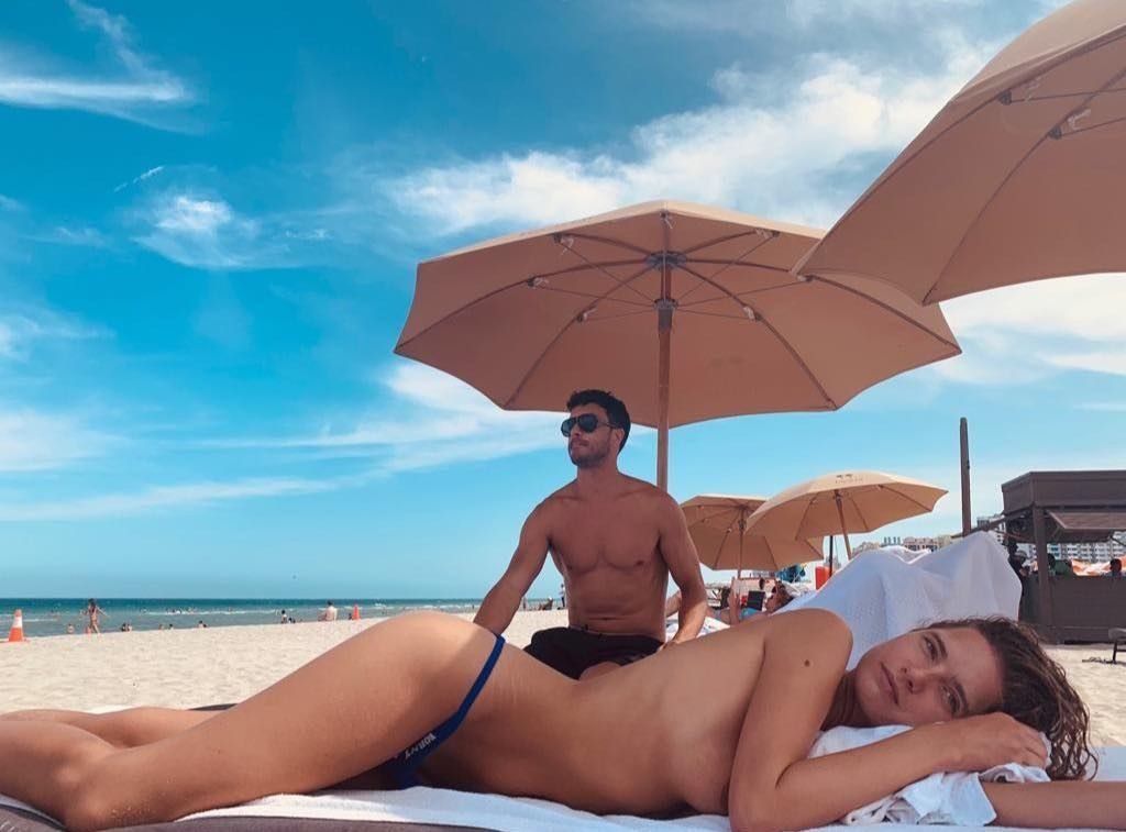 Венгерская модель Фрузина Молнар (29) проводит день топлесс на пляже в Майами-Бич, 06.05.2019.
