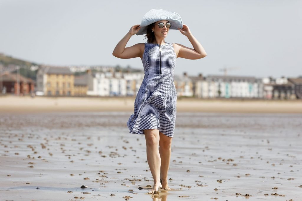 Холли Хьюз наслаждается солнцем в самый тёплый день года на пляже в заливе Суонси, Уэльс, 28.06.2019.