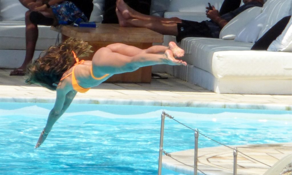 Модель Изабель Гуларт наслаждается отдыхом после вечеринки во время карнавальных праздников в Рио, 08.03.2019. Стройная красотка показала свою милую маленькую попку в бассейне с друзьями.
